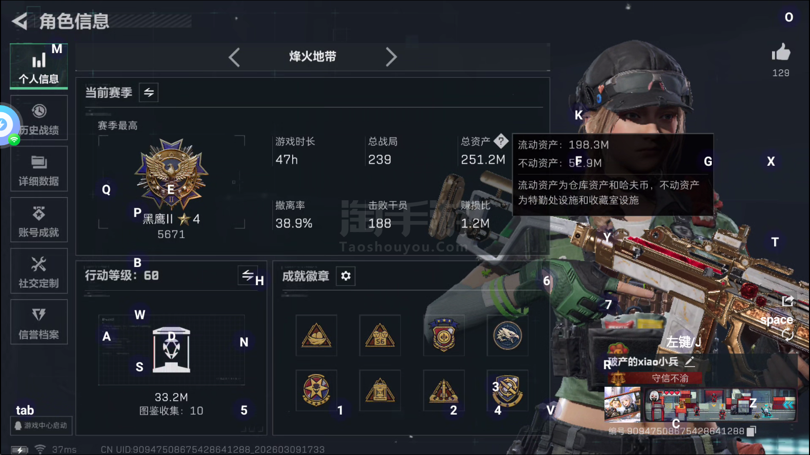 三端互通-总资产251M现金113M-露娜女医红皮-满体六负-150发AW一仓库咖啡豆赛季九格已做有勇敢者