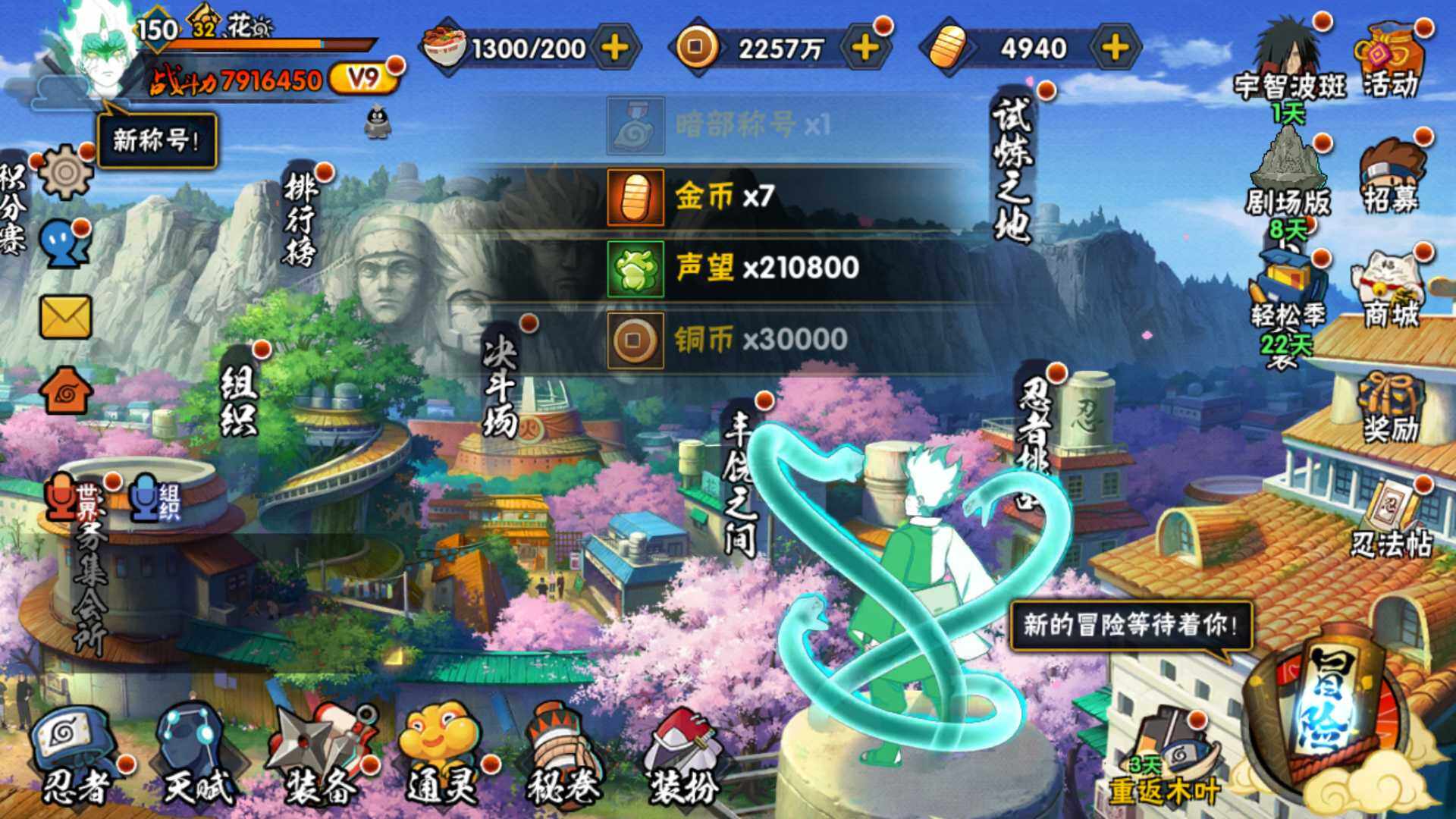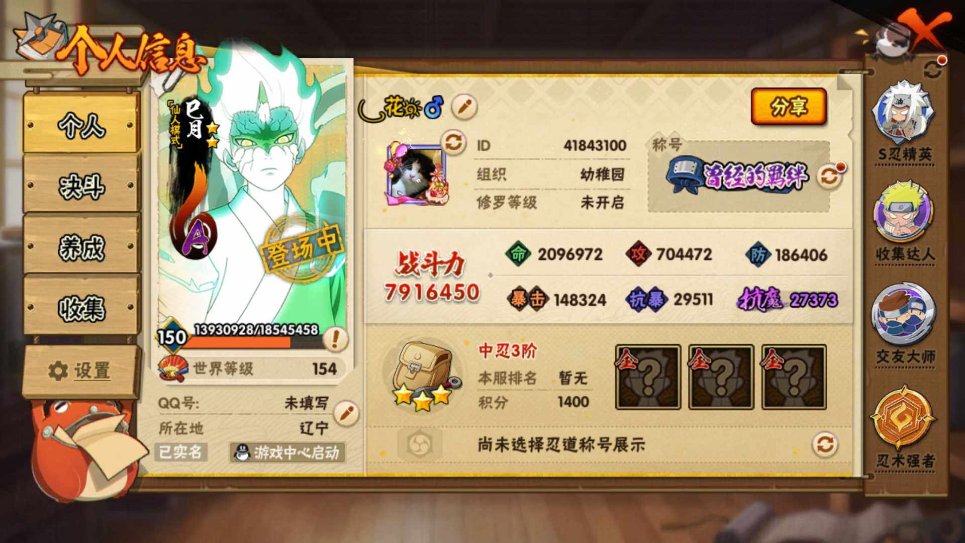 (可免费转苹果)V9 11S 33A 791万战力 4900金币 热门A夏日鼬 忍战我爱罗 神驹小南 侠隐大野木。碎片自来也35片 传说自来也51片 秽土扉间66片 秽土斑78片 十尾带土53片(王者连体68皮肤) YY2010
