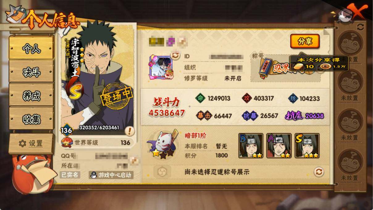 7S级忍者数-24A级忍者数【S级忍者】:宇智波带土「忍界大战」(3星),