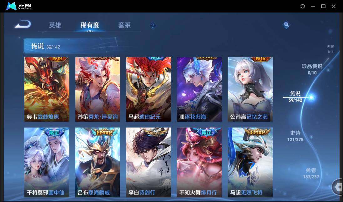 贵9-128英雄-426皮肤-3典藏-2无双-39传说-4星元-149限定-22按键-灵宝-22印记-13万贵族积分
