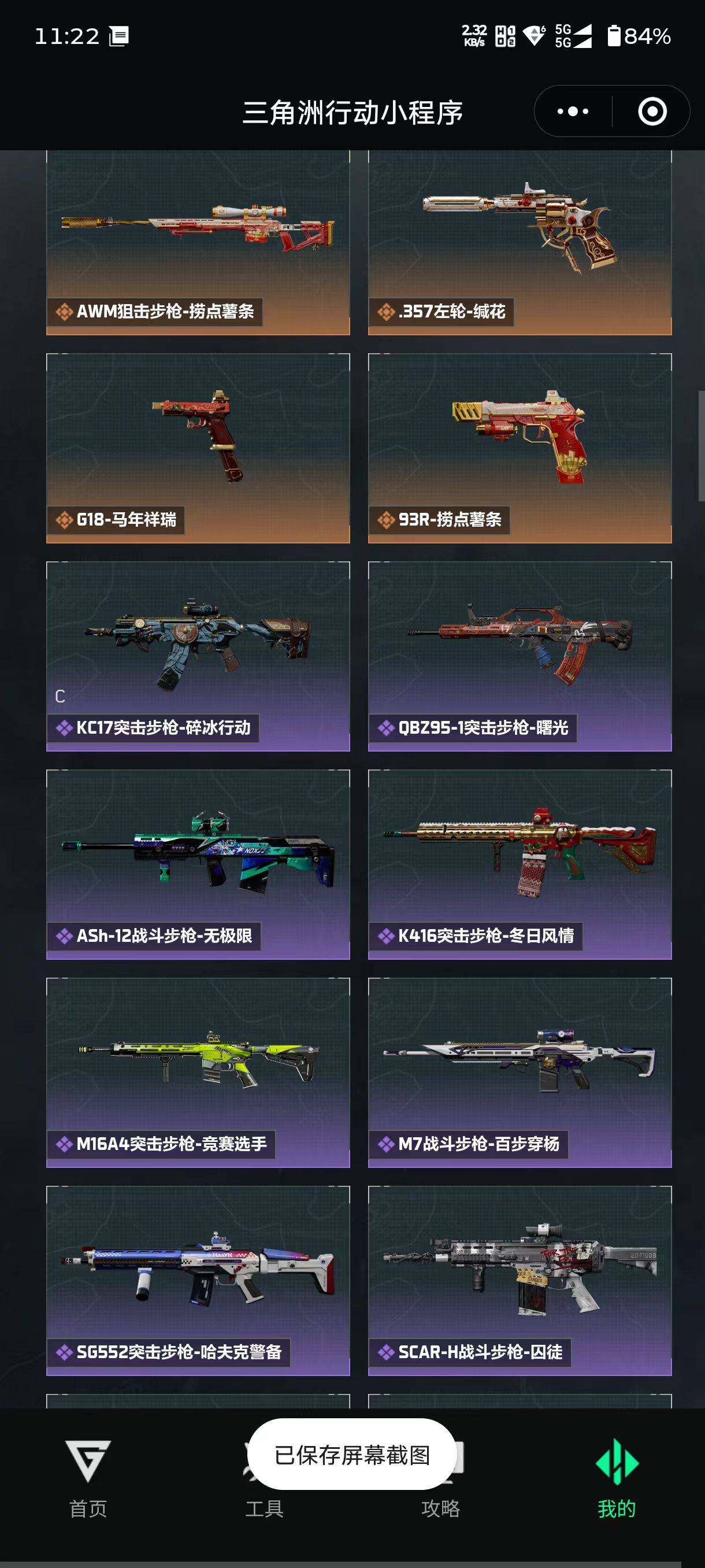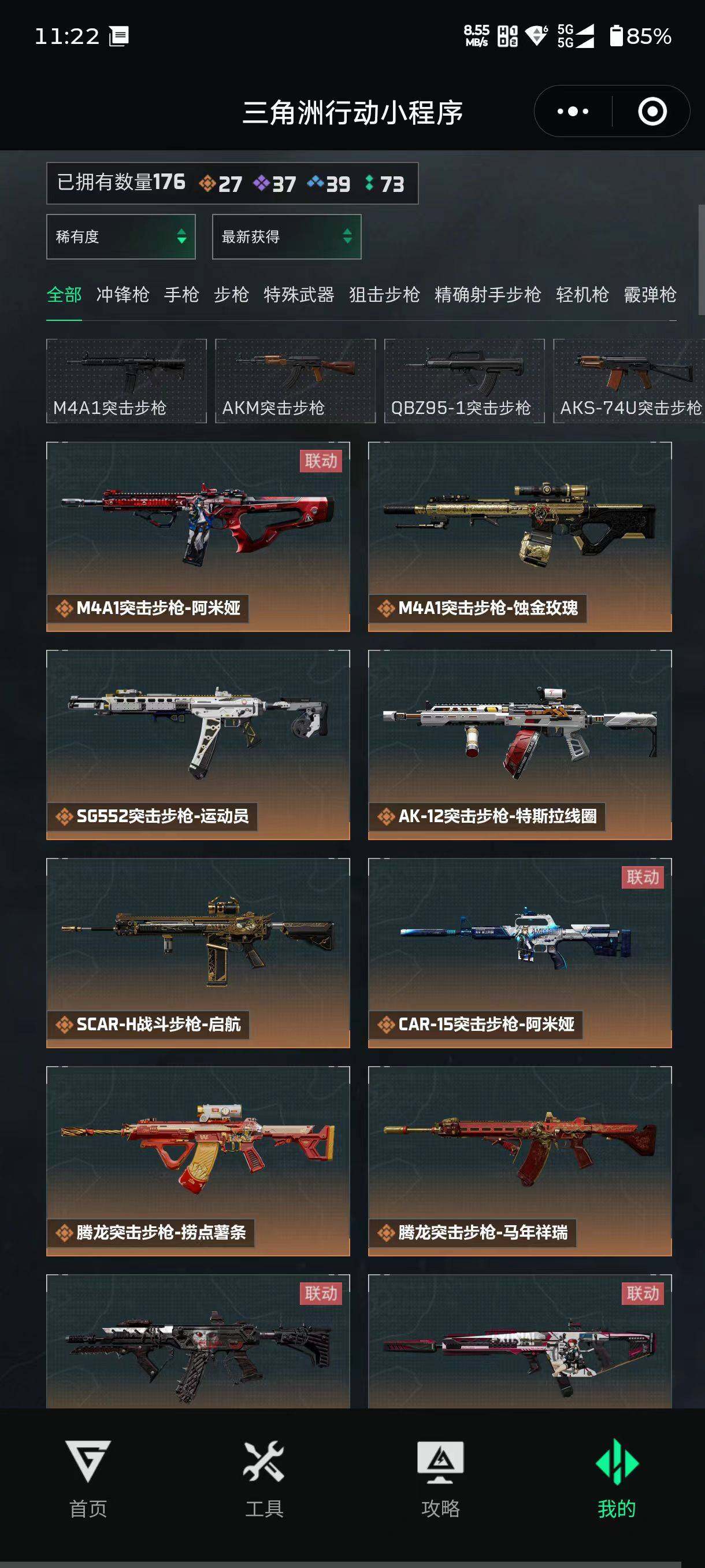 【传说外观】:M4A1突击步枪-蚀金玫瑰,M4A1突击步枪-阿米娅,K416突击步枪-行动记录,SG552突击步枪-运动员,AK-12突