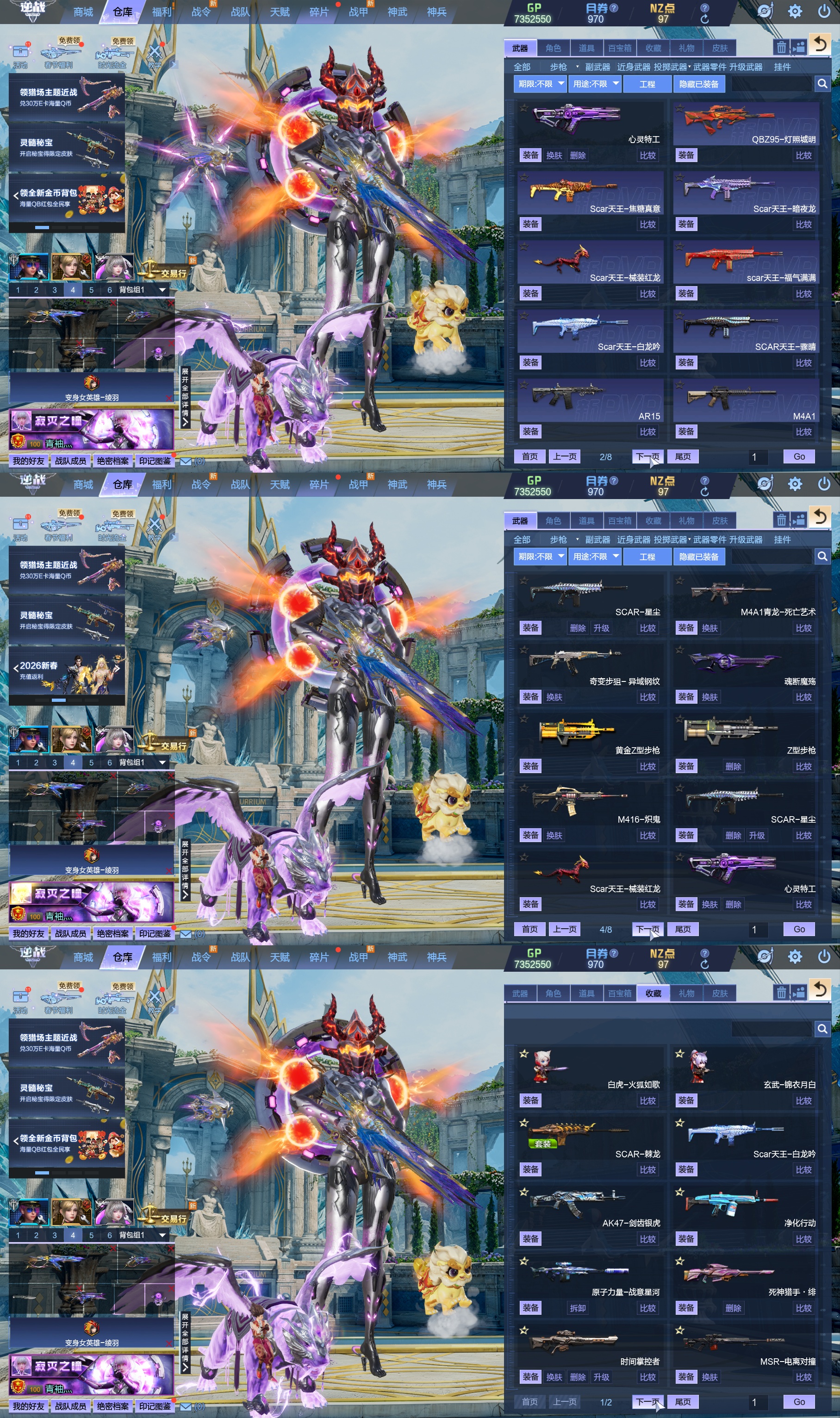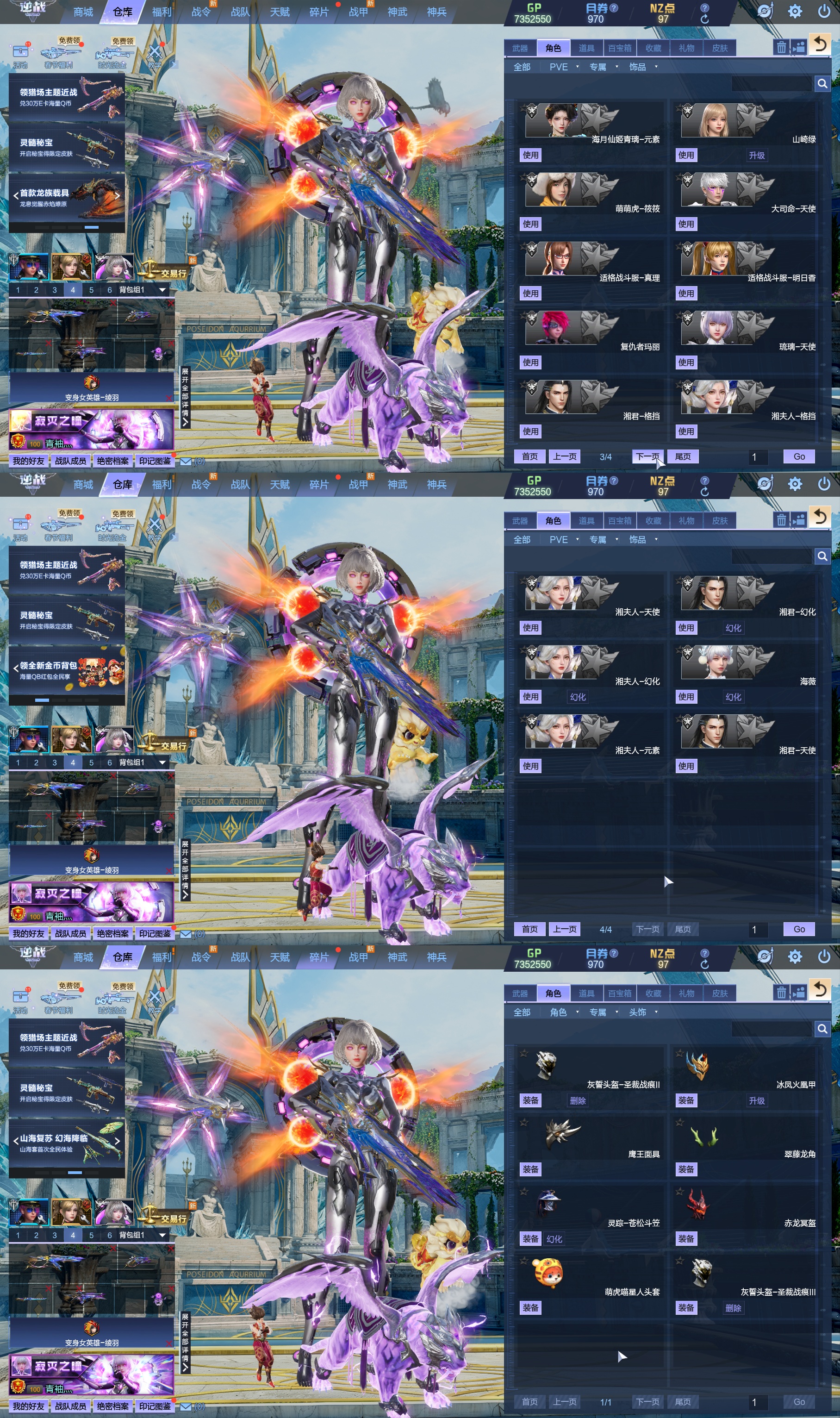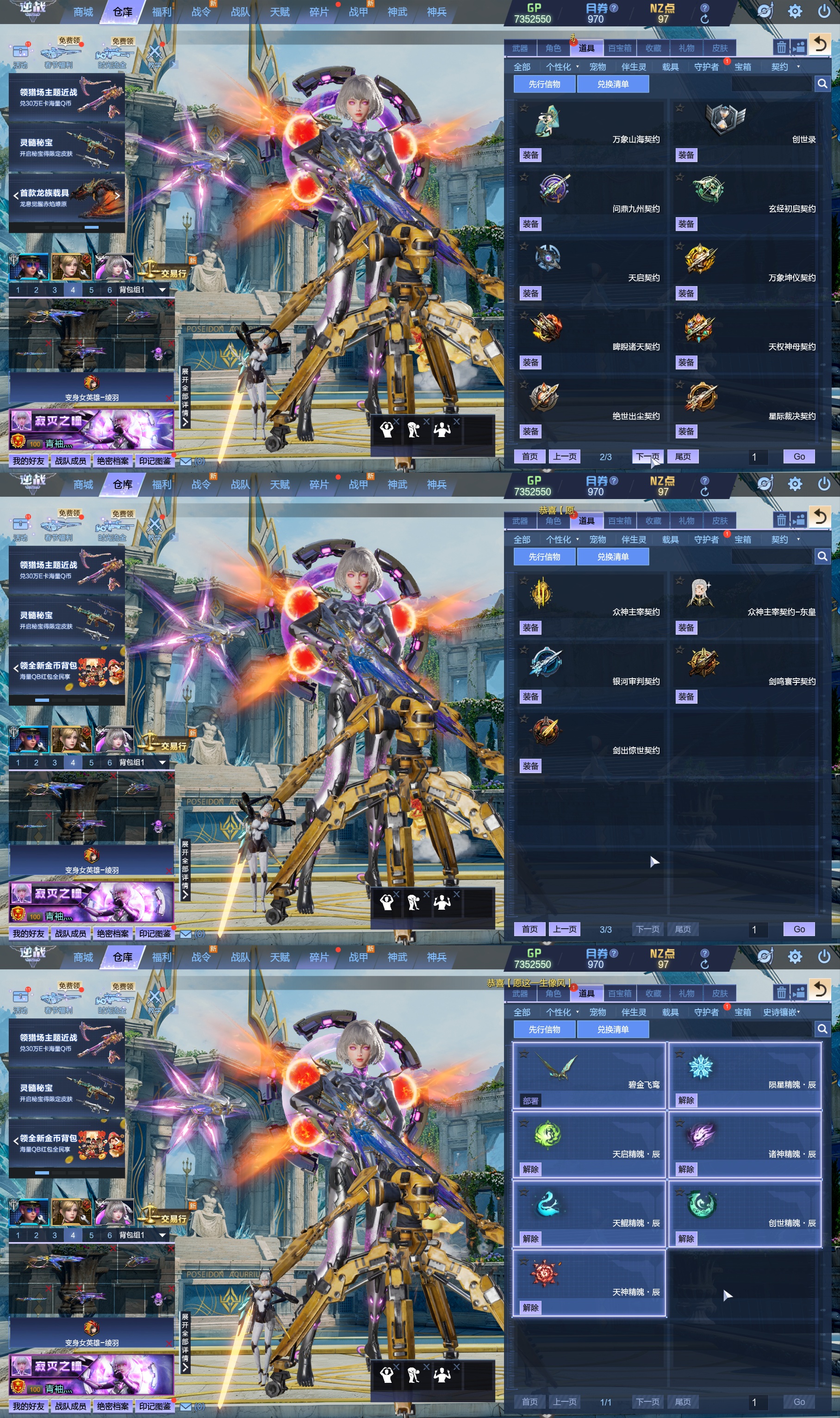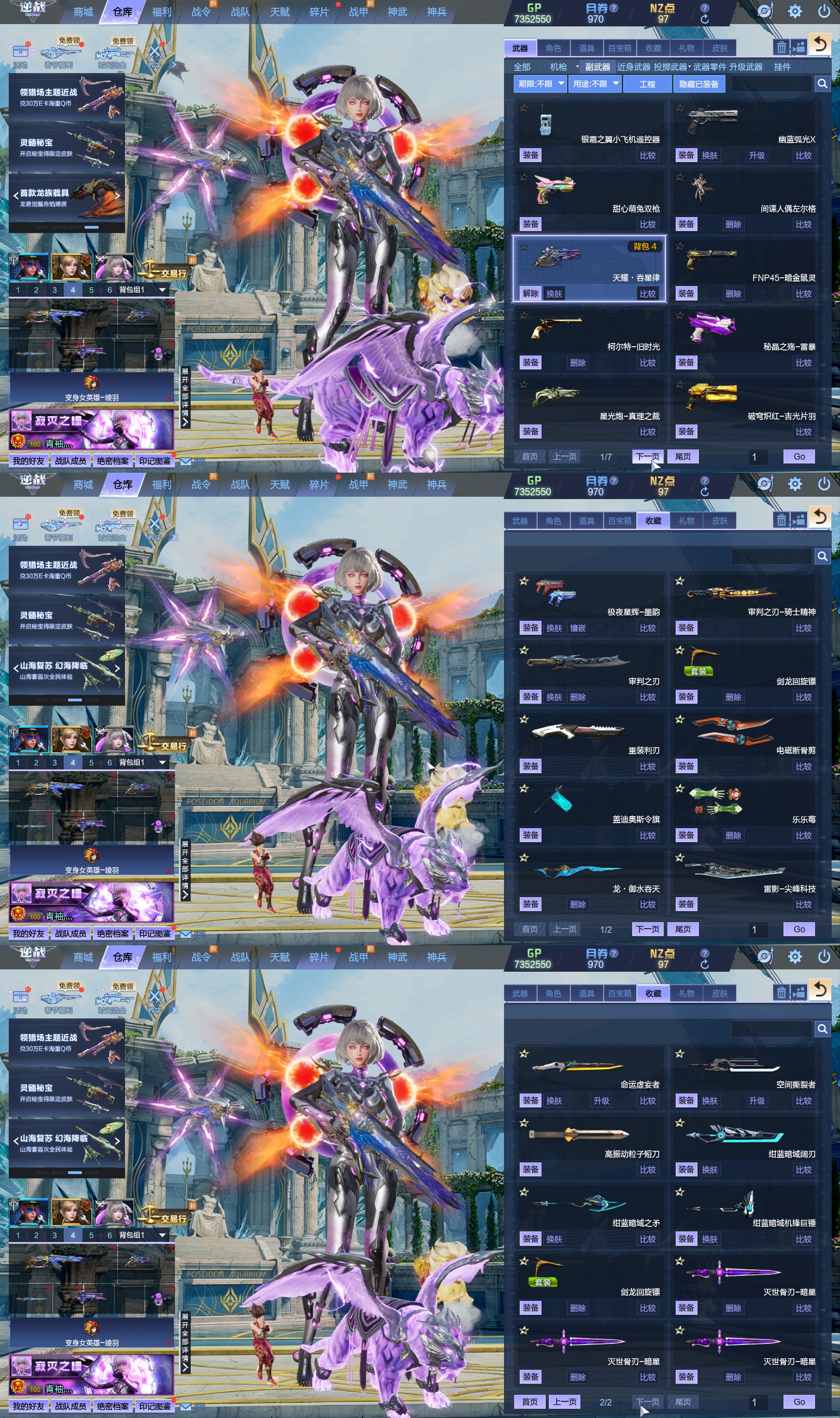 莱娜/天命戒/天耀套/星寰山海9+9/天帝神皇双6核/陨星套/金鍷焚天/影刃臂铠/龙曦绫羽/海龙王10英雄陷阱/左轮/创世主武/鹰王套/哮天犬套/炽鬼/天王白龙吟/青龙/奇变步狙/原子力量/电离对撞/爆炎双充/冰神/双时间审判者/白虎/火狐/玄武/小人枪/重装利刃/战令旗/水刀/橄榄3件套/3把暗星骨刃/手雷包极多/王菲/爱丽丝/海薇幻化/微微安/女巫艾琳娜/EVA明日香/赤龙/凤栖神翼/归墟/雷