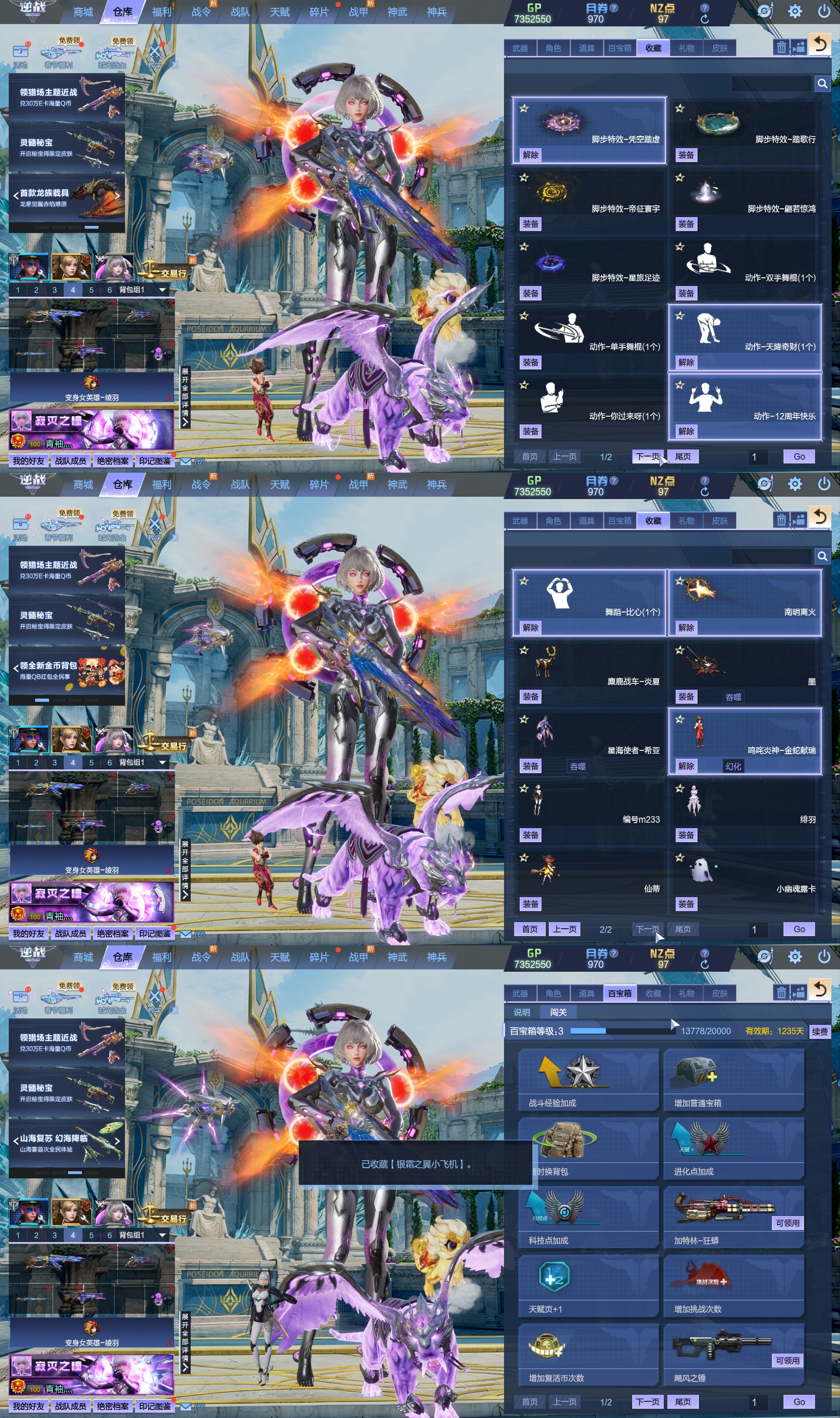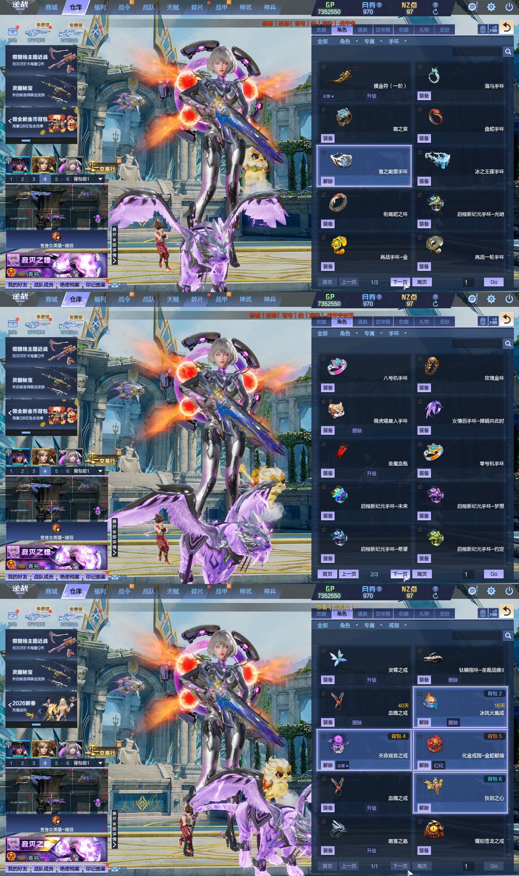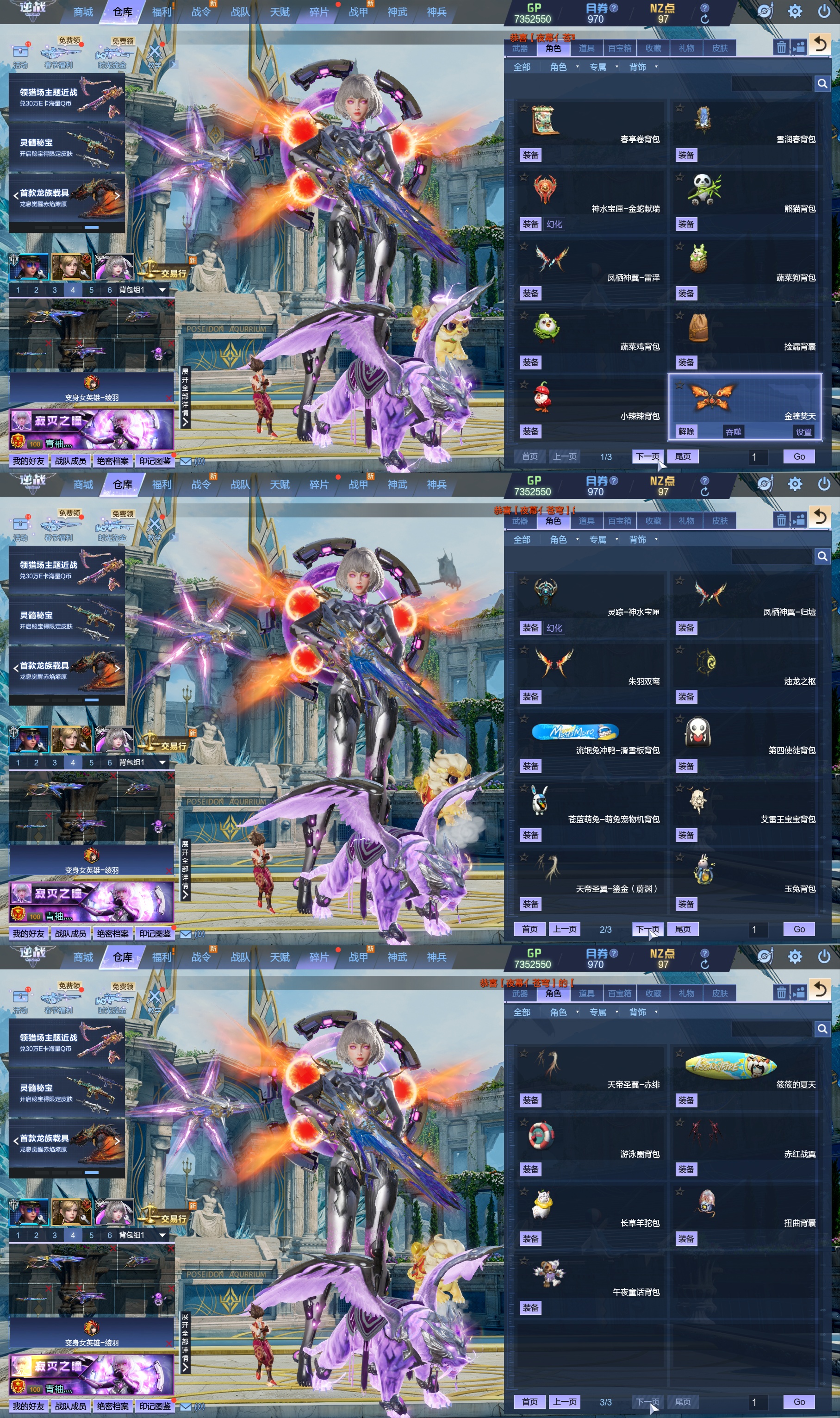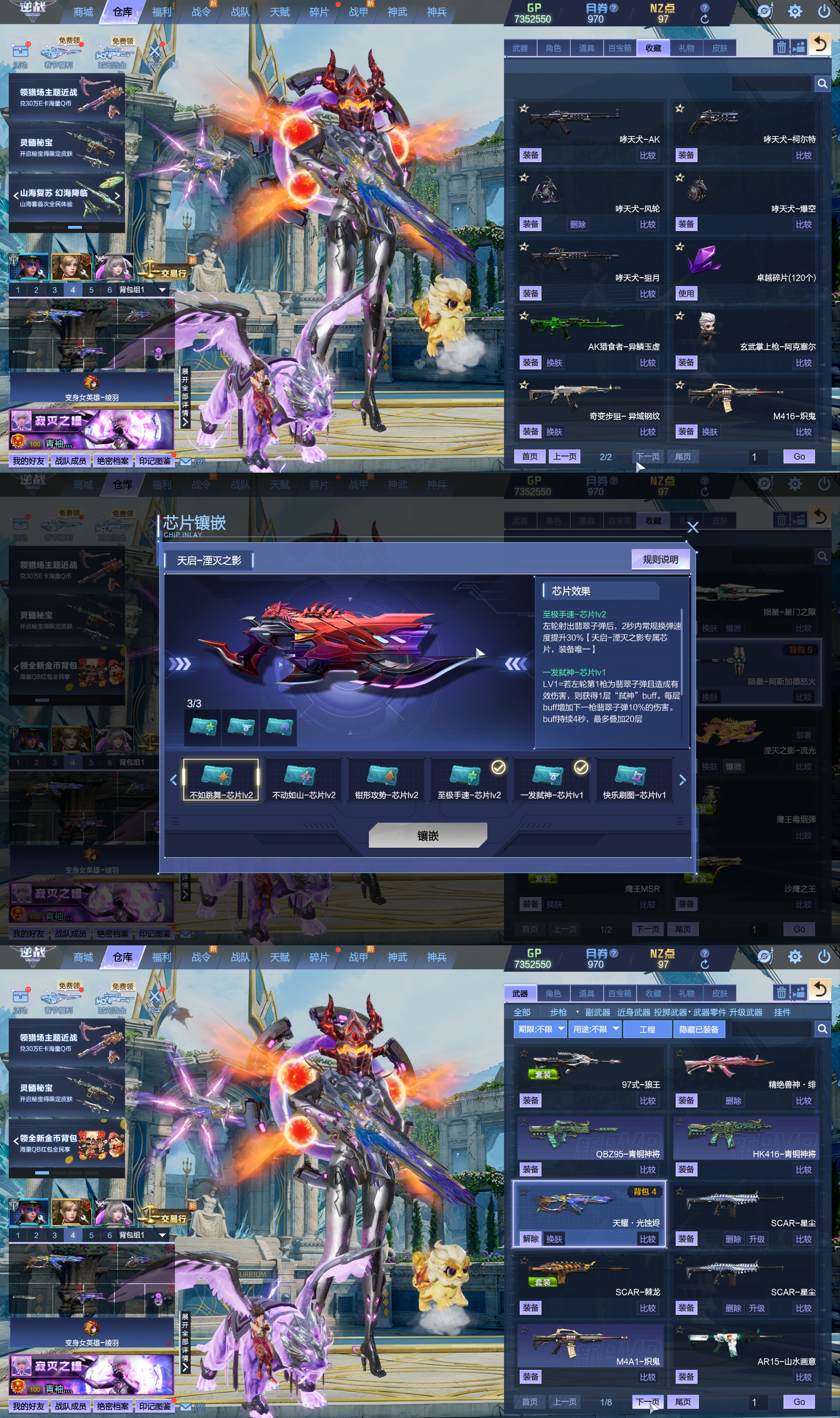 莱娜/天命戒/天耀套/星寰山海9+9/天帝神皇双6核/陨星套/金鍷焚天/影刃臂铠/龙曦绫羽/海龙王10英雄陷阱/左轮/创世主武/鹰王套/哮天犬套/炽鬼/天王白龙吟/青龙/奇变步狙/原子力量/电离对撞/爆炎双充/冰神/双时间审判者/白虎/火狐/玄武/小人枪/重装利刃/战令旗/水刀/橄榄3件套/3把暗星骨刃/手雷包极多/王菲/爱丽丝/海薇幻化/微微安/女巫艾琳娜/EVA明日香/赤龙/凤栖神翼/归墟/雷