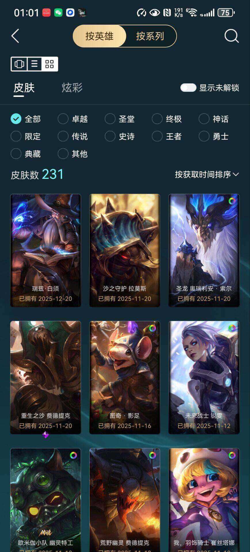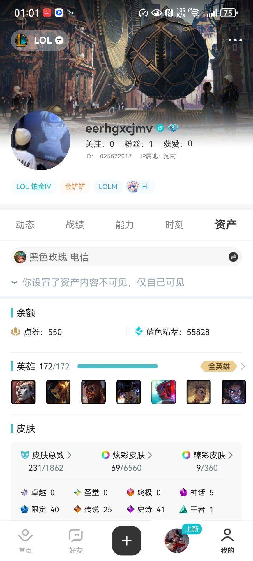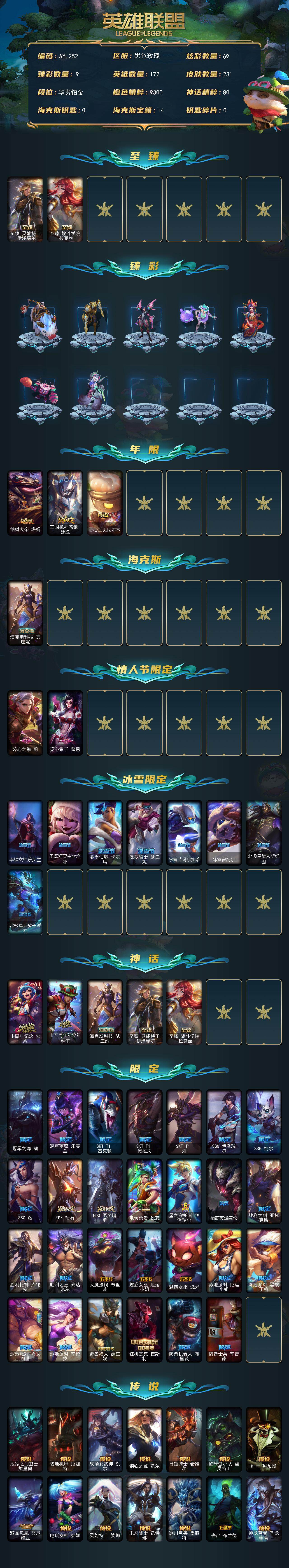 铂金段位-172英雄-231皮肤-69炫彩-0终极-5神话-
