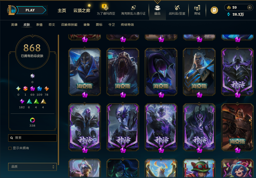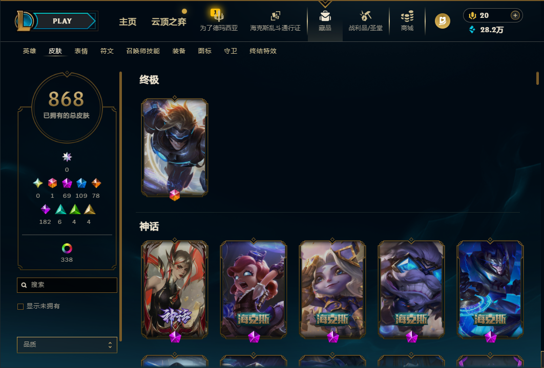 868皮肤 1终极 6王者 4典藏 13至臻 172英雄-868皮肤-373炫彩-