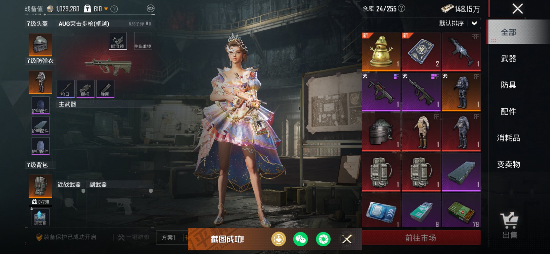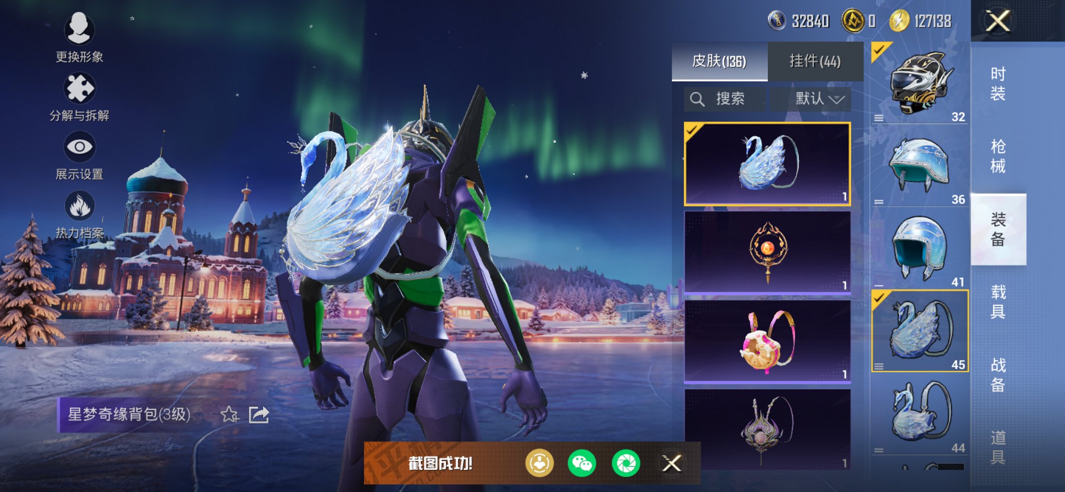 【紫螳螂7载具10特效枪8粉装素材号】 苹果V区-95701热力值-238套装-268枪皮 【7载具】 玛莎拉蒂粉色 兰博SVJ绿色 萌喵橘座 双人摩托梦幻火箭 萌兔起飞僚机 宝马M4(圣保罗黄) 保时捷918 Spyder(液态银)【8粉装】 初号机款机体服(紫螳螂) 梦幻火箭 宝贝奶油派 天使彩虹糖 星之彼岸 王牌四分卫 角色-星梦奇缘 星穹咏叹调【10特效枪】 M416-五爪金龙(7级) AKM-梦之光华(5级) Mk14-福马献瑞(5级) AA12-G-萌骑幻想(2级) SCAR-L-梦