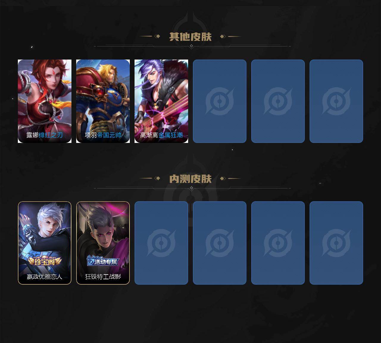【英雄全皮】:孙权全皮,大司命全皮,敖隐全皮,蒙恬全皮,戈娅全皮,影全皮