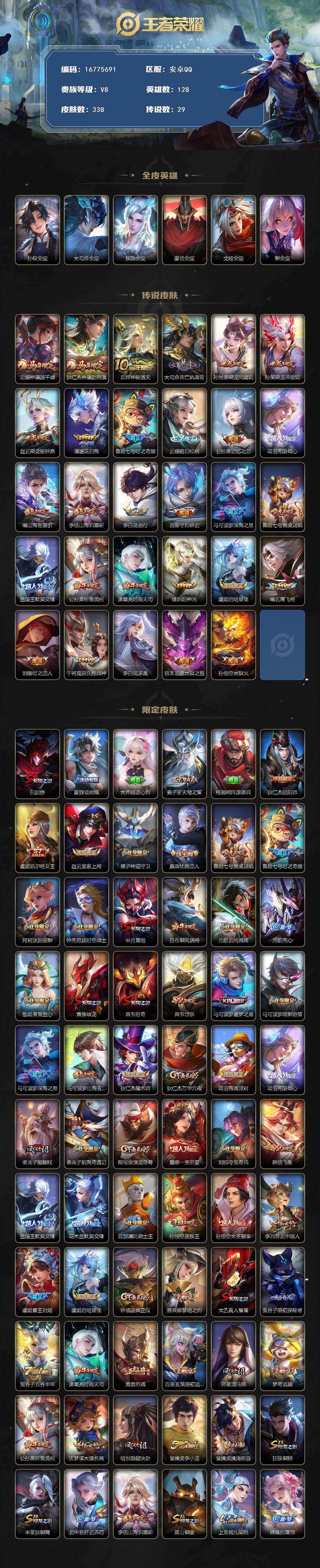 【16775691】安卓Q-V8-最强王者段位-128英雄-338皮肤-29传说-94史诗
