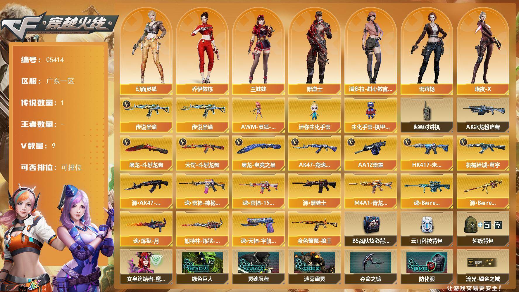 【C5414】广东一区-11V-0王者武器数-0炫金武器数