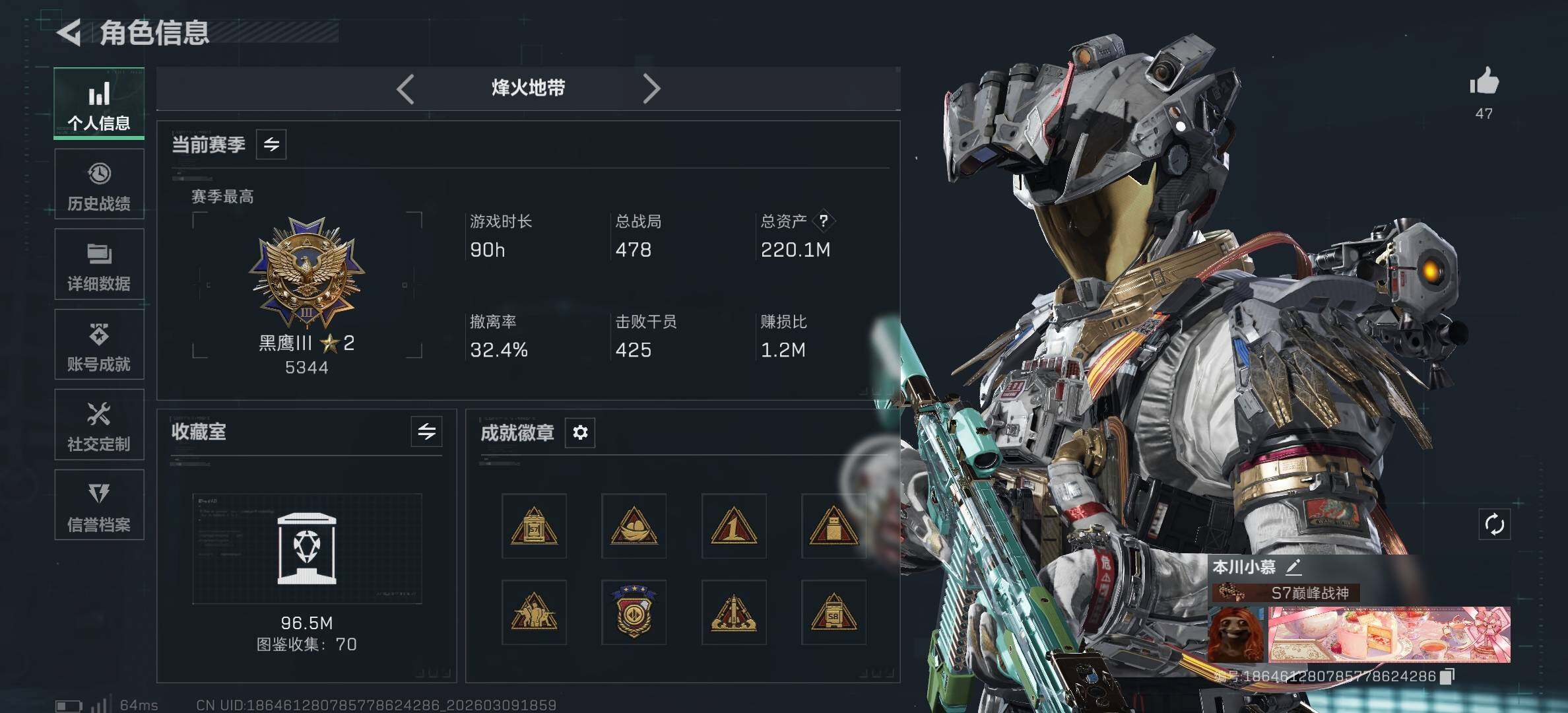219m总资产-300k哈伏币-60烽火等级-黑鹰-29战场等级-上等兵