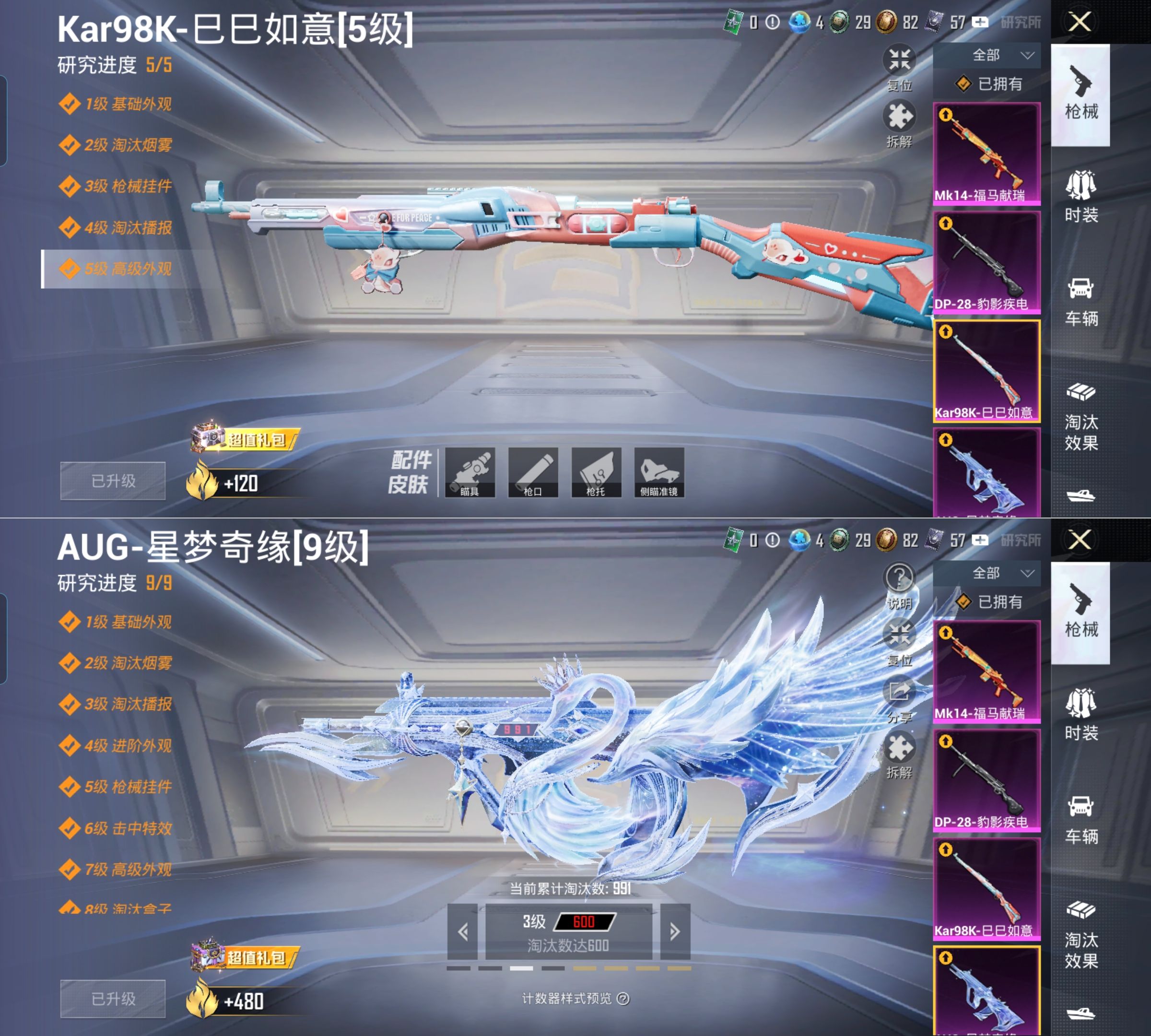 1载具-1粉装-9特效枪-81套装-120枪皮-2王牌印记-不朽星钻Ⅱ-35710热力值