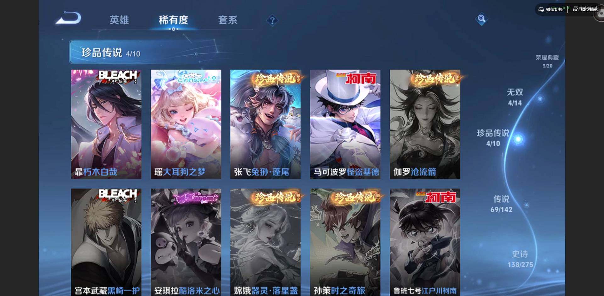 【金标橘右京 百里玄策全皮 龙年限定全套 虎年限定全套】实名: 可修改 贵族等级: V10 英雄数: 128 皮肤数: 413 荣耀水晶: 鸣剑·曳影,九霄神辉,银白咏叹调 无双皮: 韩信群星魔术团,花合斗,器灵·螭龙剑,问心剑 珍品传说: 怪盗基德,兔狲·蓬尾,大耳狗之梦,朽木白哉 星传说: 未来机甲,幽冥之眼,金色仲夏夜,云鹰彻晓,苍灵仙君 传说皮: 黄金狮子