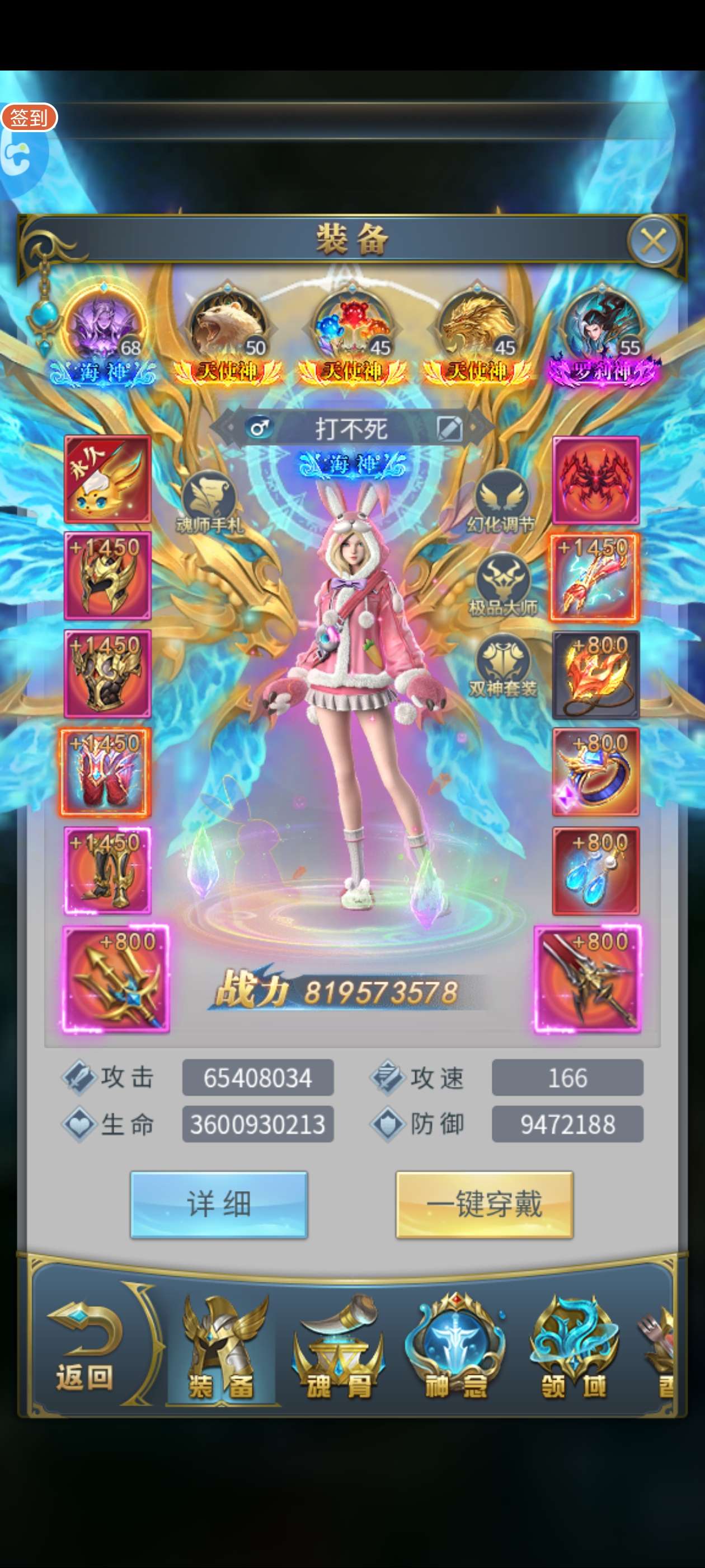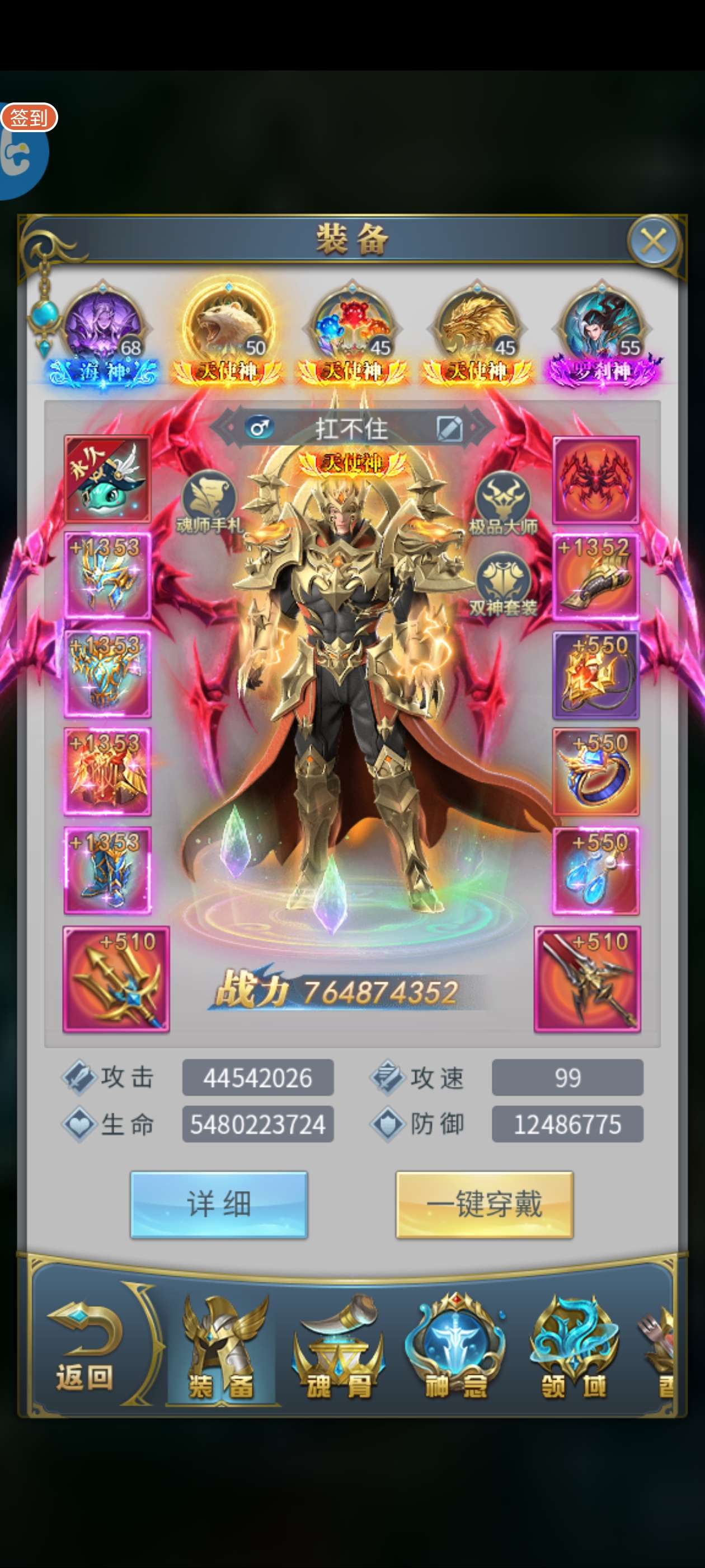 六窍彩28亿 五字天使斗铠 满觉醒秘法 满魂灵 三神套 五套红骨
