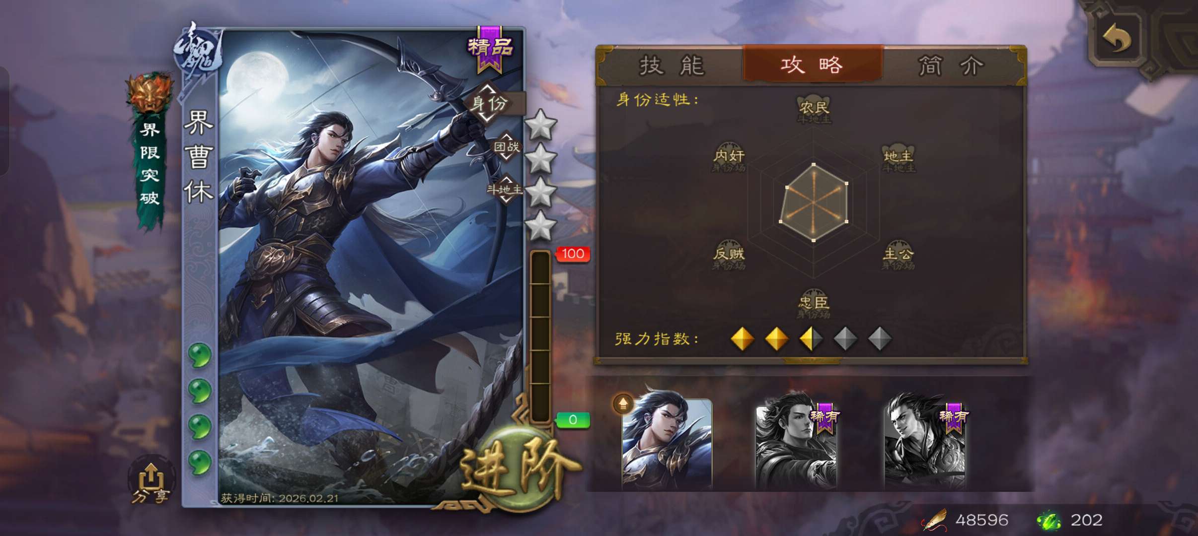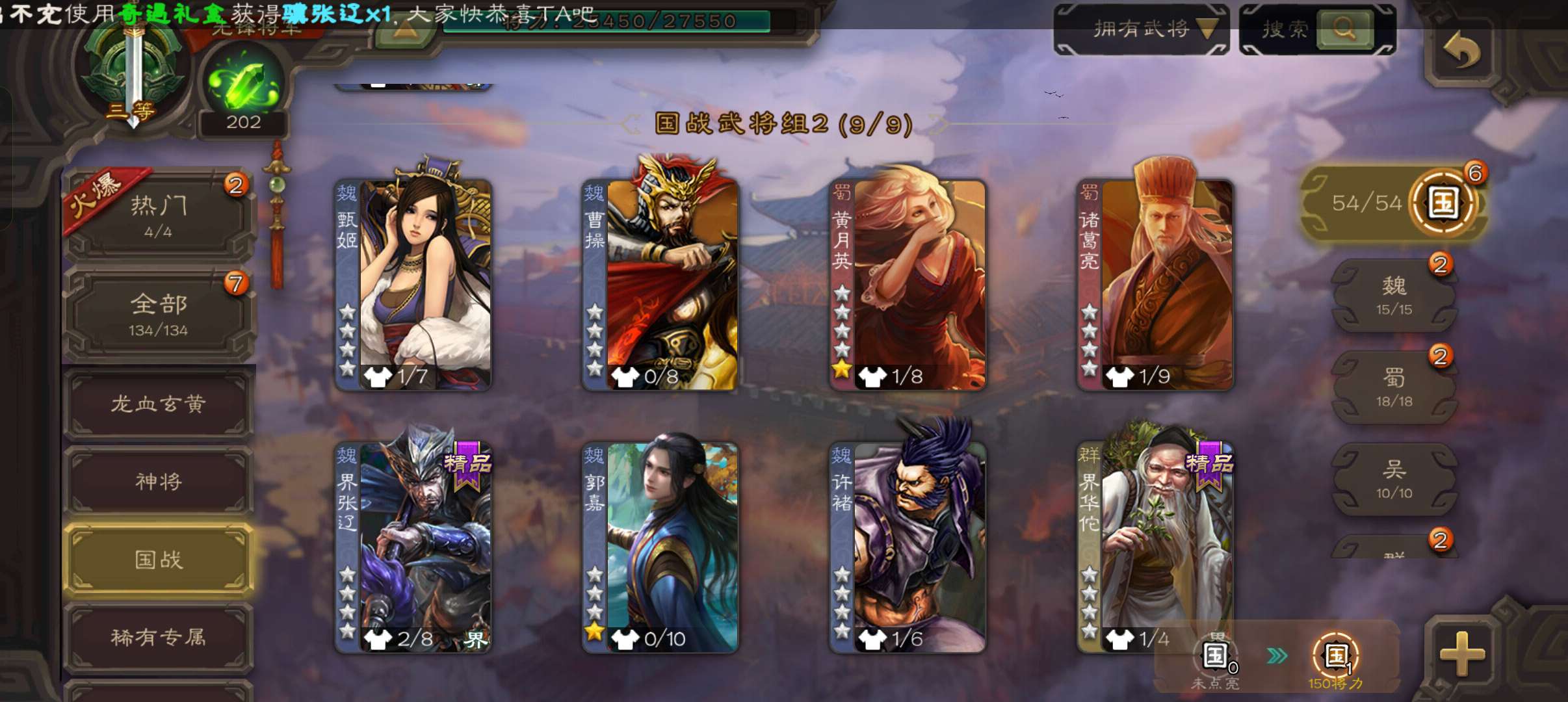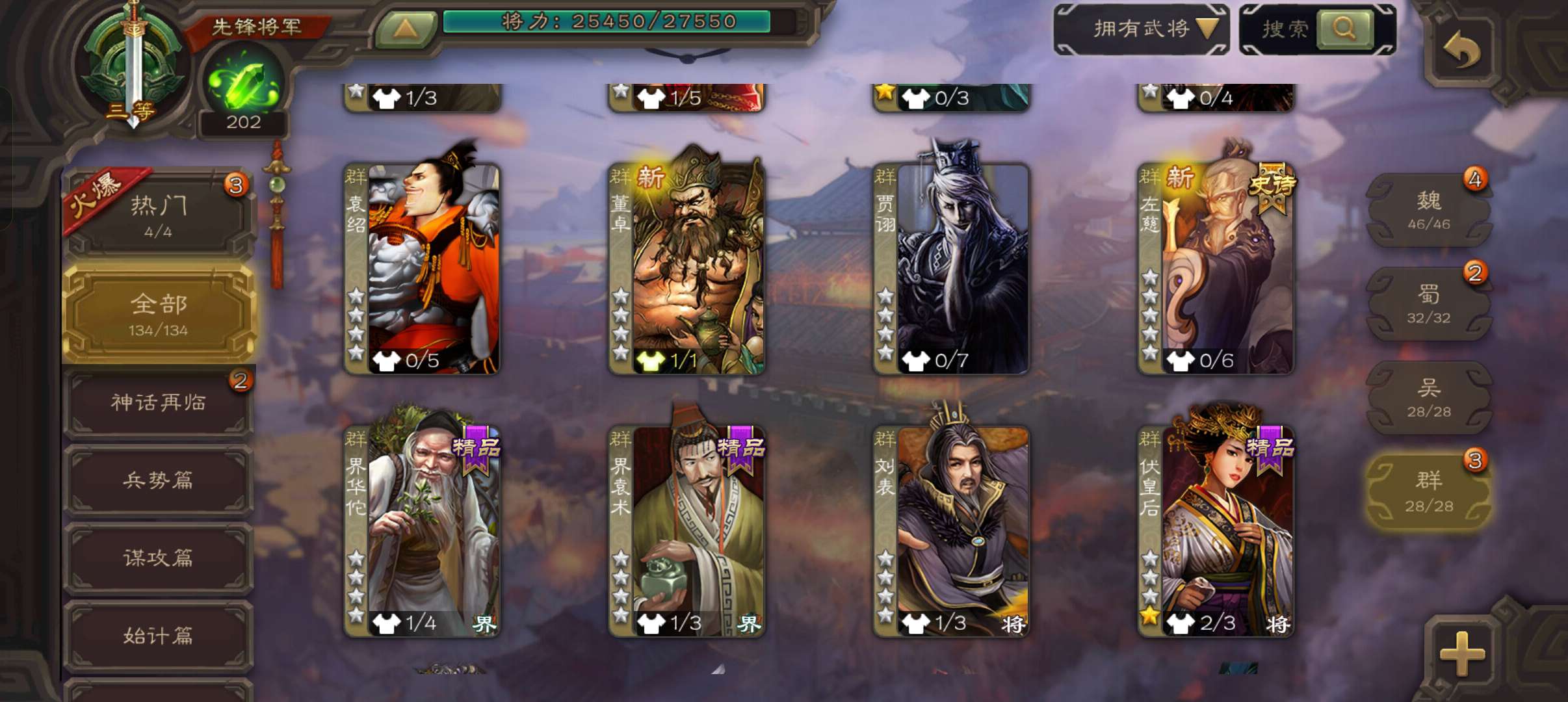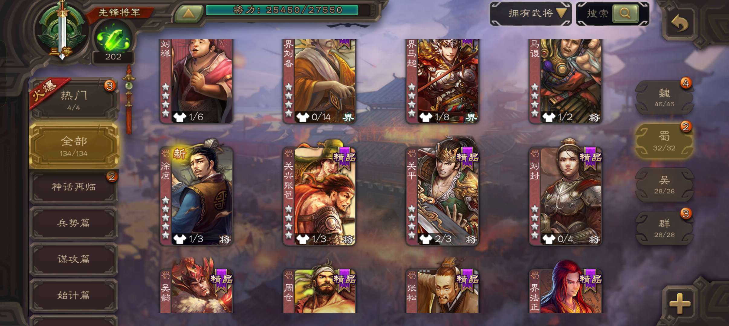 7史诗先锋,4.8万羽毛,谋夏侯惇界钟会沙摩柯神吕布界朱然杨修左慈,桥公崔琰界张嶷界曹休134将