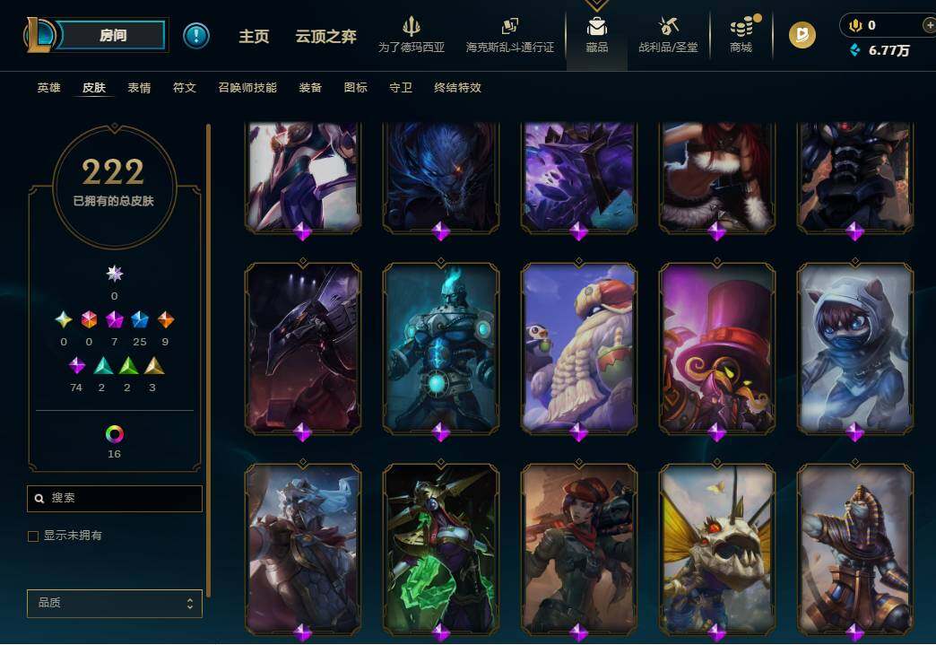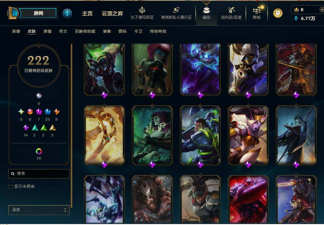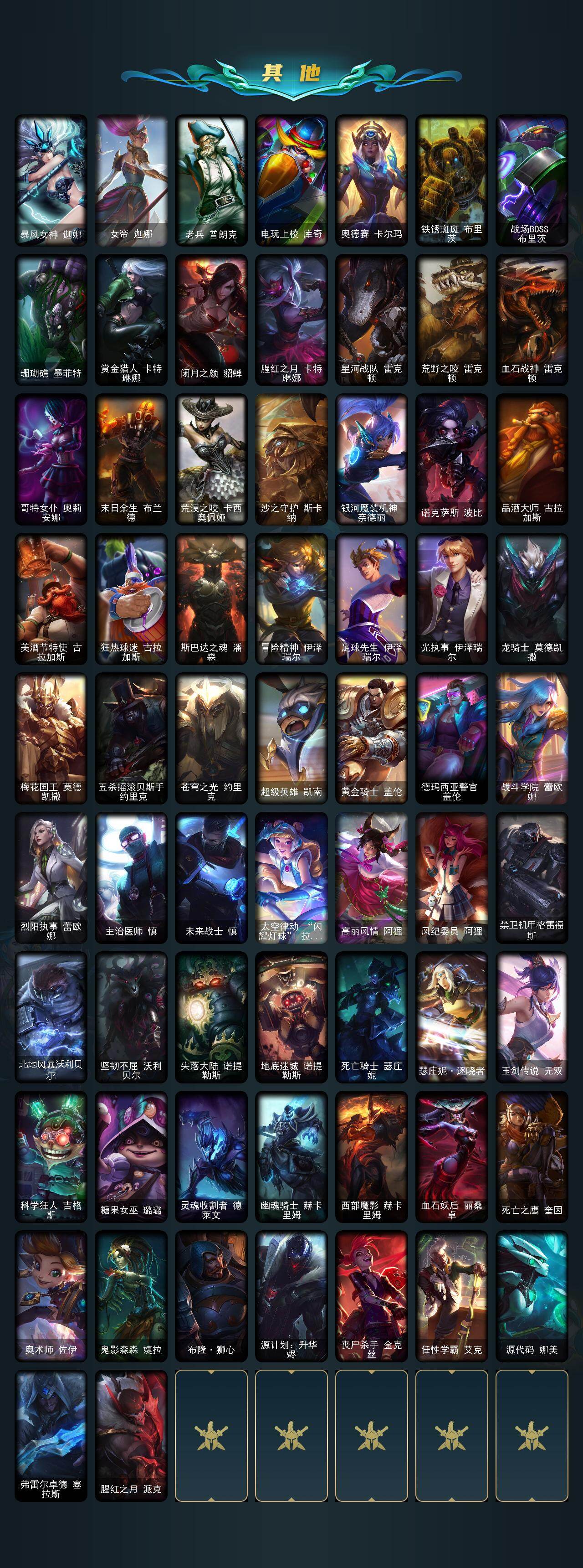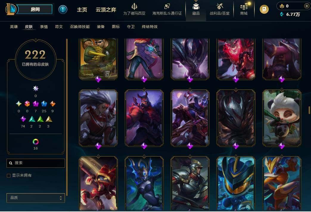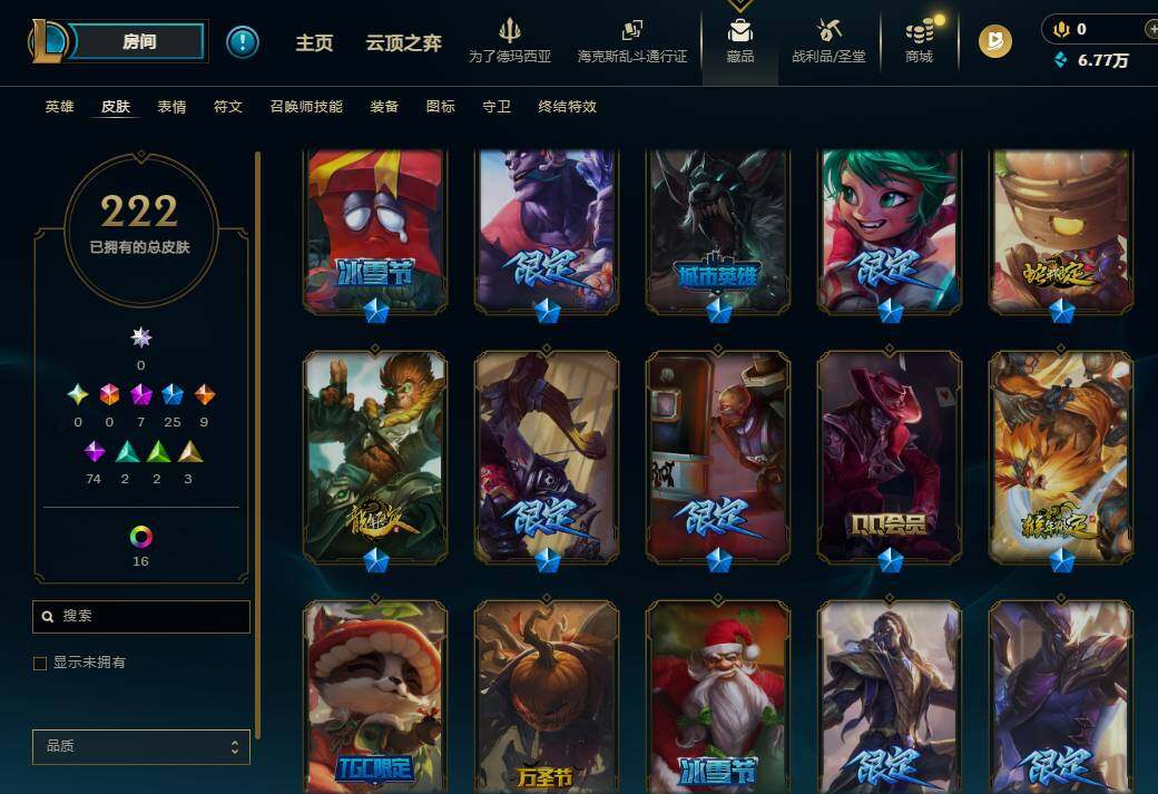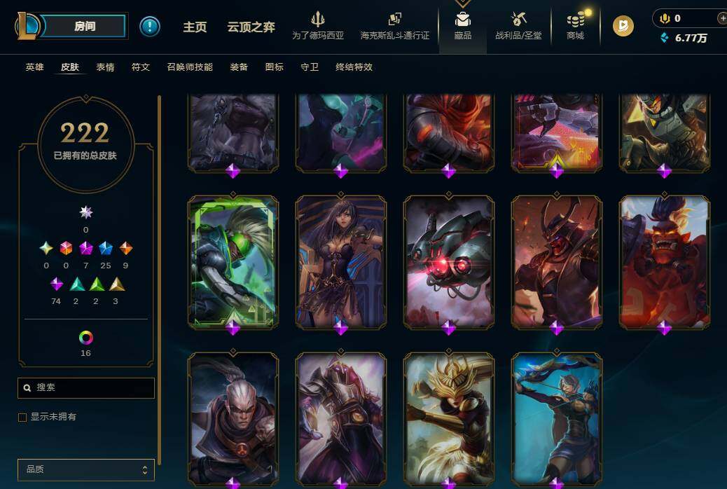 172英雄/222皮肤/7神话/25限定/5臻彩/19炫彩