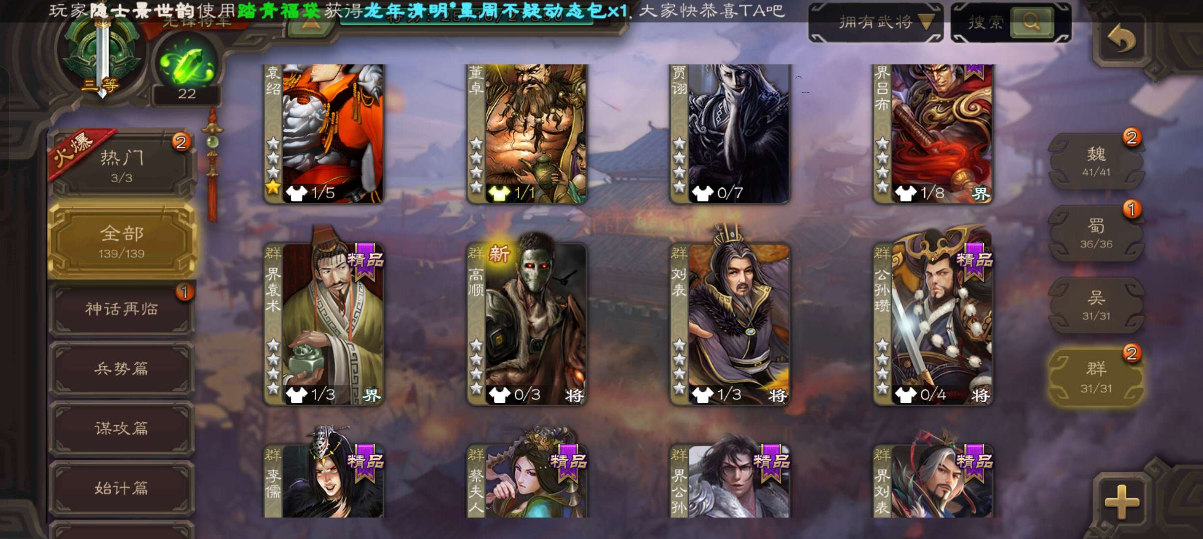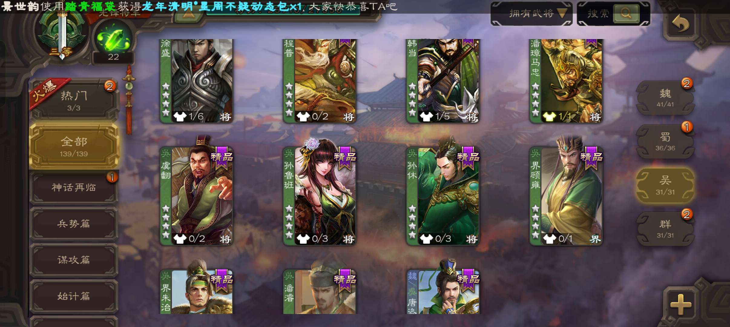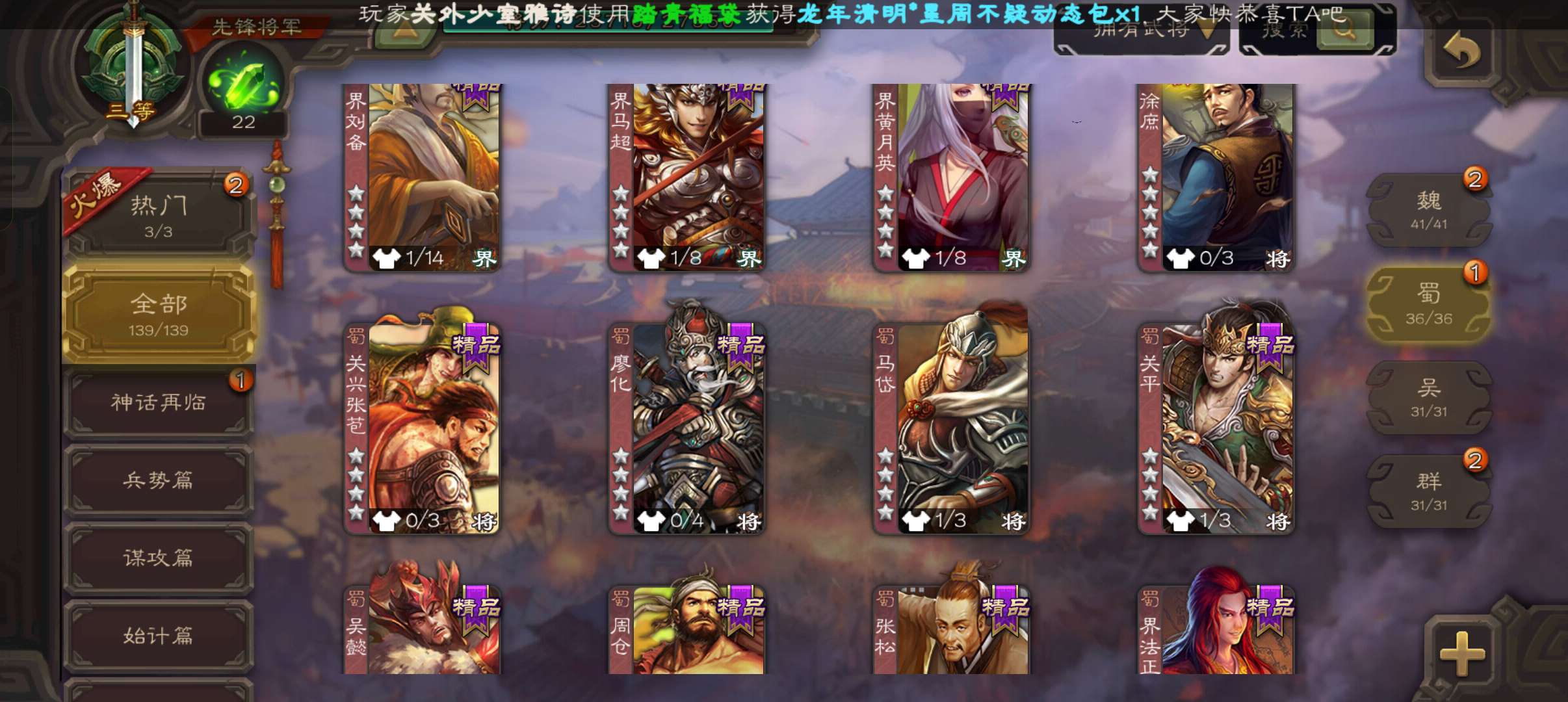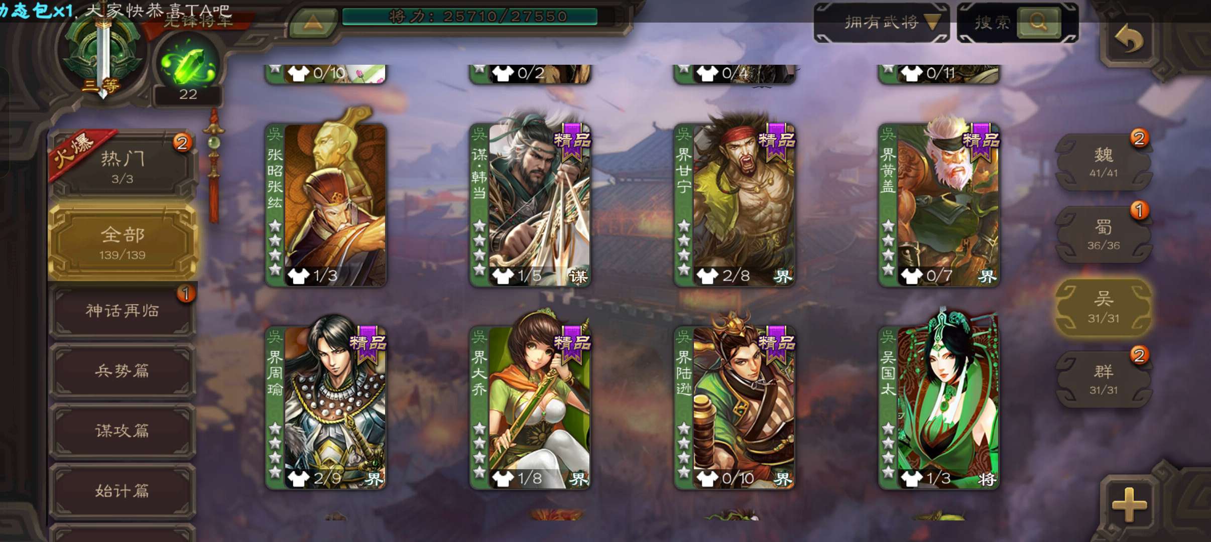4万羽毛5万豆,神鲁肃回廊动白马界钟会谯周杨修5史诗先锋,动态界周瑜动态界刘备谋韩当关银屏139将