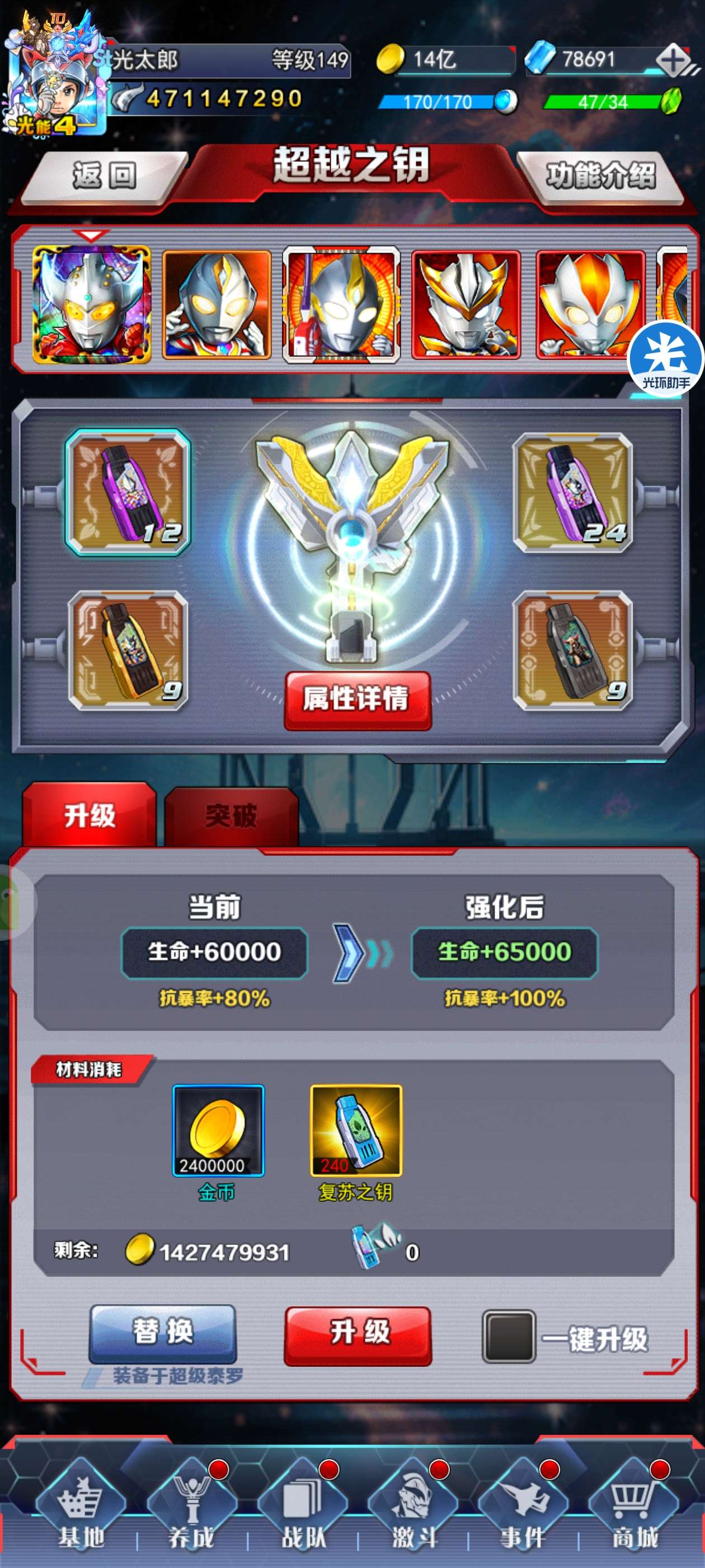 4亿毕业突破超泰,+16材料已备好差一级,背包材料超多警备队活跃,光元多可转别的by或者抽二代红