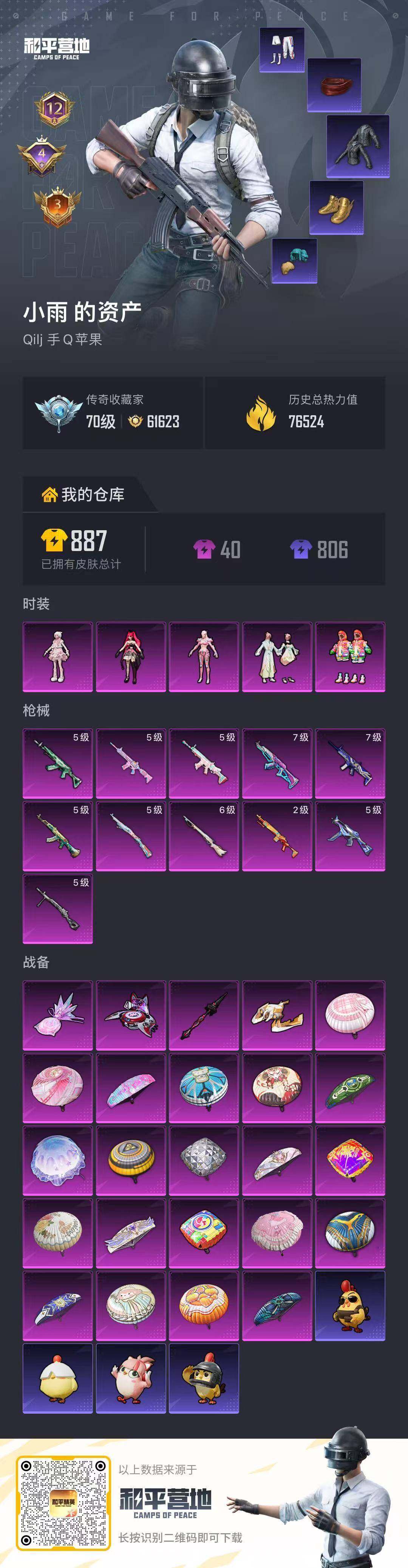 2498550_实名可改苹果Q【精品身法素材号多种特效枪满级AK梦之光华羊梦糖心都市金鞋蜘蛛侠天命红眼罩蓝螳螂兔兔白日梦激萌罗小黑狂沙国宝头盔粉熊背包】-6稀有5粉装11特效枪13热门182套装223枪皮76523热力值12印记历史超级王牌24星【6稀有】奇异狩猎者AKM-缤纷海域都市猎人浪漫天命派对舞王派对舞王(金靴子)【5粉装】绯穹魔姬炫光之旅守护天翼羊梦糖心莲影清波【11特效枪】SCAR-L