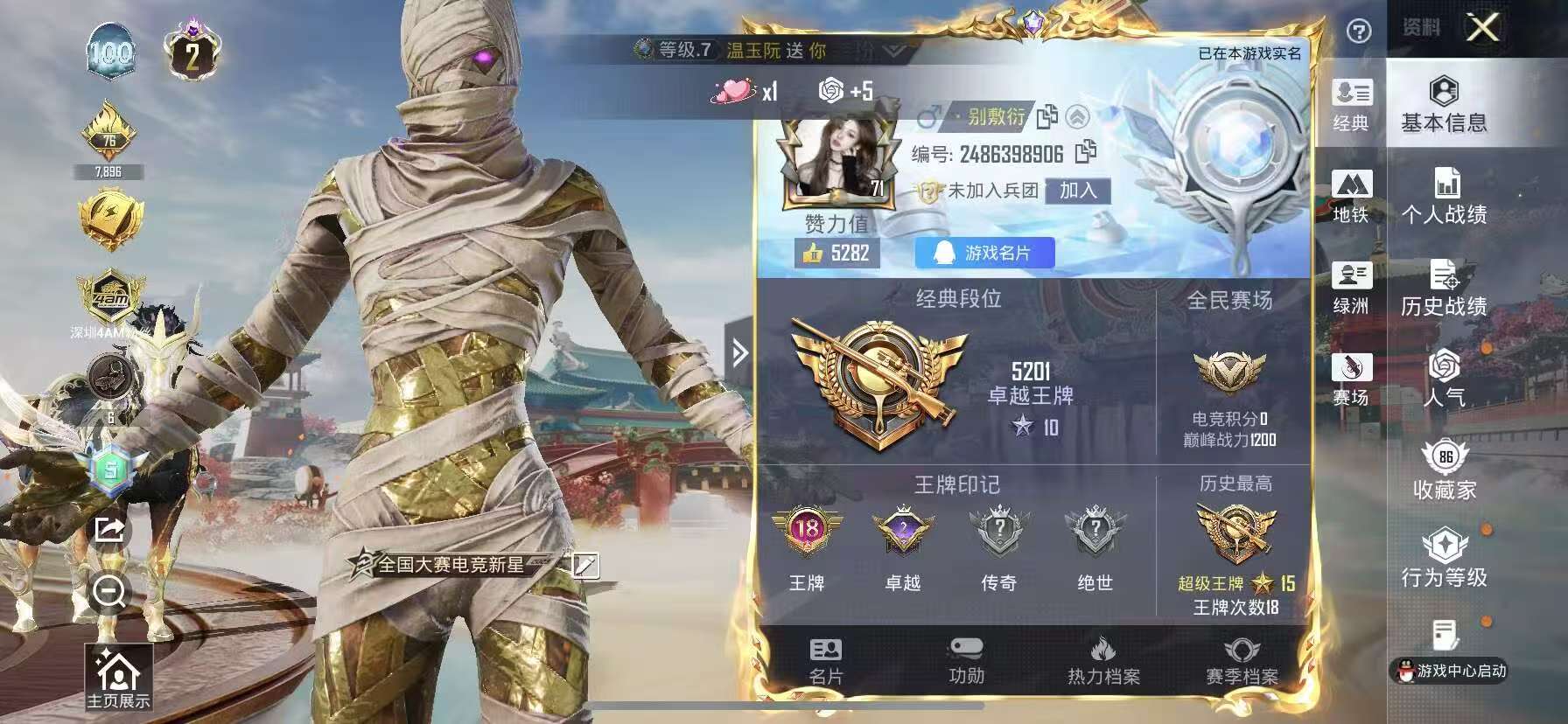 18王牌印记-3红装-31粉装-18特效枪-3载具-热力值-236套装-317枪皮-2卓越印记