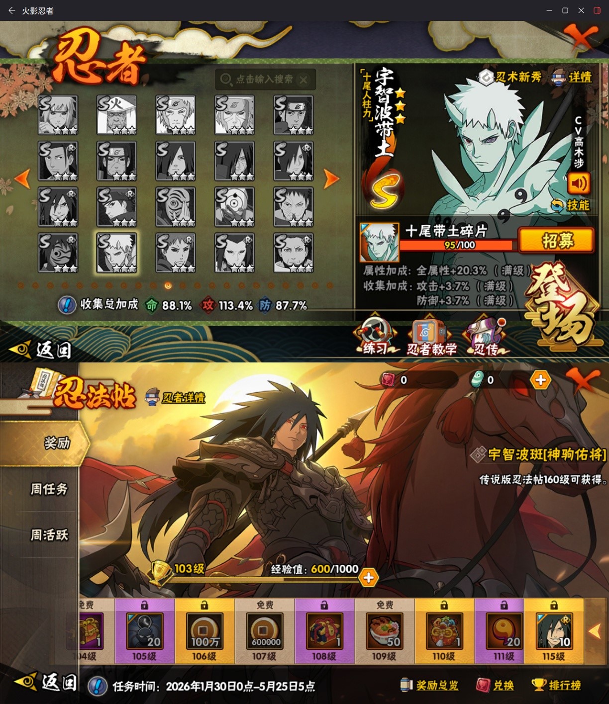 2493692_18S忍/38A忍/战力866W/V10/区服430(十尾带土95片.豪华忍法帖)