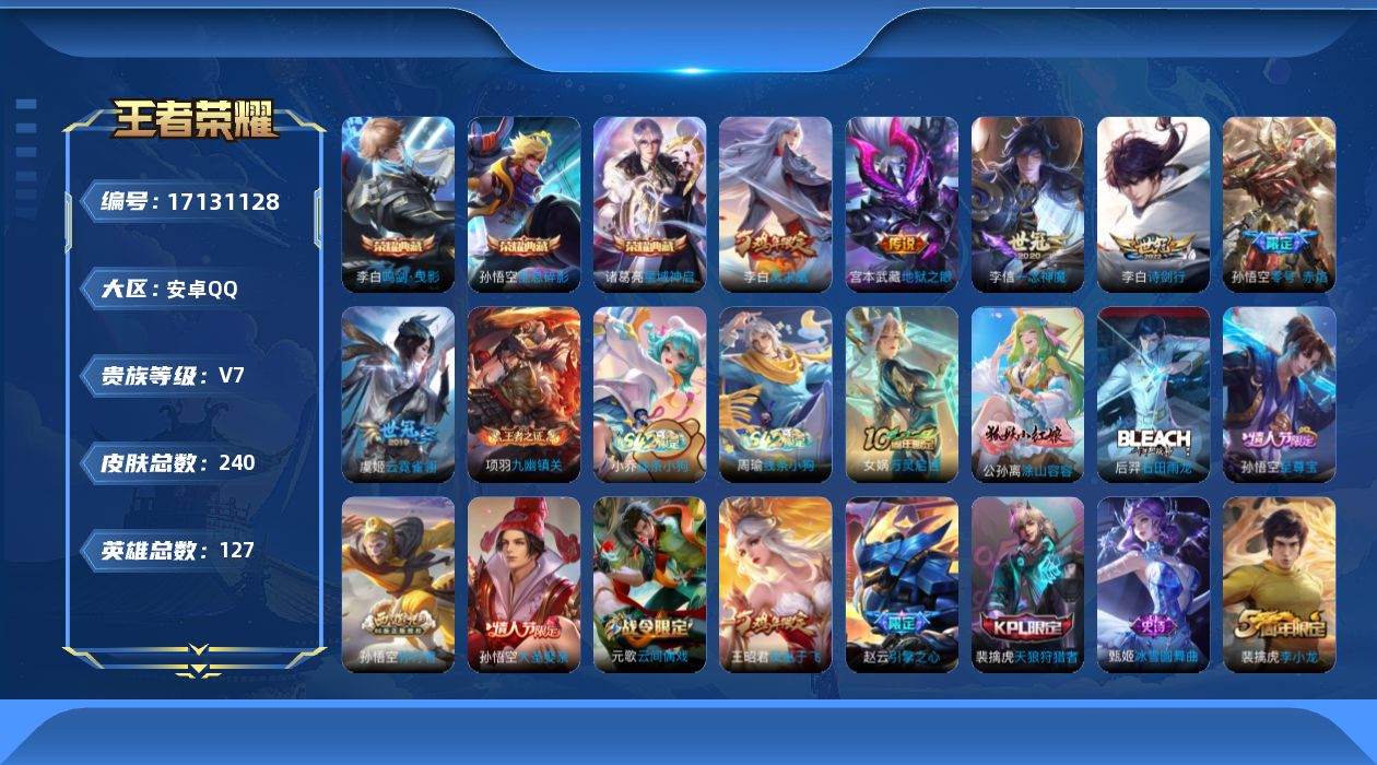 【精品号手慢无】V7,历史王者印记30,荣耀印记2,对抗路27段,打野26段,星传说-零号雷霆,幽冥之眼,600+花花,6改名卡,鸣剑·曳影,全息碎影,一念神魔,凤求凰,至尊宝,涂山容容,万灵启世,线条小狗-小乔,..九幽镇关,线条小狗-周瑜