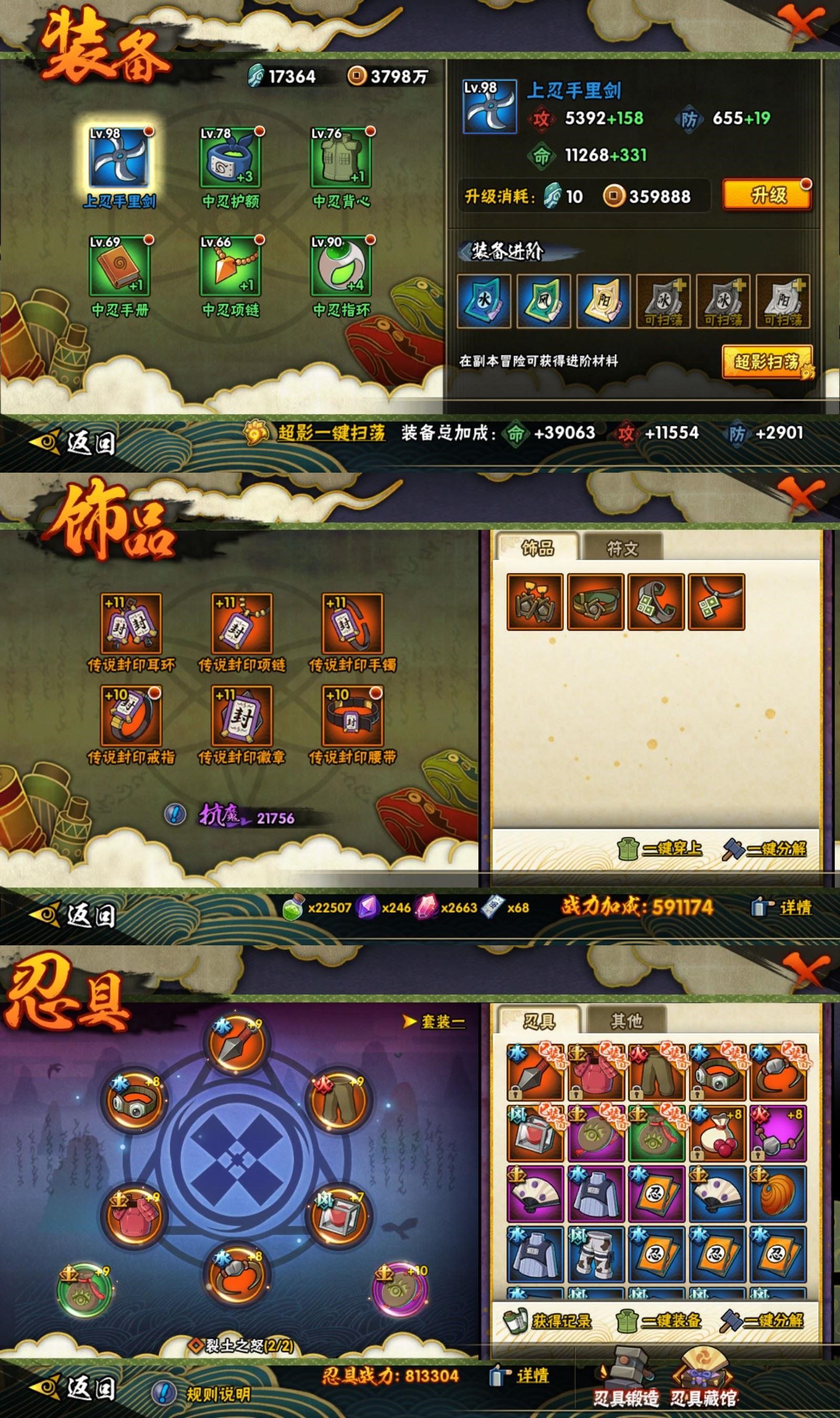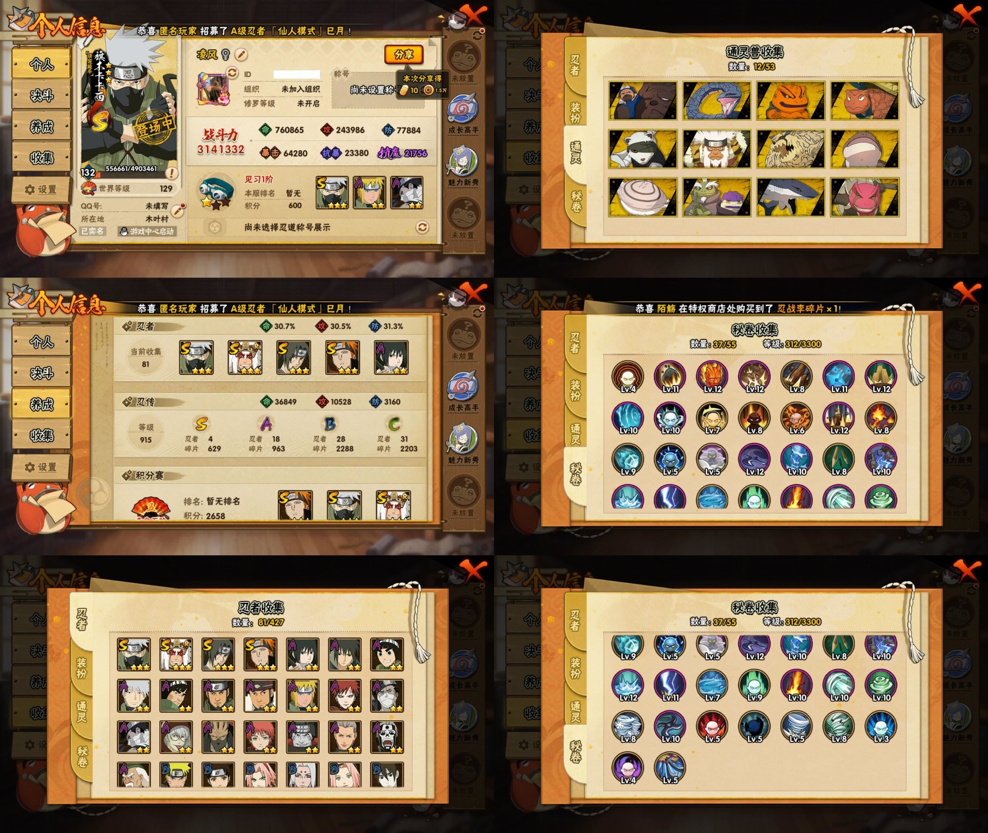 4S忍/18A忍/战力314W/V1/区服4062 【S忍者】自来也「舞之豪杰」,旗木卡卡西「须佐能乎」,