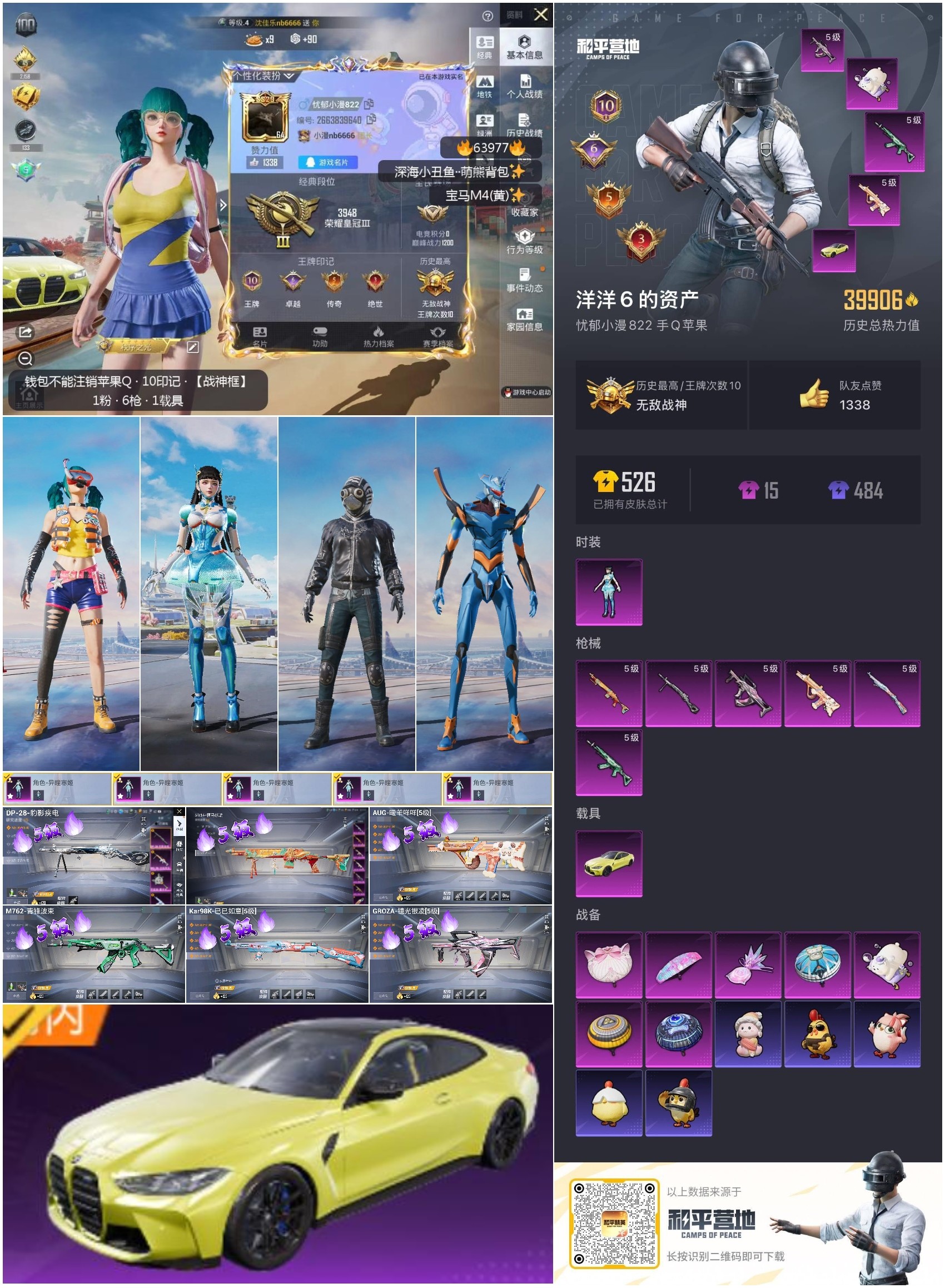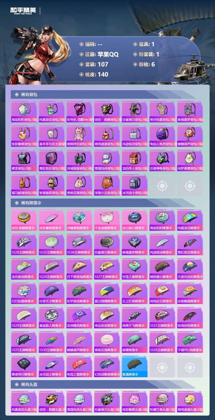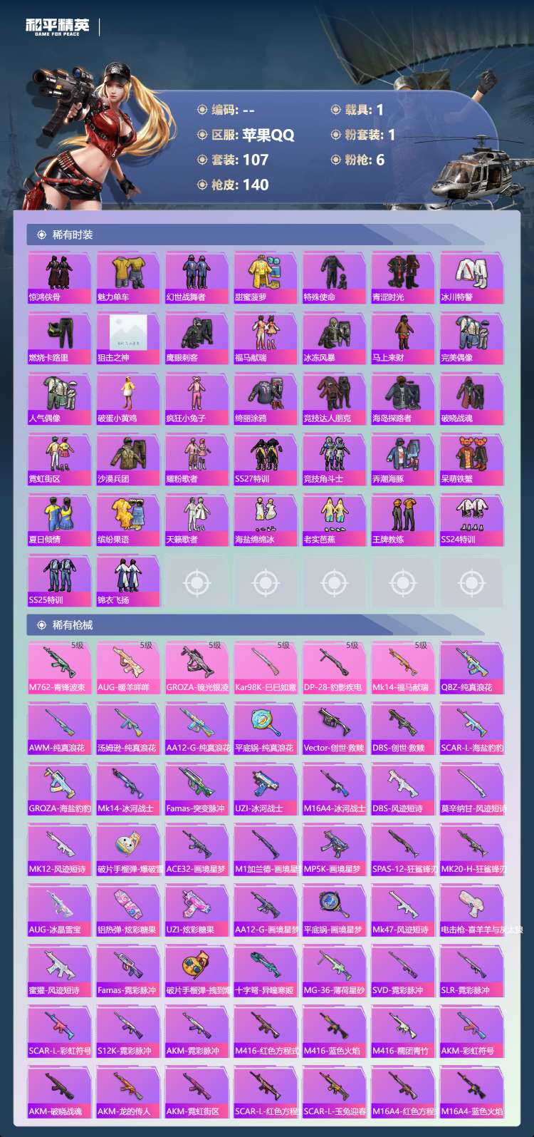 hs63977 苹果手Q-10王牌印记-有战神框-1粉装-6特效枪-1载具-39906热力值-107