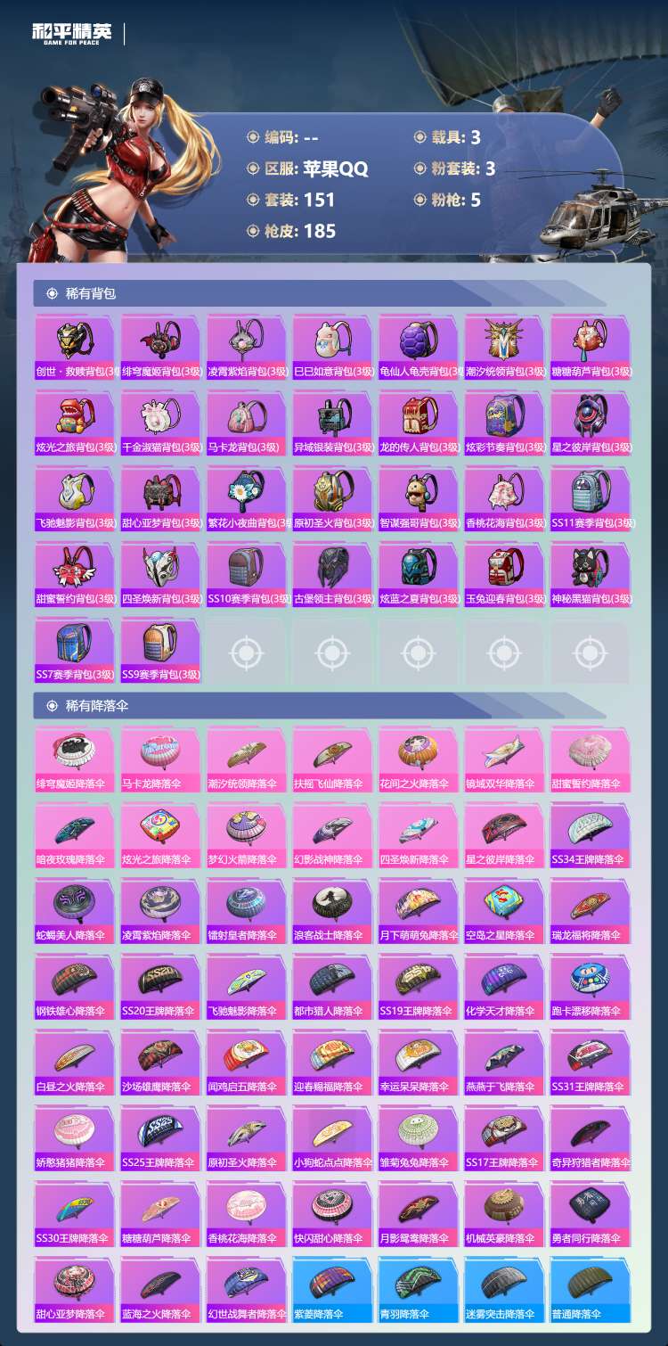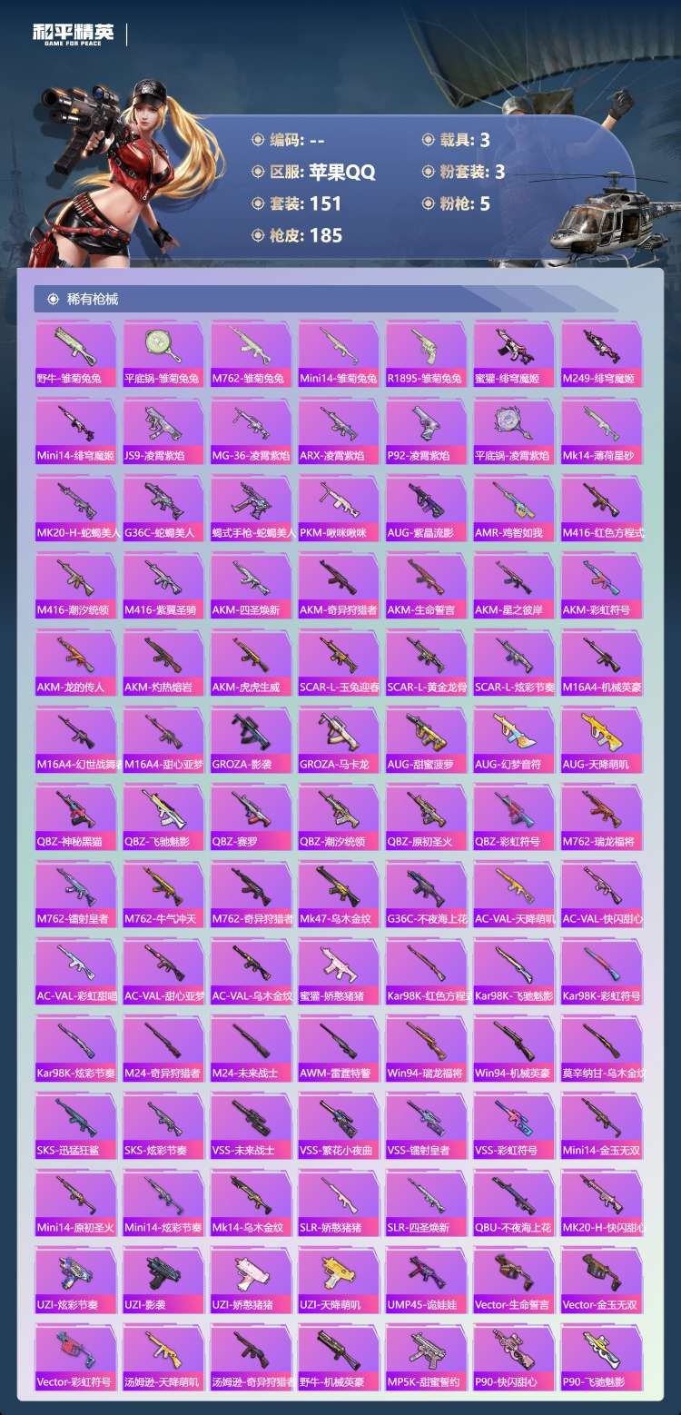 hs63977 苹果手Q-10王牌印记-有战神框-1粉装-6特效枪-1载具-39906热力值-107