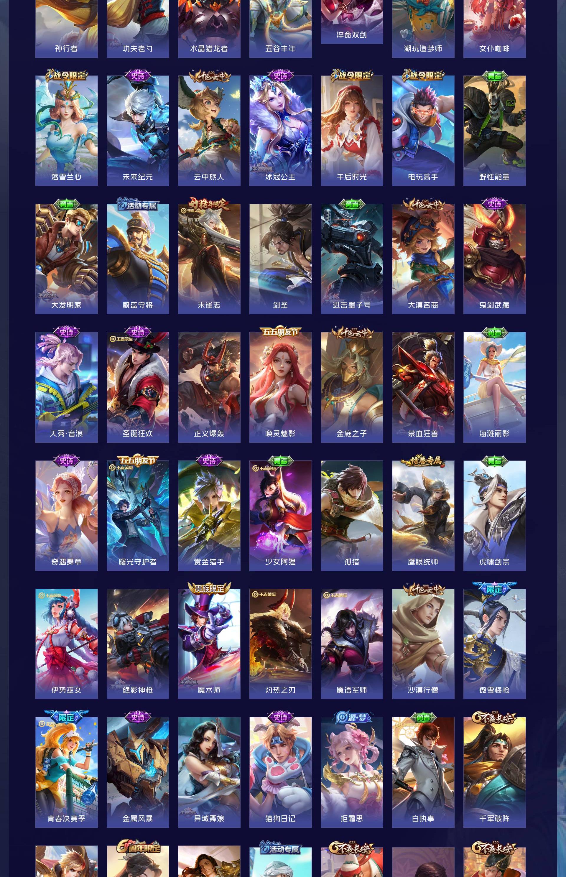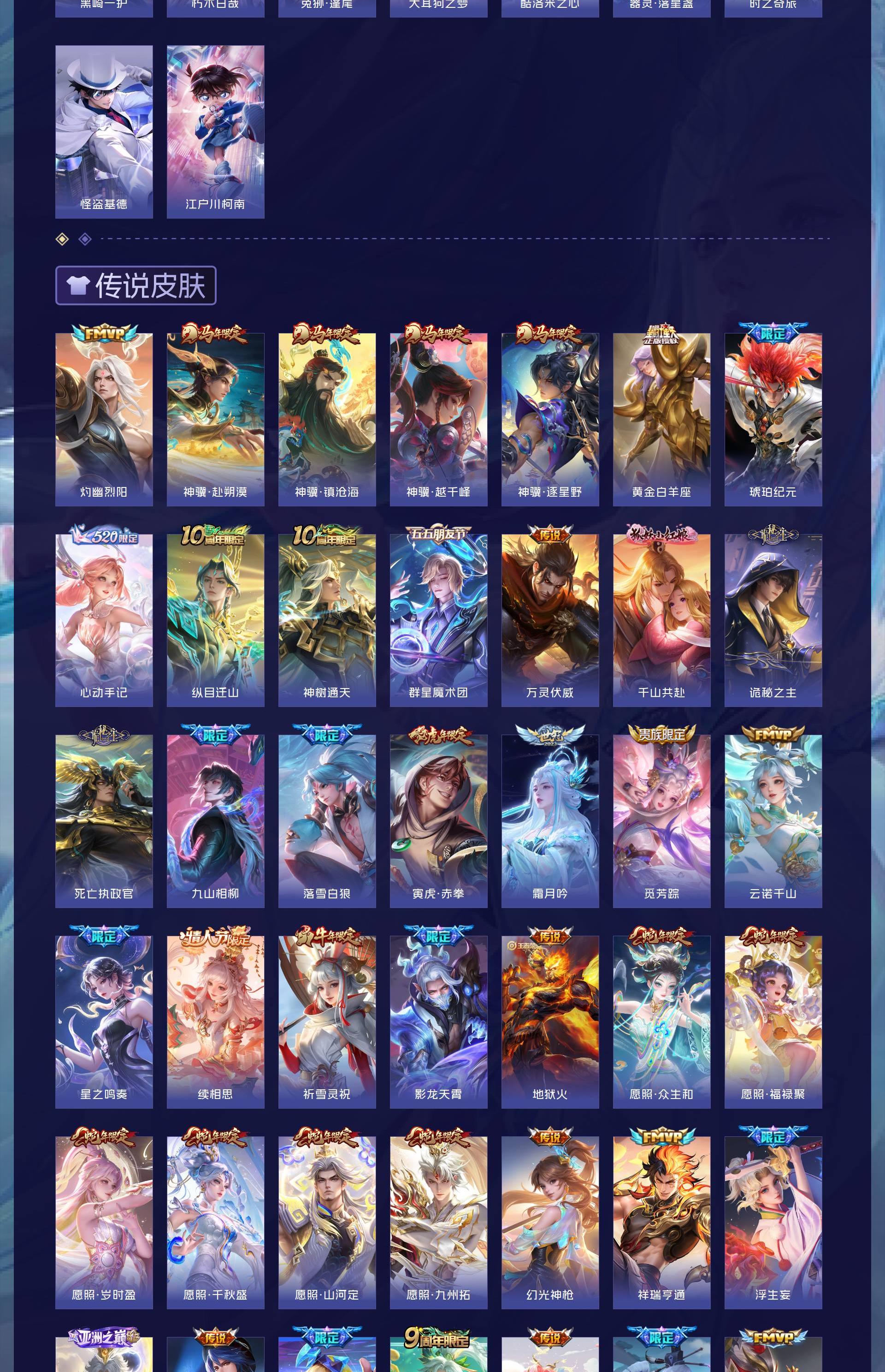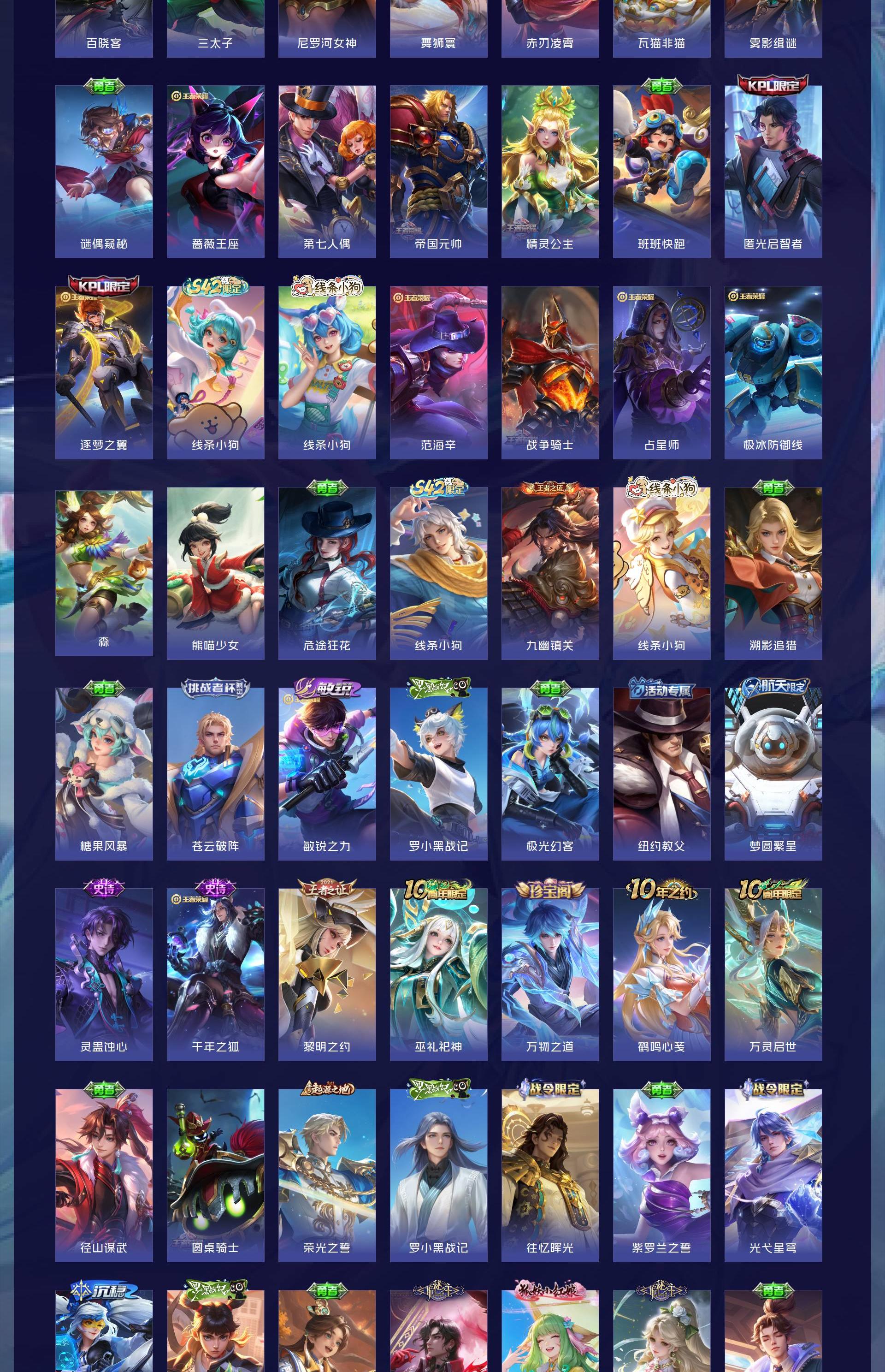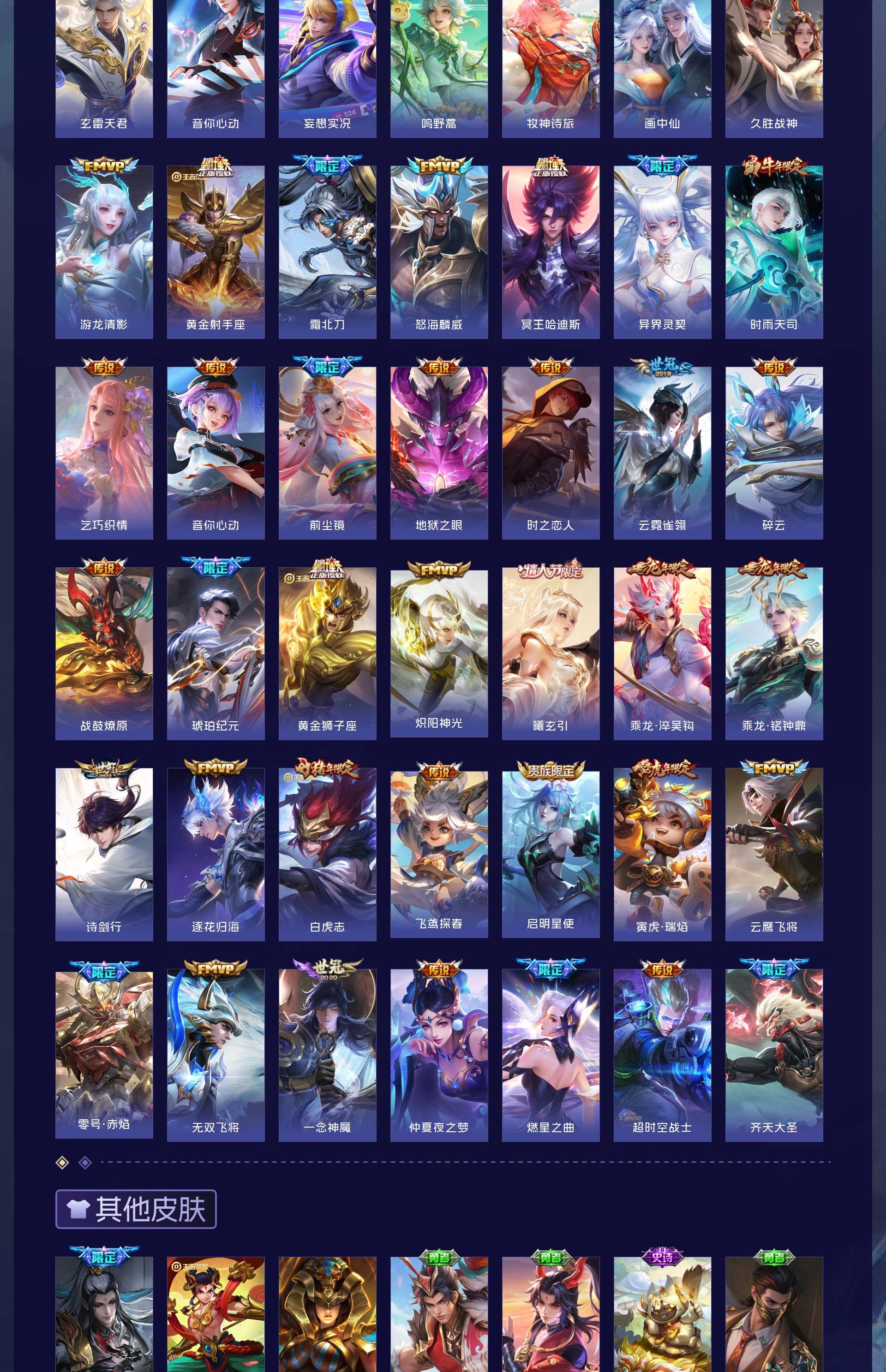 无双贵族 皮肤520 英雄128 至圣王者 荣耀典藏5 珍品无双1 无双皮肤7 珍品传说9 传说77 其他皮肤427
