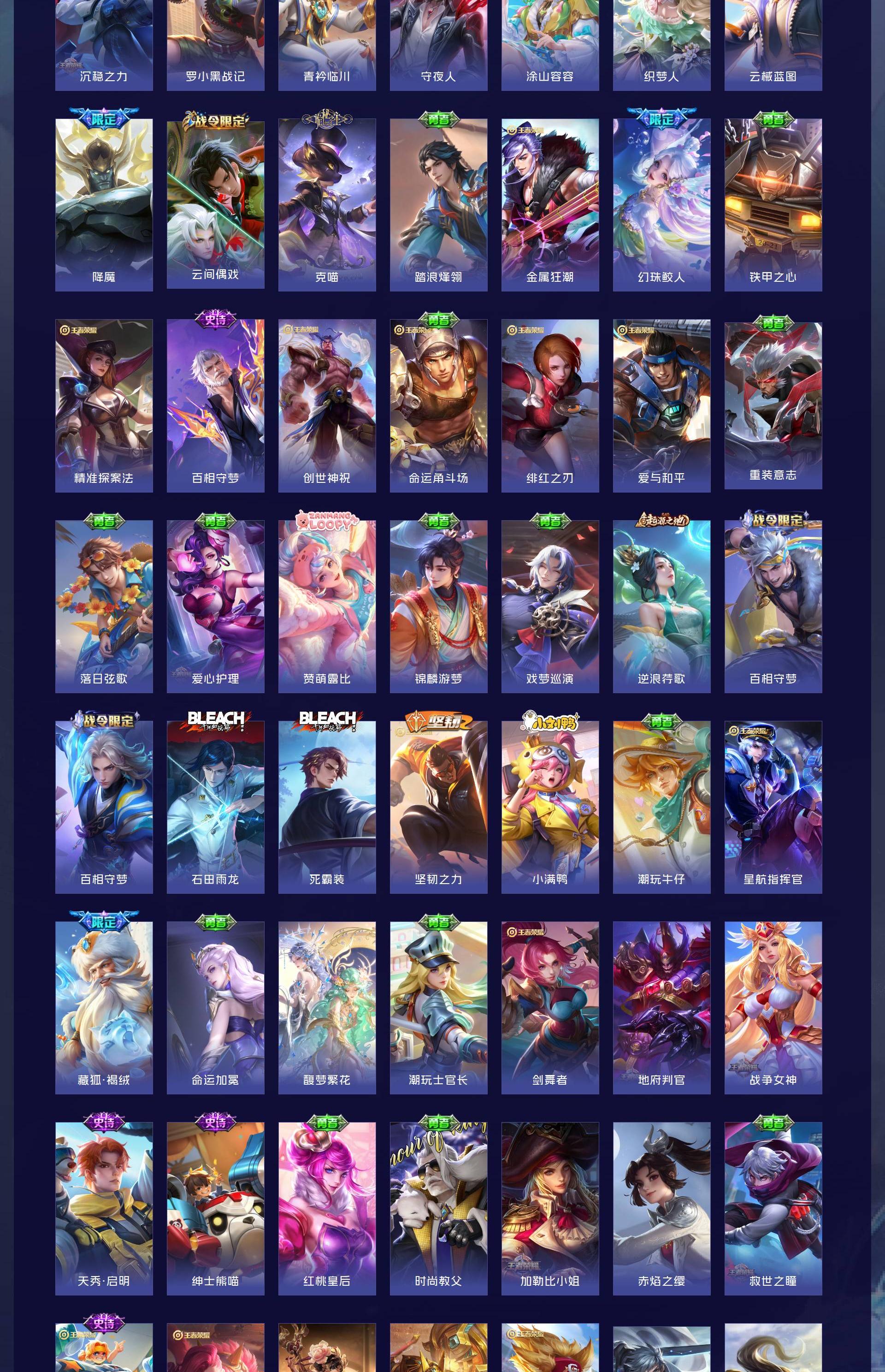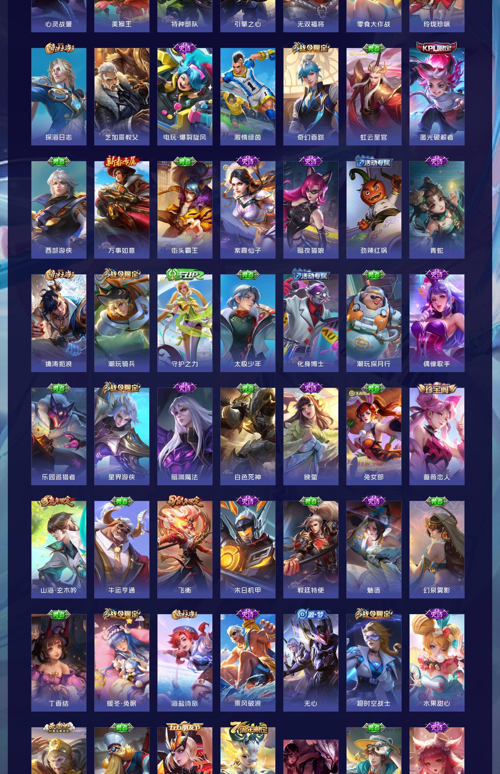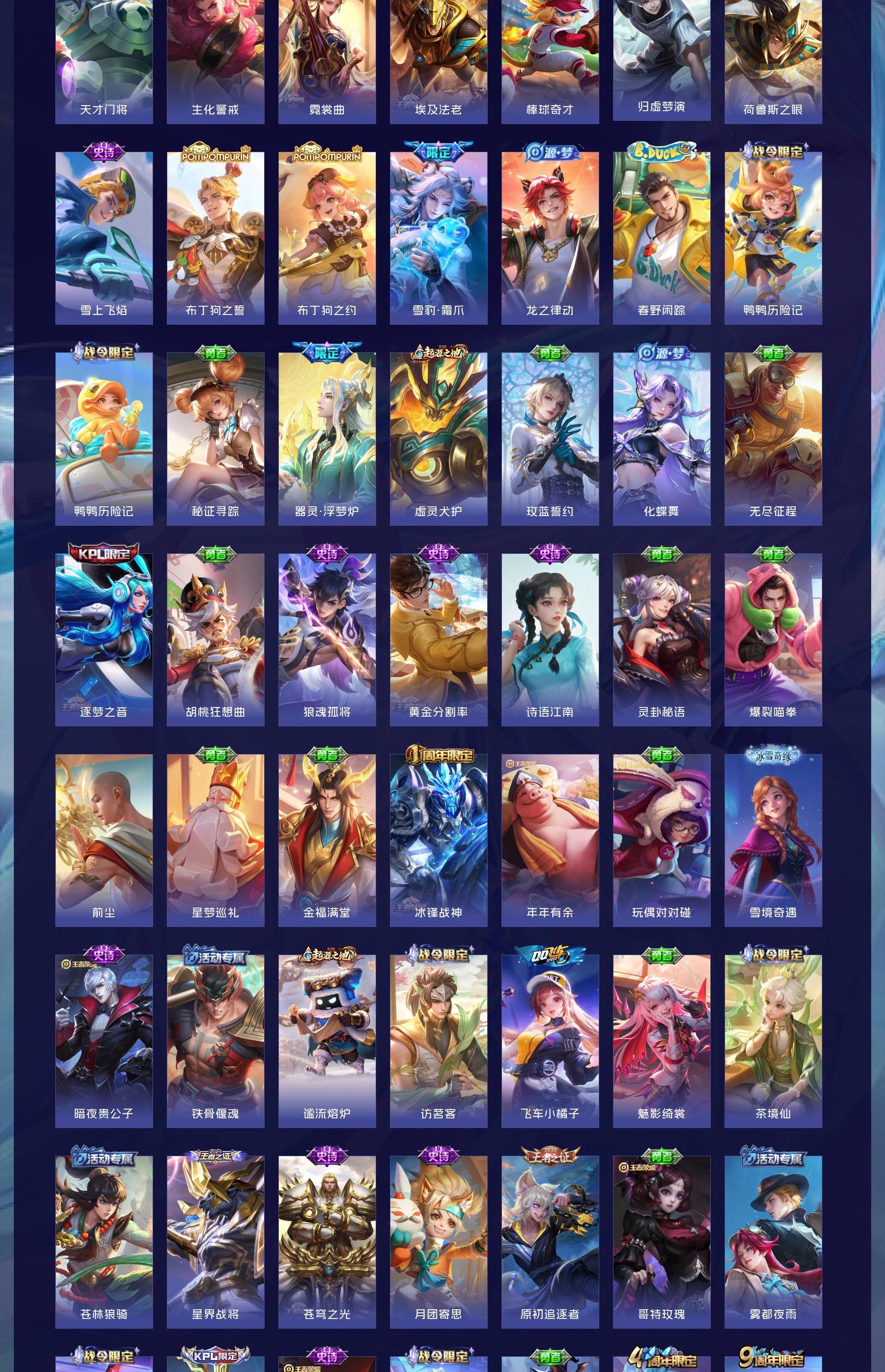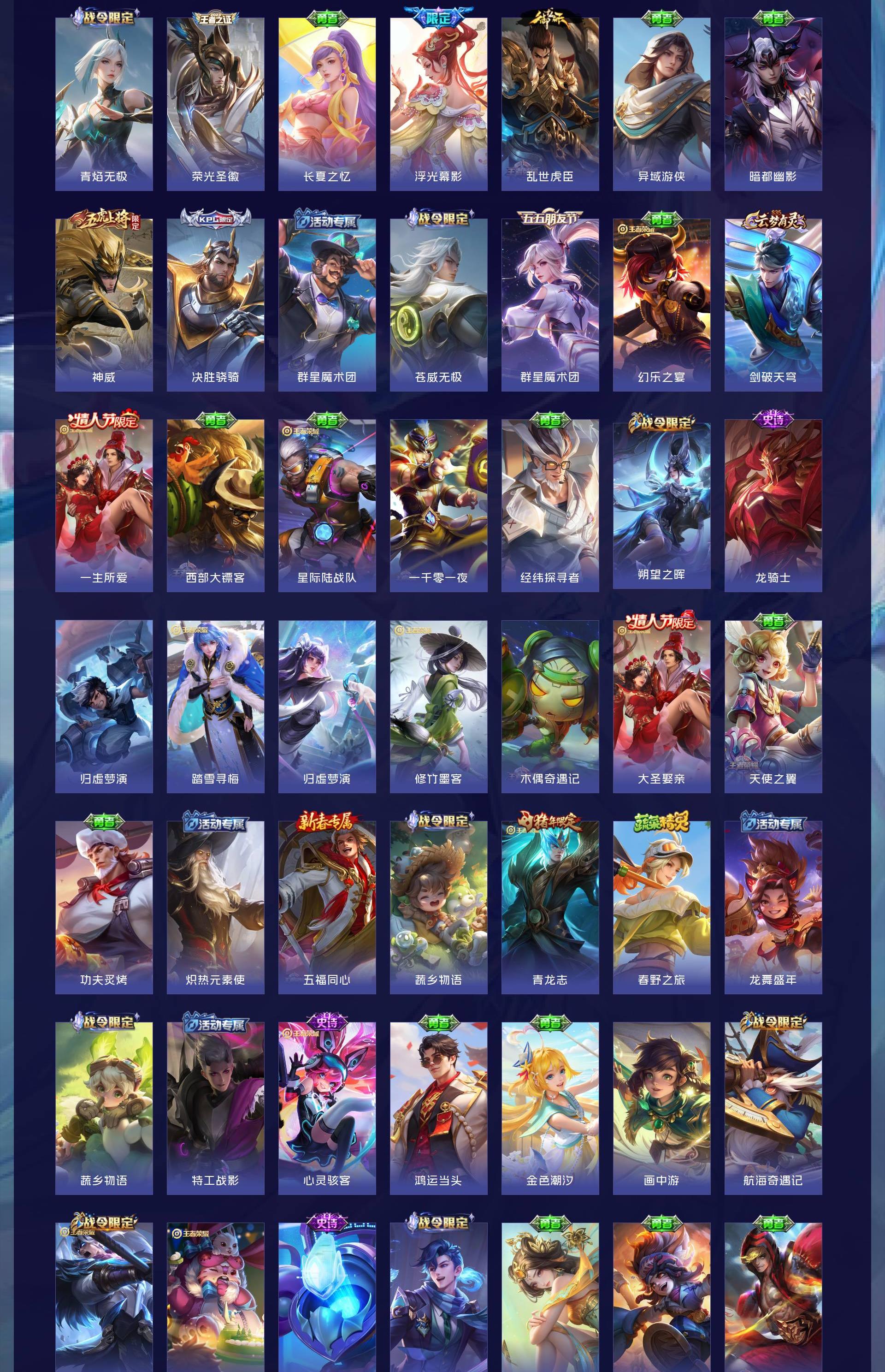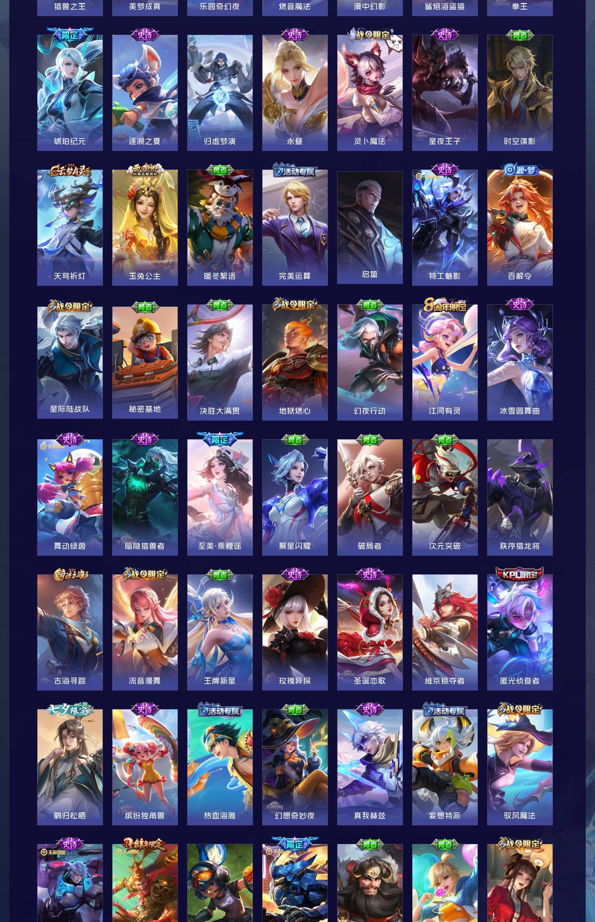 无双贵族 皮肤520 英雄128 至圣王者 荣耀典藏5 珍品无双1 无双皮肤7 珍品传说9 传说77 其他皮肤427
