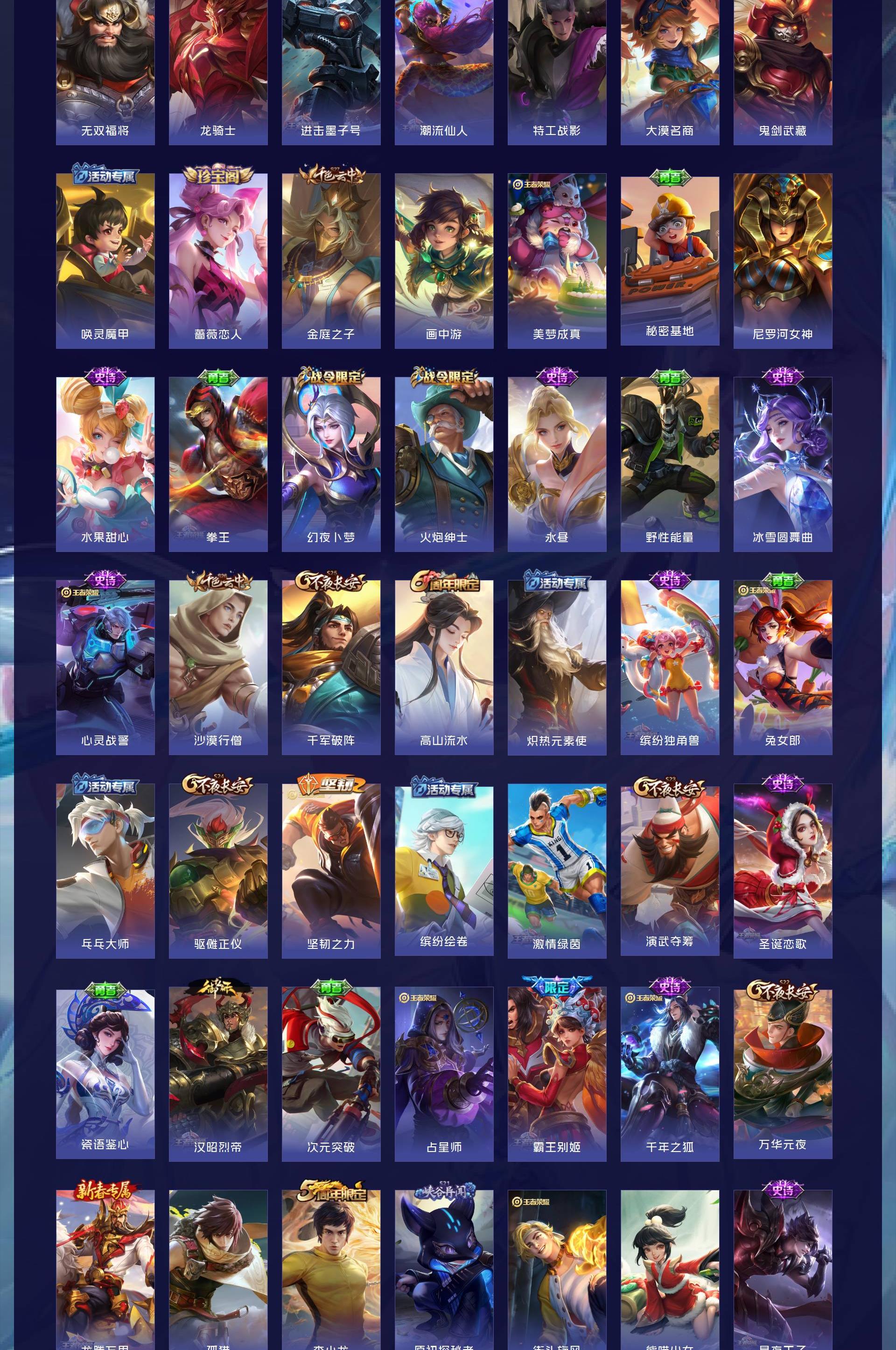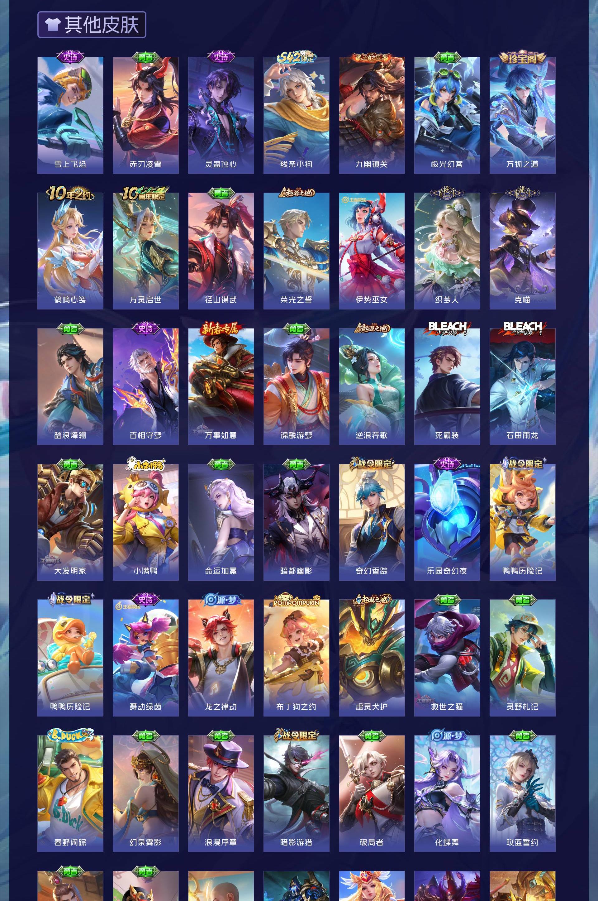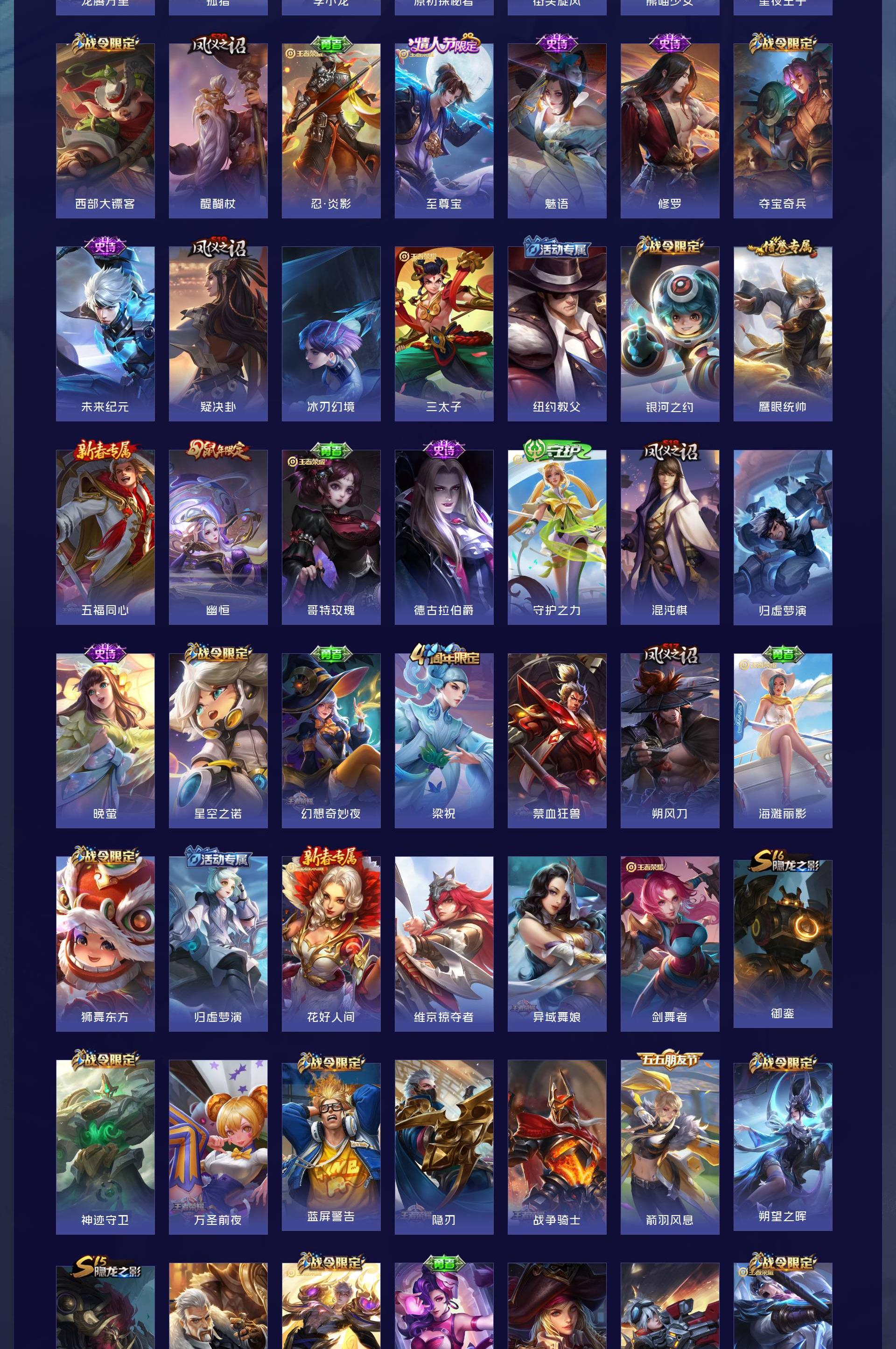 V7 皮肤326 英雄128 非凡王者 荣耀典藏3 珍品传说2 传说14 其他皮肤314