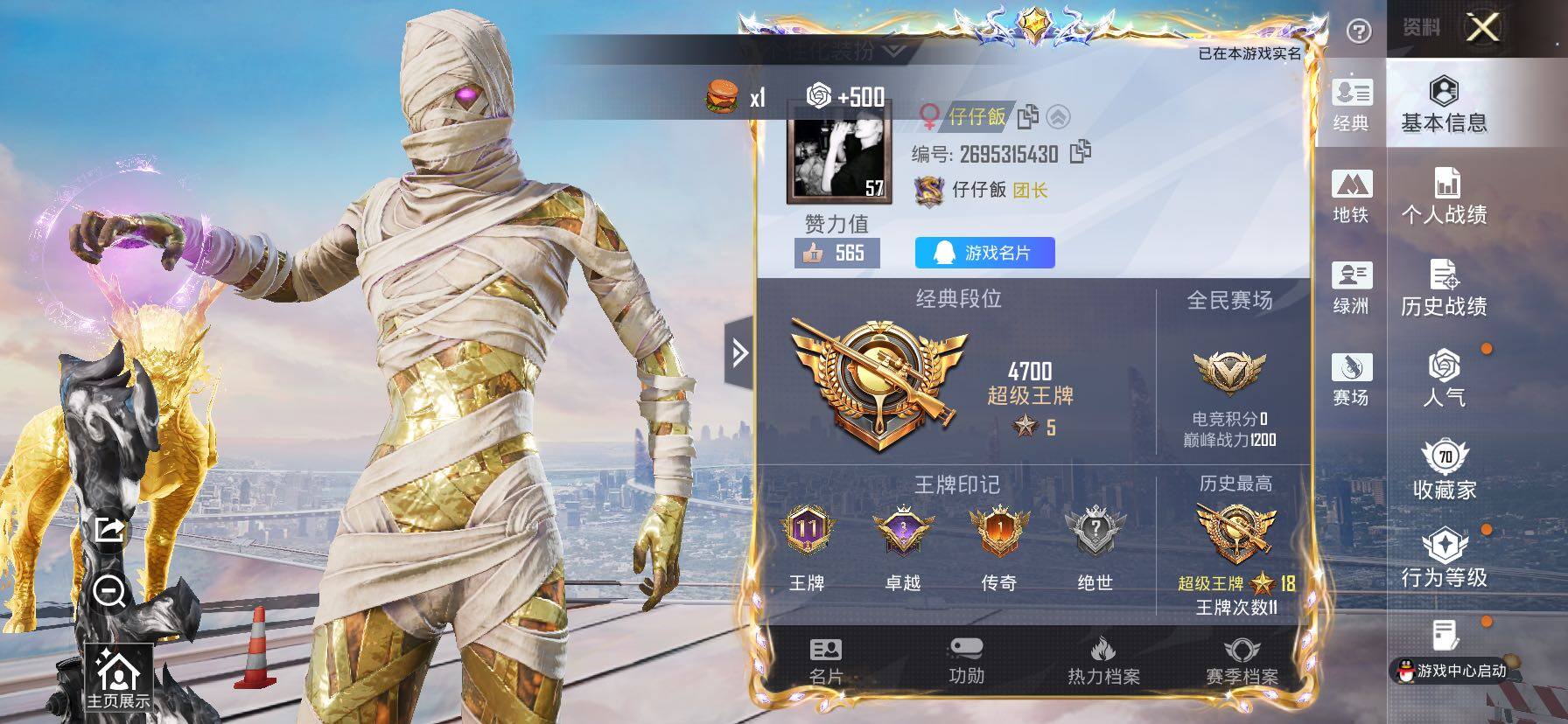 2红装2稀有2载具5粉装13特效枪10热门104套装207枪皮11印记 历史超级王牌18星