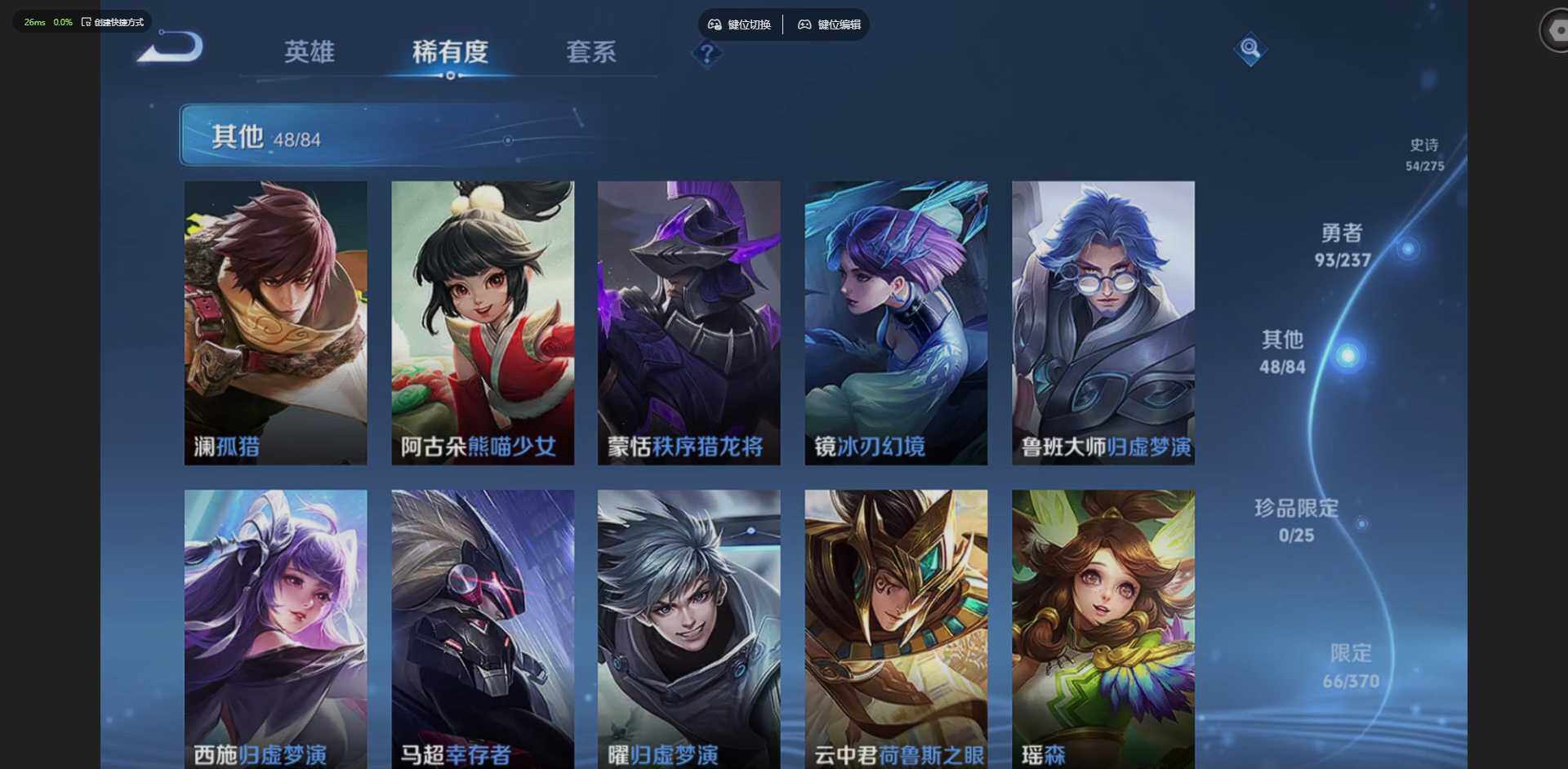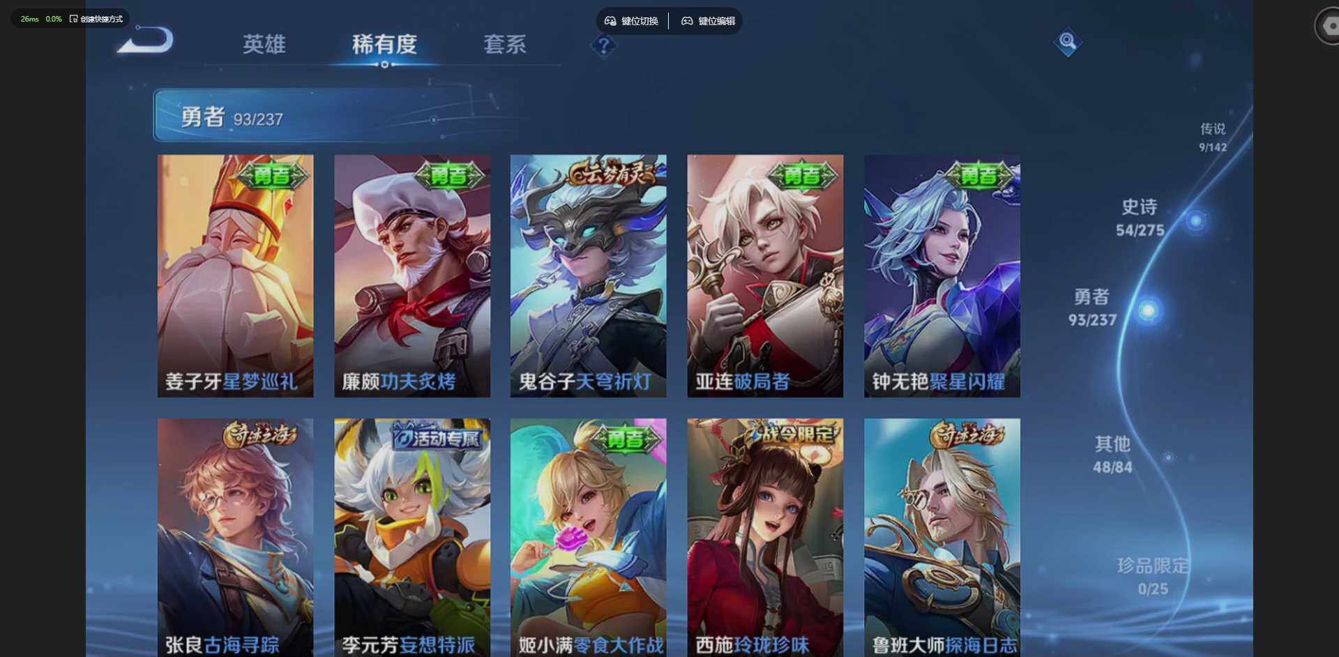 【KK3733】实名: 可修改 贵族等级: V7 英雄数: 127 皮肤数: 205 荣耀水晶: 全息碎影 星传说: 未来机甲,幽冥之眼,金色仲夏夜 传说皮: 云鹰飞将,久胜战神,末日机甲-孙尚香,仲夏夜之梦,地狱之眼,游龙清影,末日机甲-孙策,山海·苍雷引,神骥·赴朔漠 限定皮: 遇见飞天,李小龙,游园惊梦,梁祝,蜜橘之夏,默契交锋-花木兰,高山流水,匿光追影者