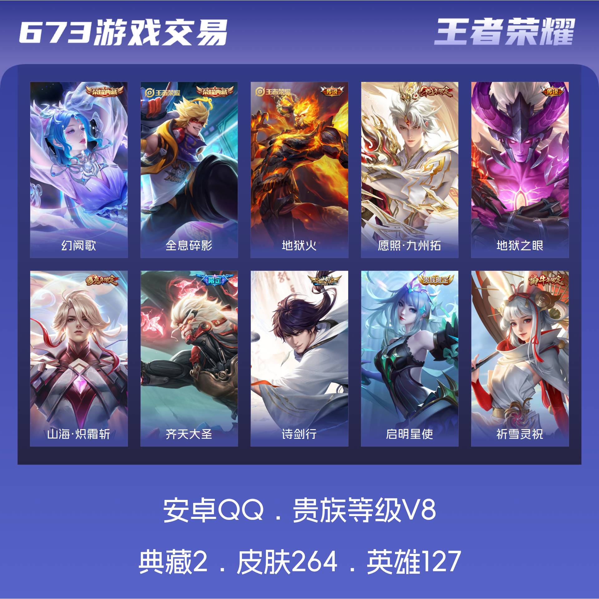 V8 皮肤264 英雄127 永恒钻石 荣耀典藏2 传说11 其他皮肤257
