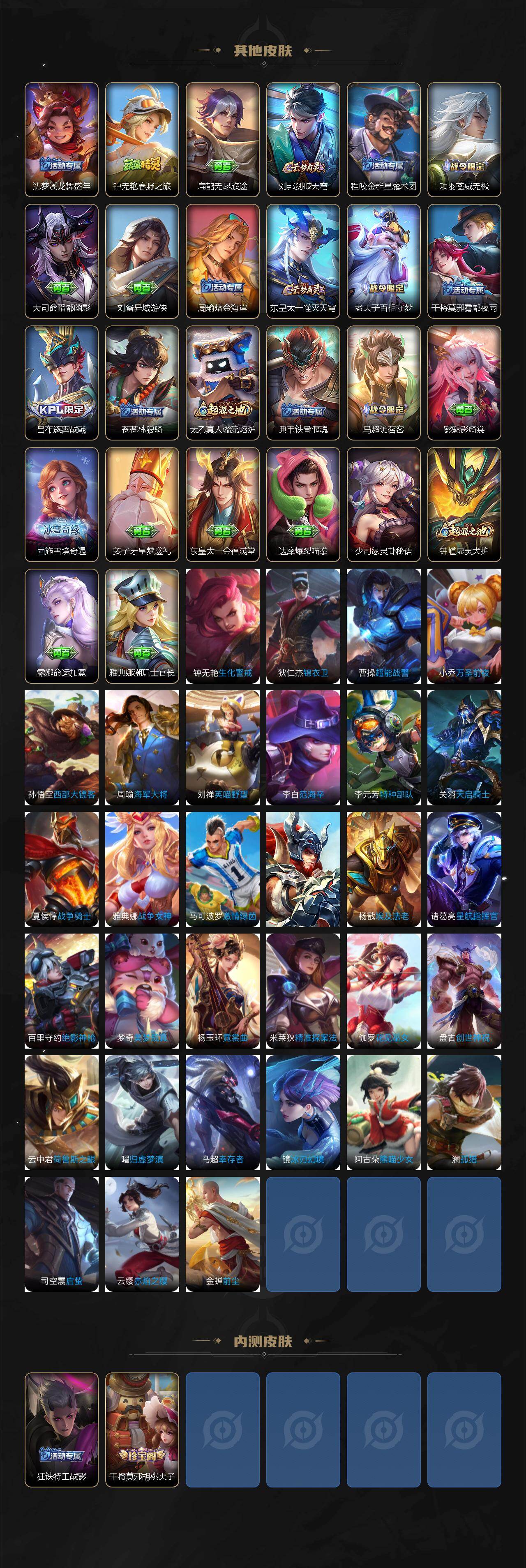 【限定皮肤】:李白谪仙醉月,狄仁杰阴阳师,赵云皇家上将,赵