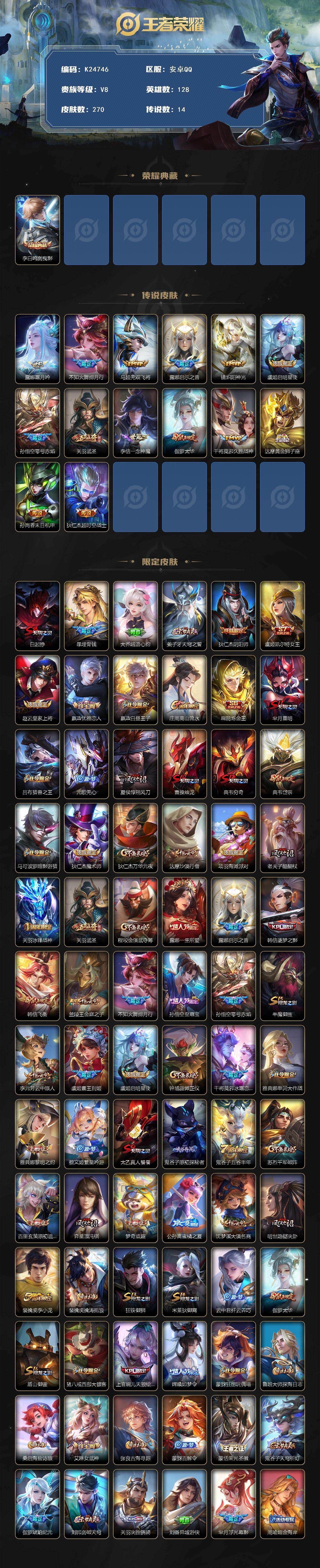 V8-最强王者段位-128英雄-270皮肤-1典藏皮肤-14传说