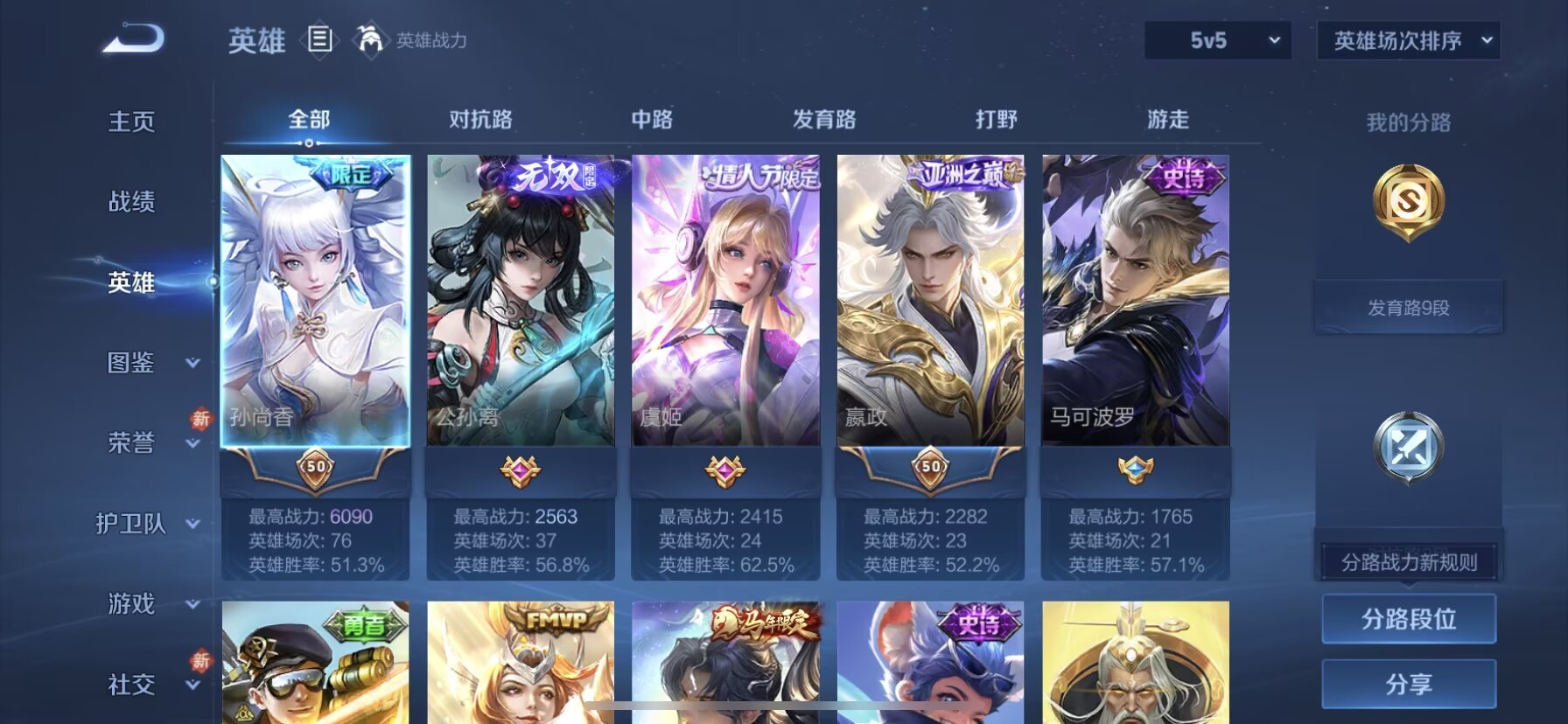 V7 皮肤41 英雄43 荣耀王者 无双皮肤1 珍品传说1 传说6 其他皮肤35