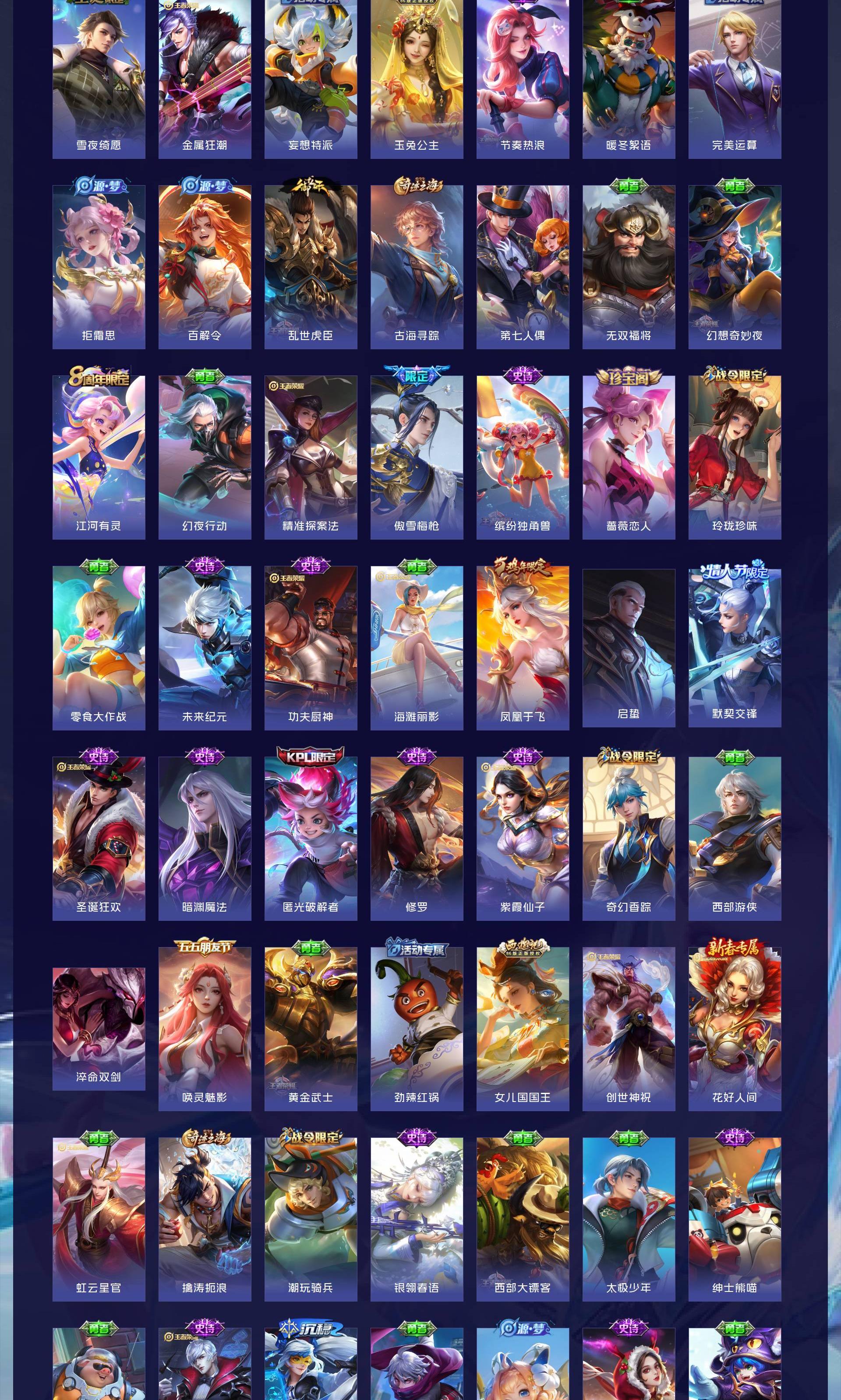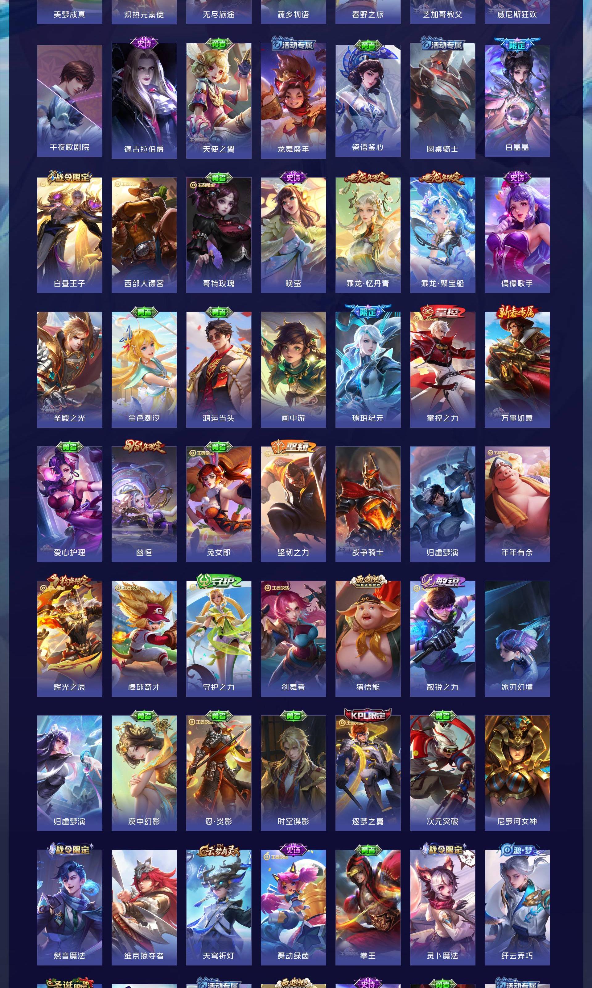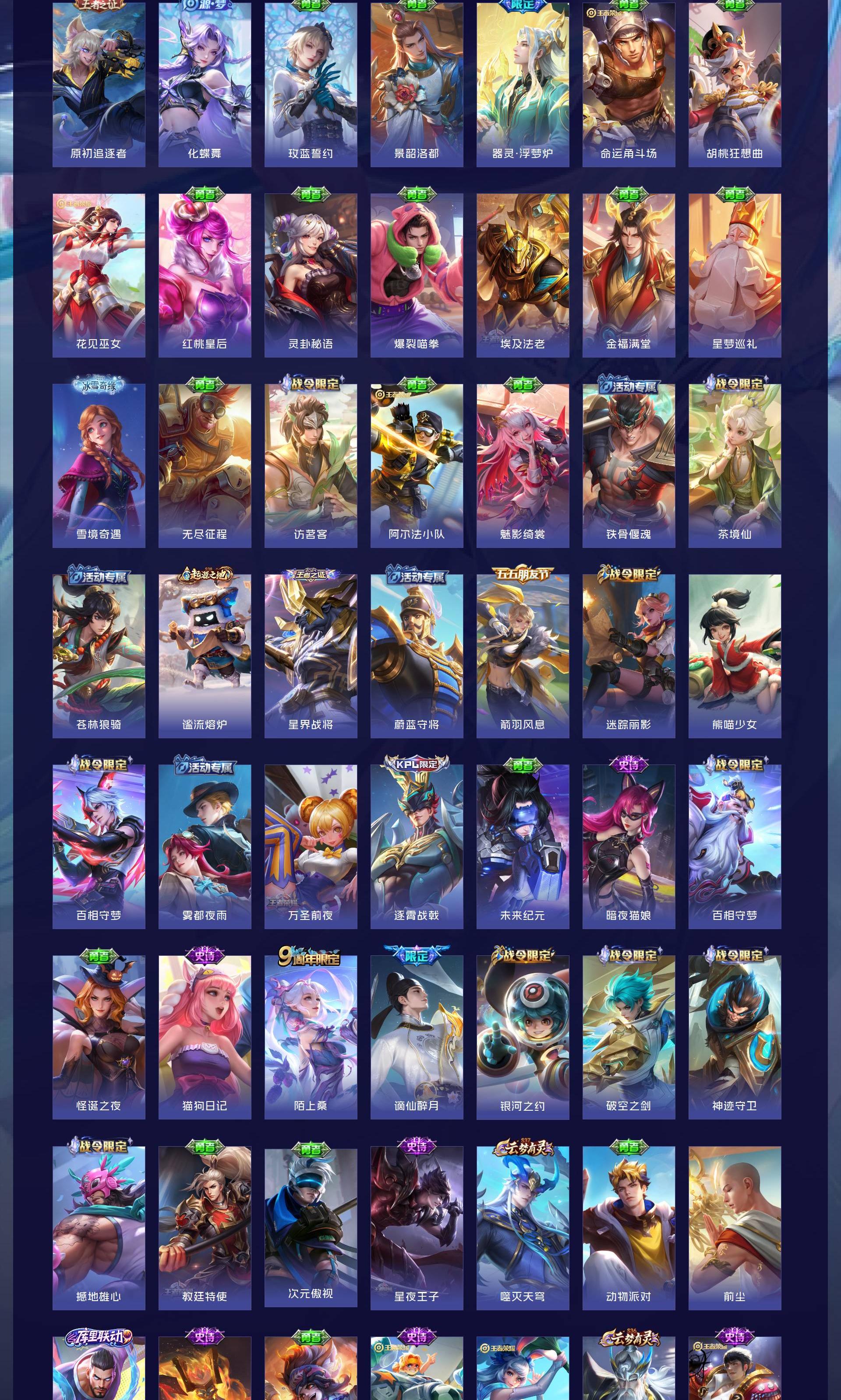 V9 皮肤417 英雄128 最强王者 荣耀典藏4 无双皮肤2 传说47 其他皮肤370