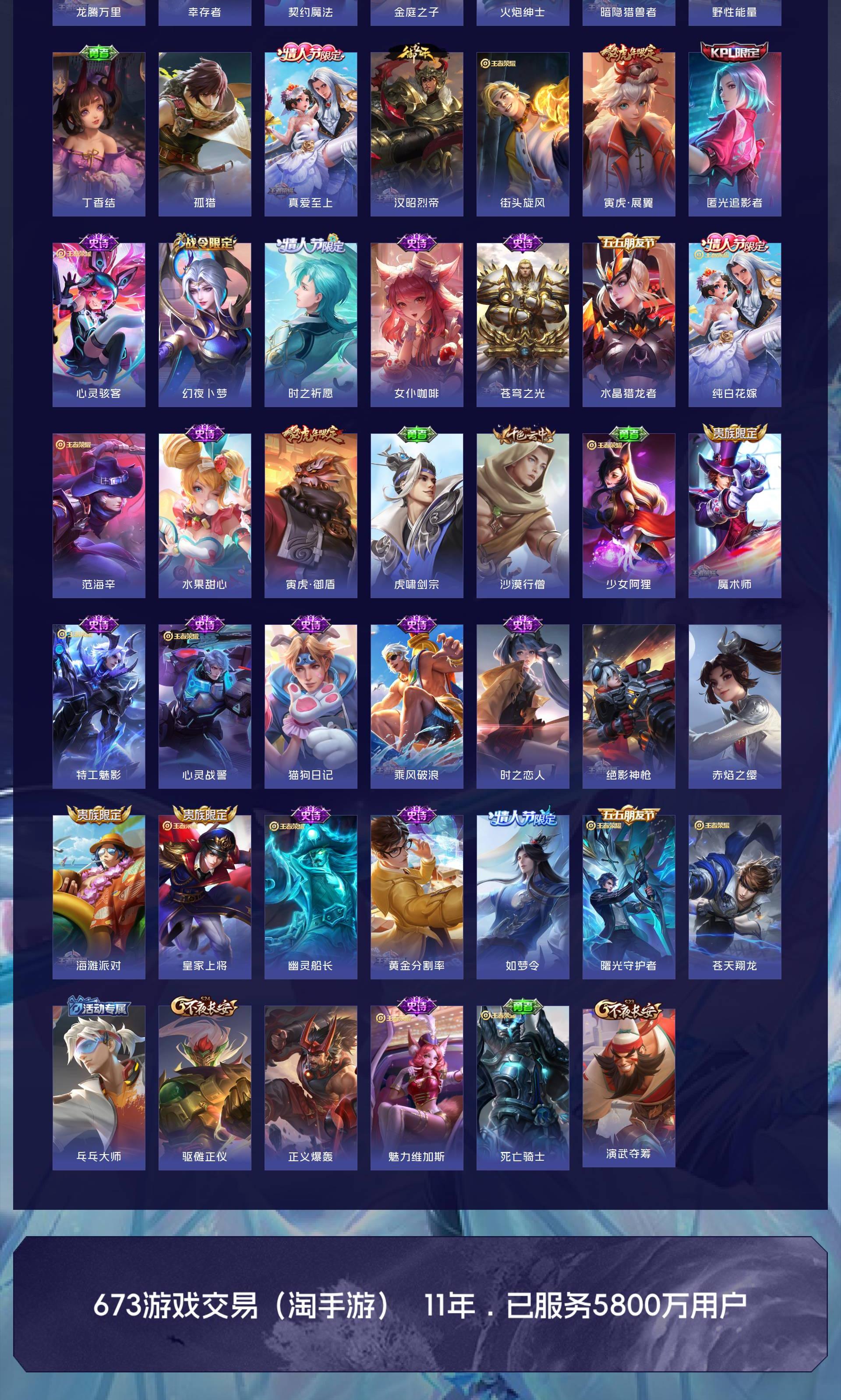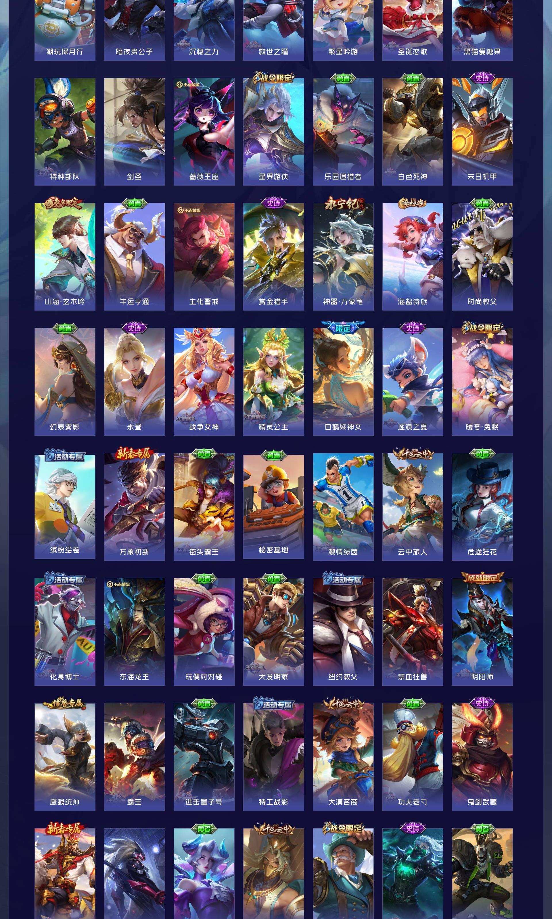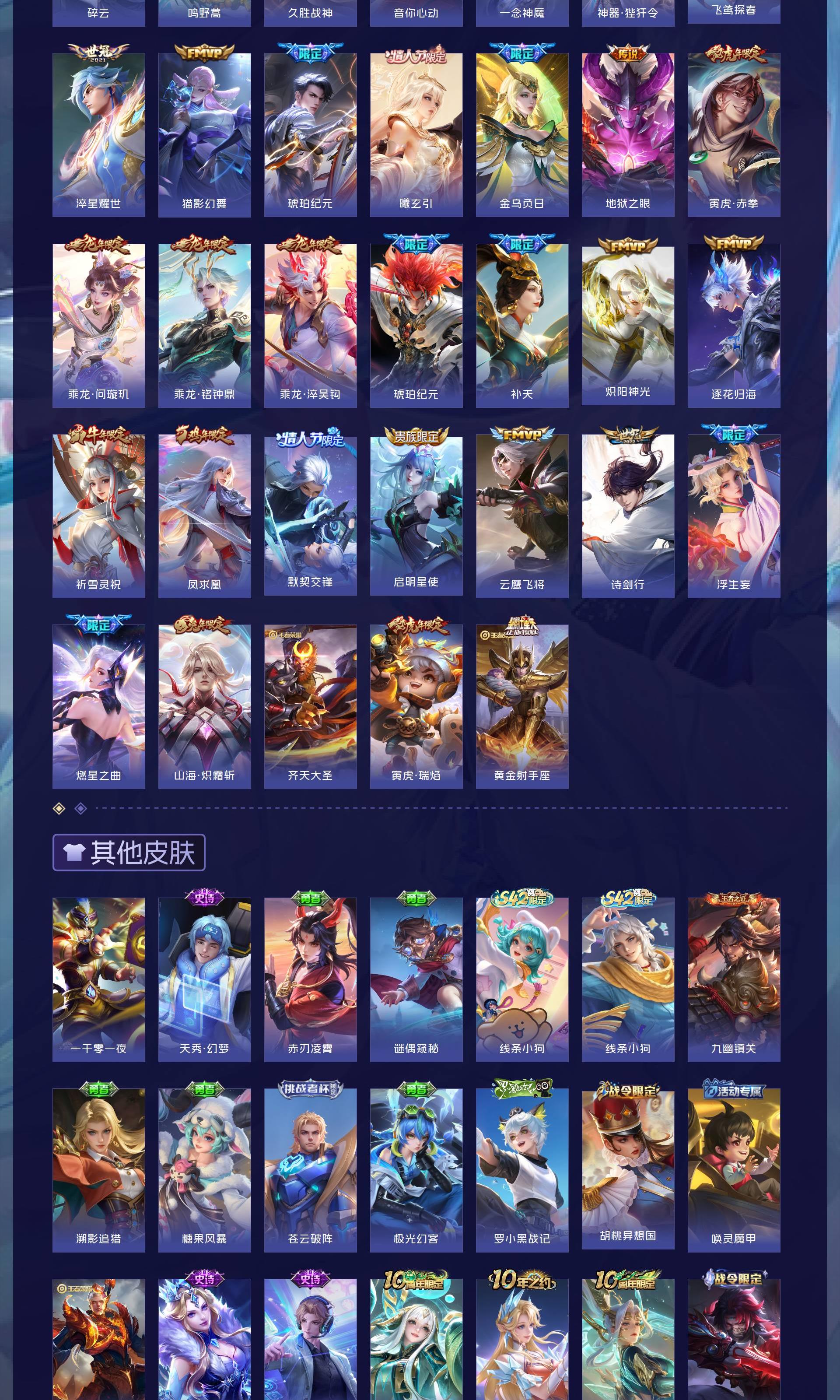 V9 皮肤417 英雄128 最强王者 荣耀典藏4 无双皮肤2 传说47 其他皮肤370