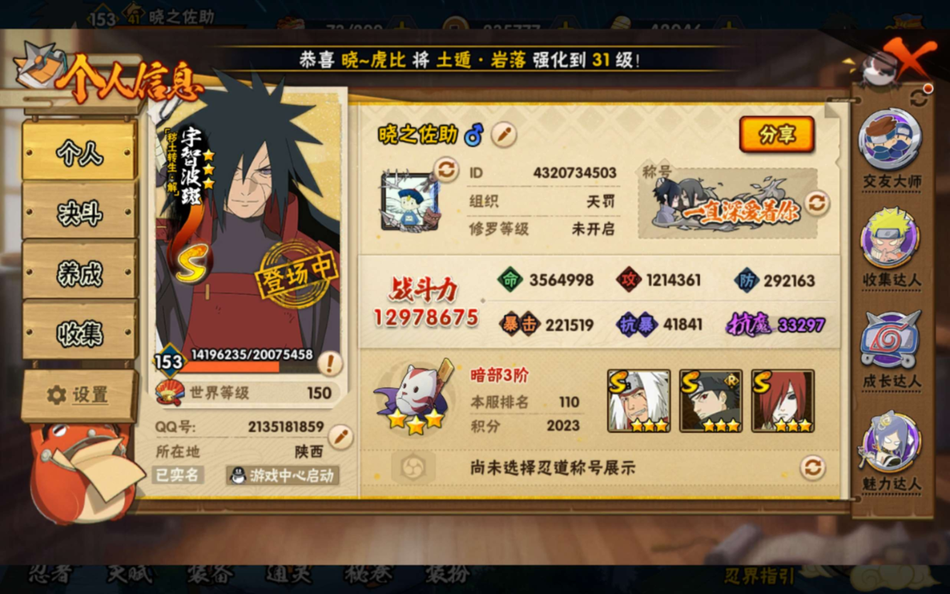 安卓QQ-v8一千万战力成品大号免肝免氪-S忍者数:22-