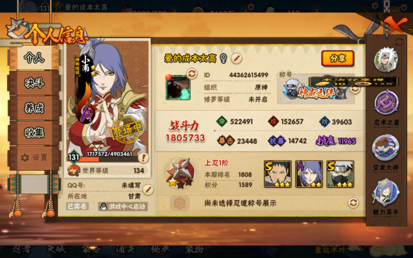 安卓QQ-可二次-v11成品小号急出,新人入坑选择之一-S忍者数:8- A忍者数:13-熊猫