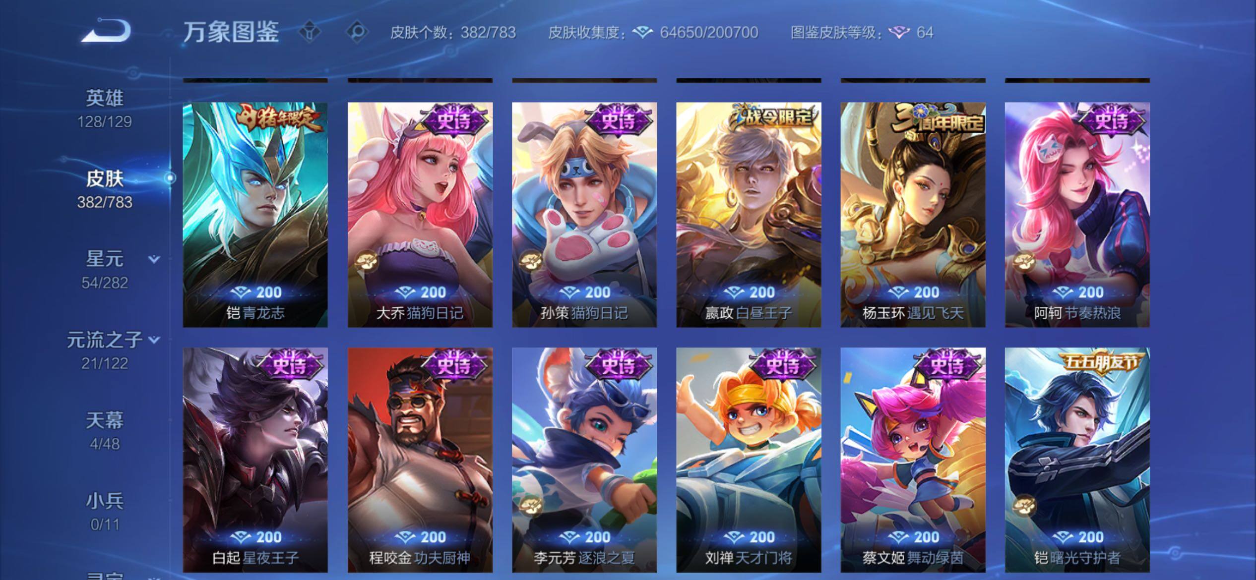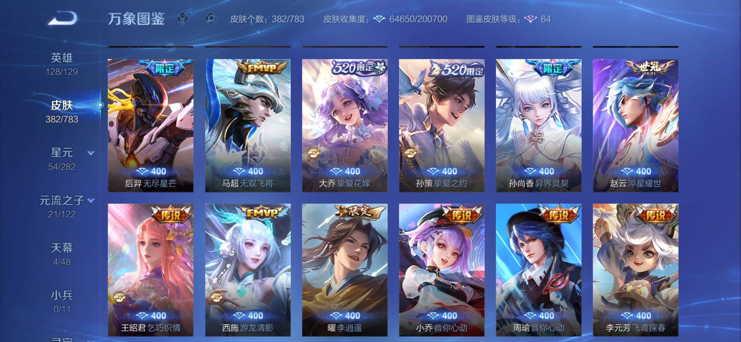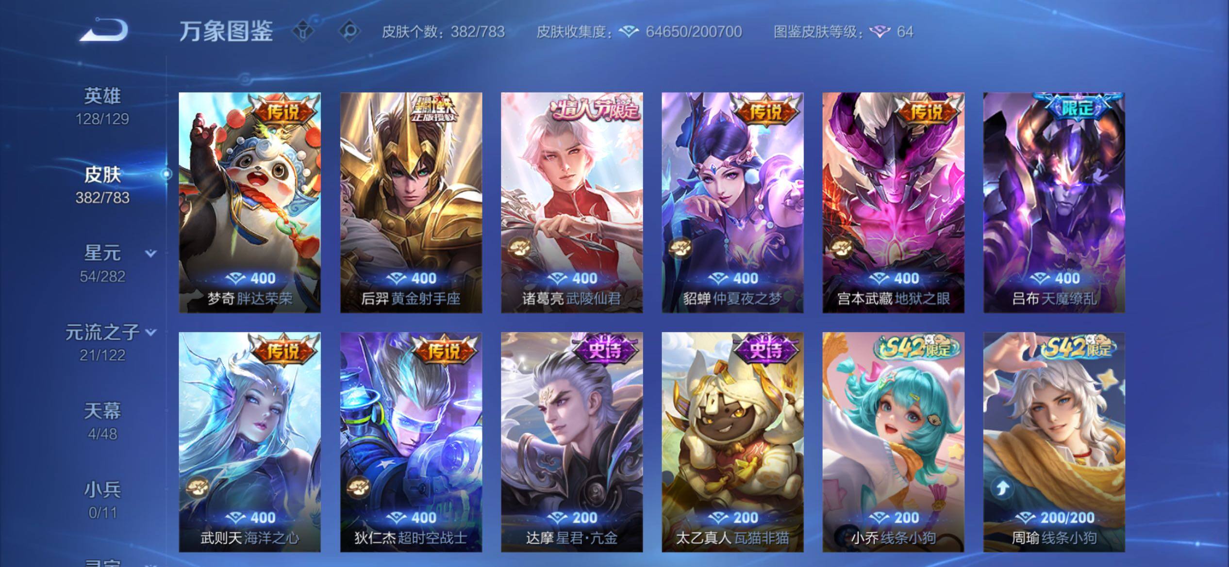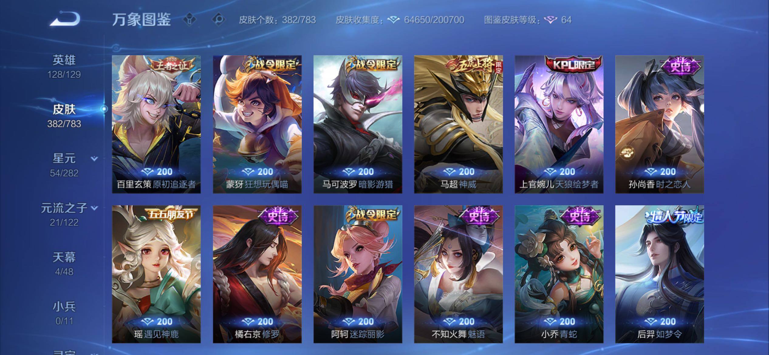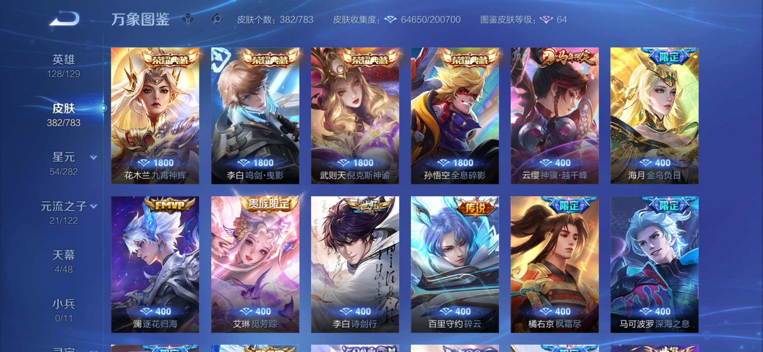 可换绑【捡漏V10精品号·5典藏含武则天英雄·马年云缨·520大乔孙策·李逍遥·天魔缭乱·神威·浪翻一夏天幕·挚爱童话天幕·贵族积分22万】22按键,2天幕,2星传说,624戳戳,16王者印记,满级铭文,可二次KK9735,苹果Q-V10-382皮肤-4典藏皮肤-1典藏英雄-40传说-118史诗【英雄全皮】:孙权全皮,橘右京全皮,狂铁全皮,鲁班大师全皮,空空儿全皮,