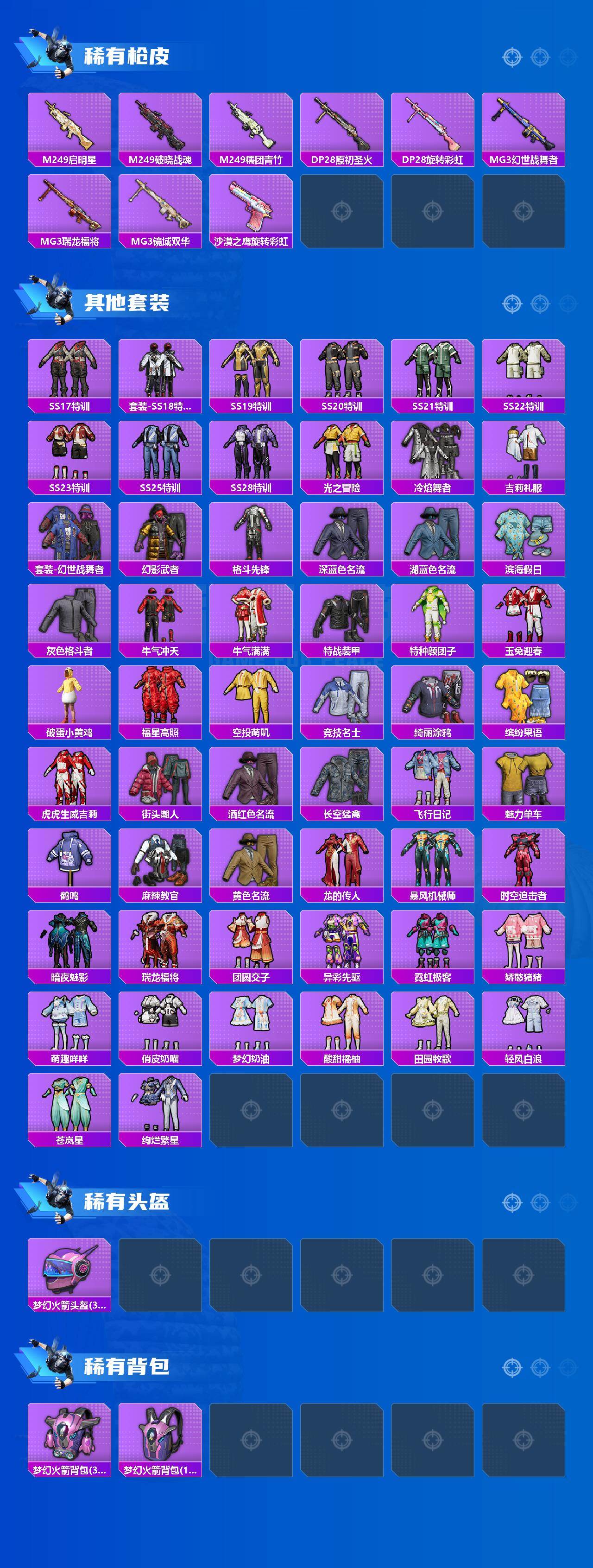 【粉色枪皮等级】:GROZA-巴啦啦小魔仙(二级),UMP45-启明星(四级),M249-彩虹甜喵(二级),MG3-洛神天依(五级)