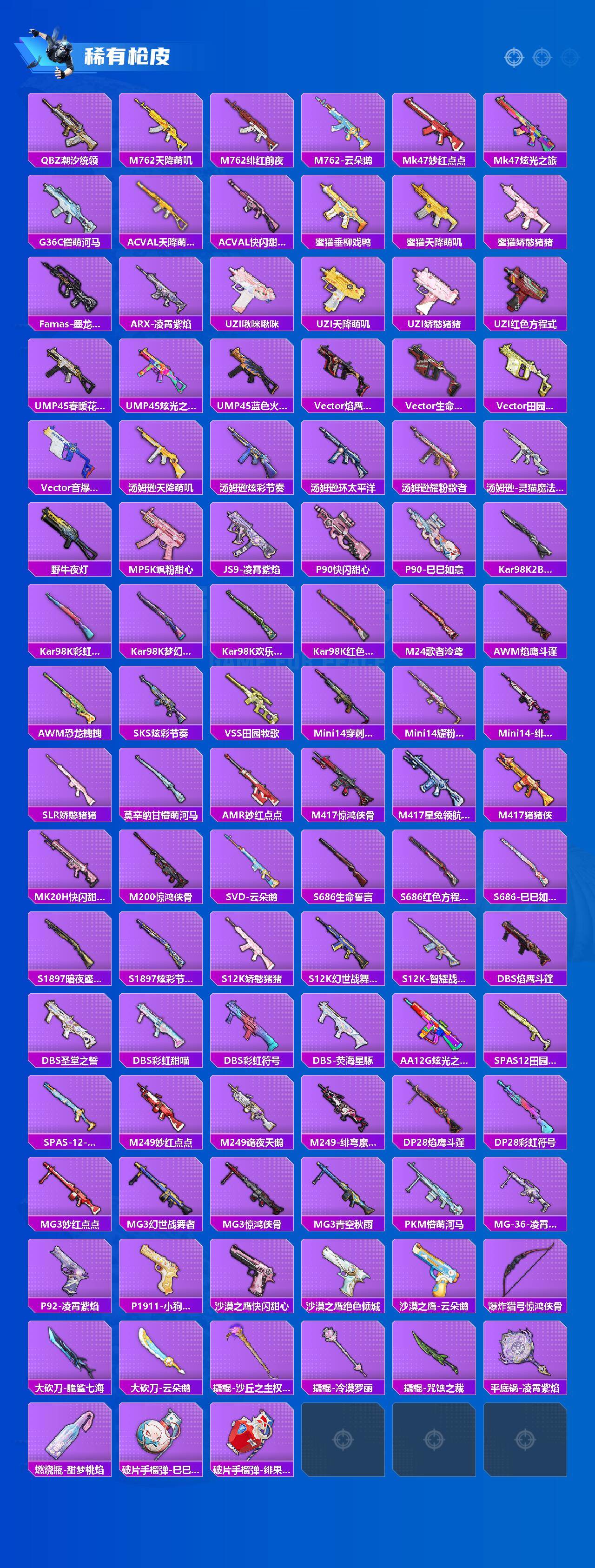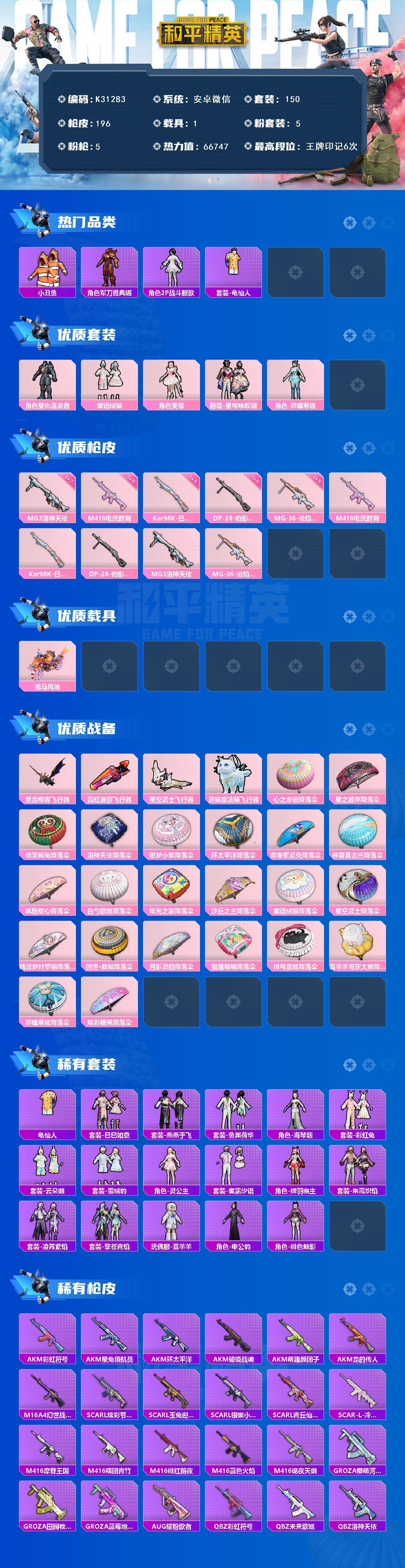 安卓 微信-5粉装-5特效枪-1载具-5粉色飞行器-66747热力值-6王牌印记-150套装-196枪皮