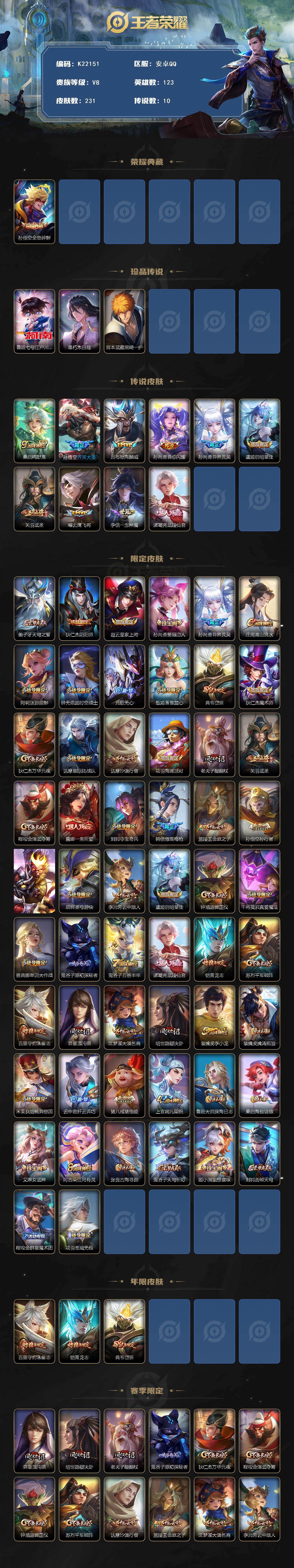 安卓Q-V8-最强王者段位-123英雄-231皮肤-1典藏皮肤-3珍品传说-1
