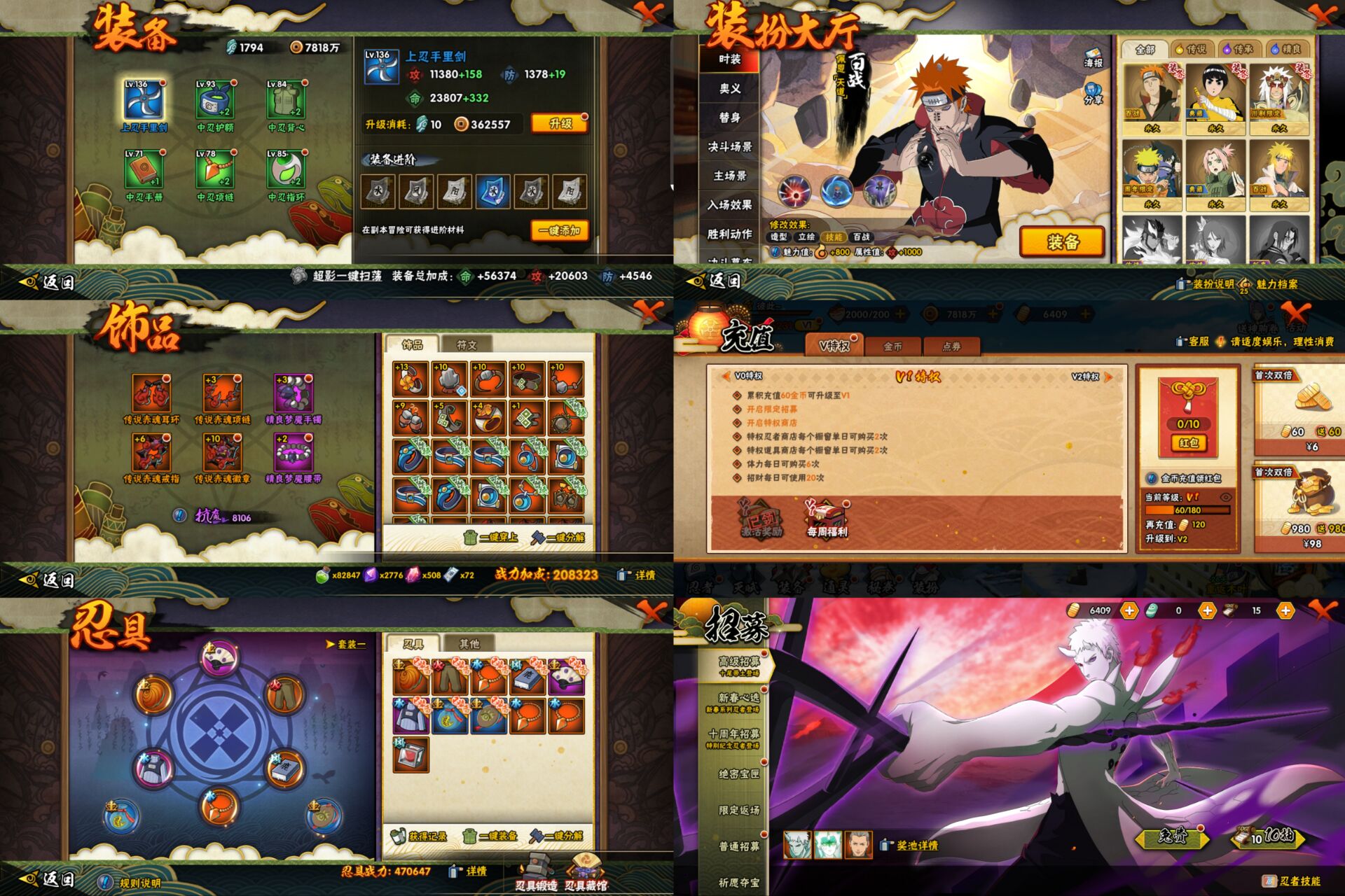 6S忍/10A忍/战力175W/V1/区服2222 【S忍者】漩涡鸣人「九喇嘛连结」,自来也「舞之豪杰」,宇智波鼬「须佐能乎」,佩恩「天道」,波风水门,大蛇丸,【A忍者】