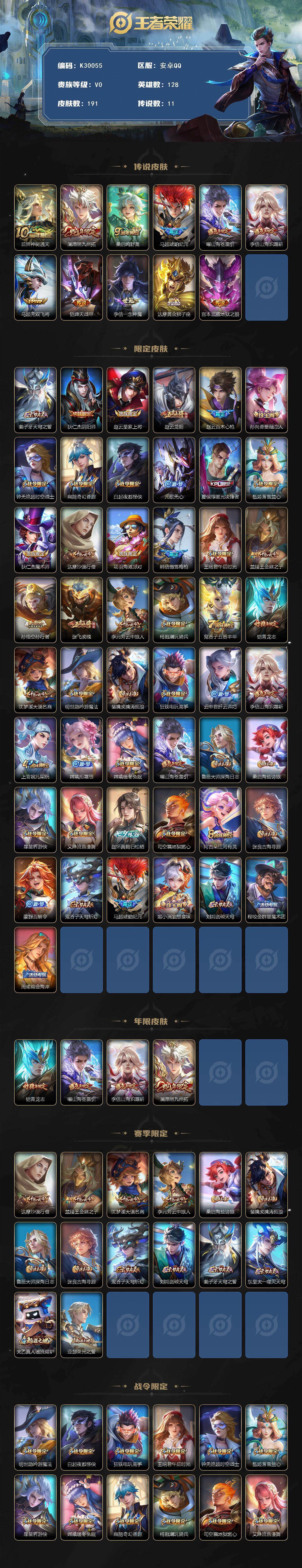 安卓Q-V0-永恒钻石IV段位-128英雄-191皮肤-11传说-67史诗