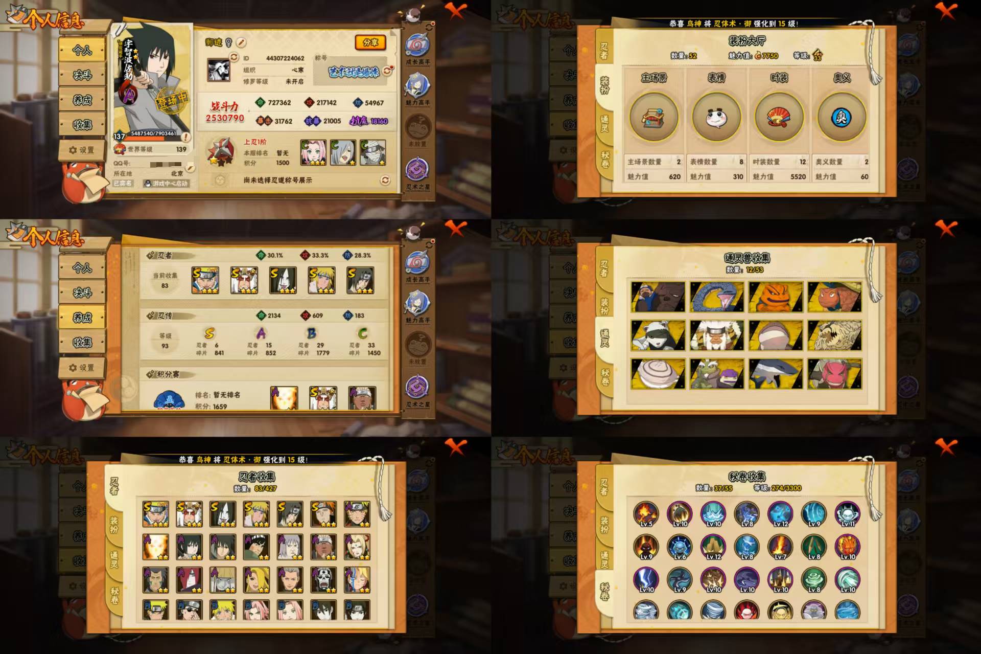 6S忍/15A忍/战力253W/区服3072 【S忍者】宇智波佐助「漩涡鸣人」,自来也「舞之豪杰」,宇智波鼬「须佐能乎」,佩恩「天道」,波风水门,大蛇丸,【A忍者】纲手