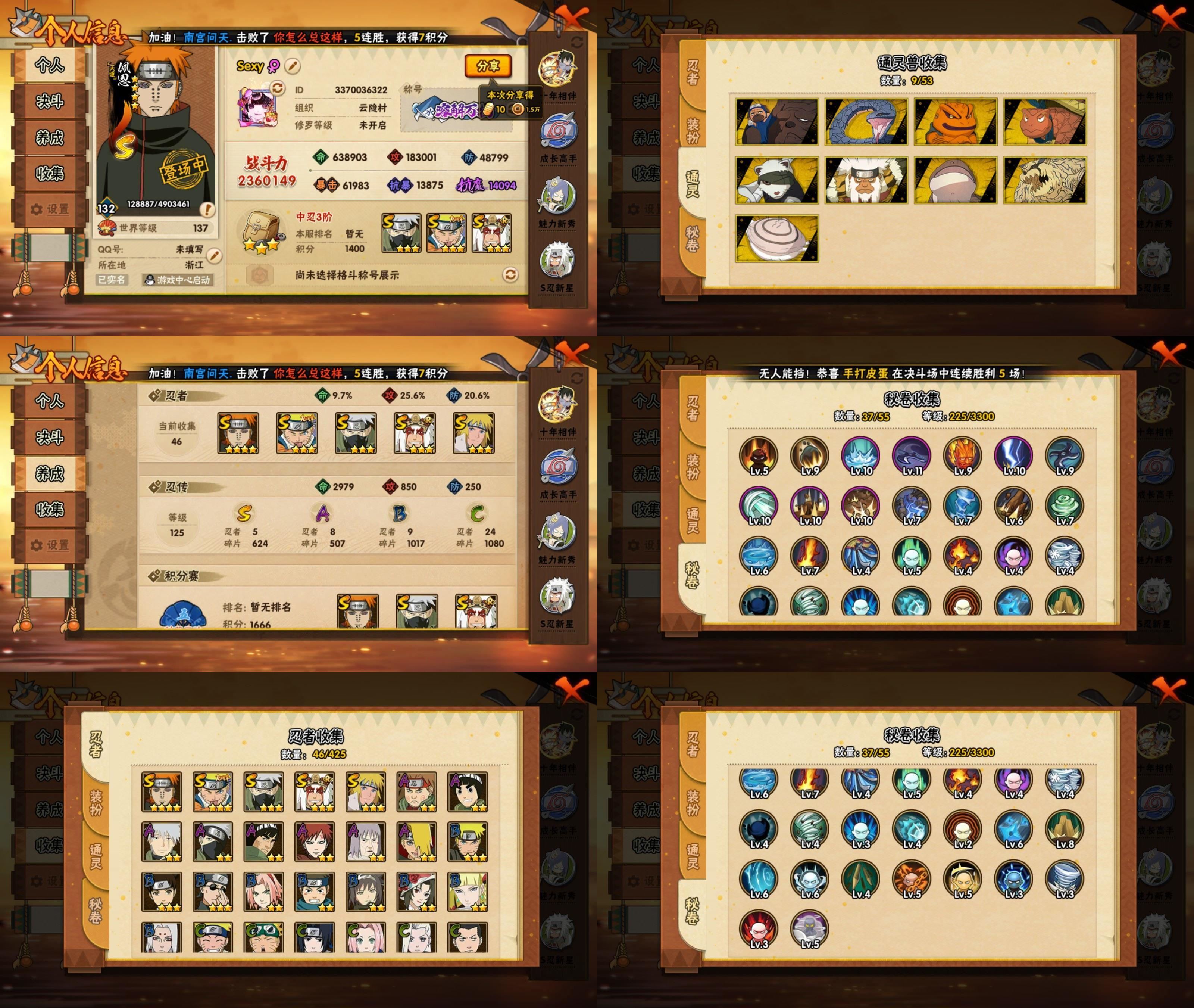 IOS/5S忍/8A忍/战力236W/V4/区服700 【S忍者】宇智波佐助「漩涡鸣人」,自来也「舞之豪杰」,旗木卡卡西「须佐能乎」,佩恩「天道」,波风水门, 【A忍者】