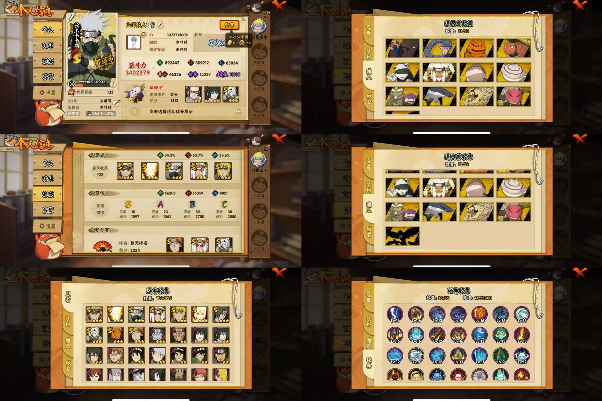 IOS/10S忍/23A忍/战力340W/V6/区服737【S忍者】宇智波佐助「漩涡鸣人」,宇智波斑「五影会谈」 ,漩涡鸣人「九喇嘛连结」,自来也「舞之豪杰」,旗木卡卡西